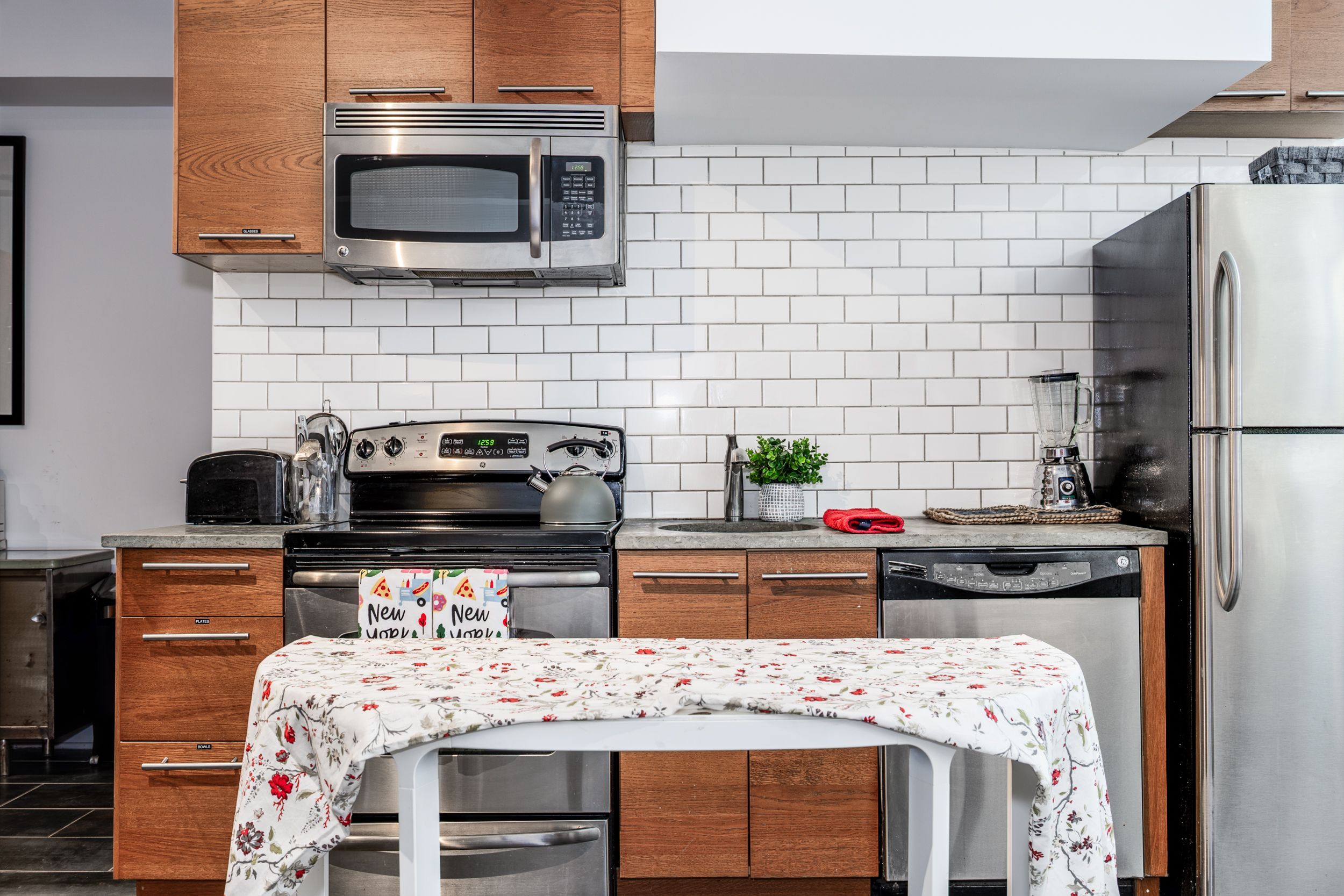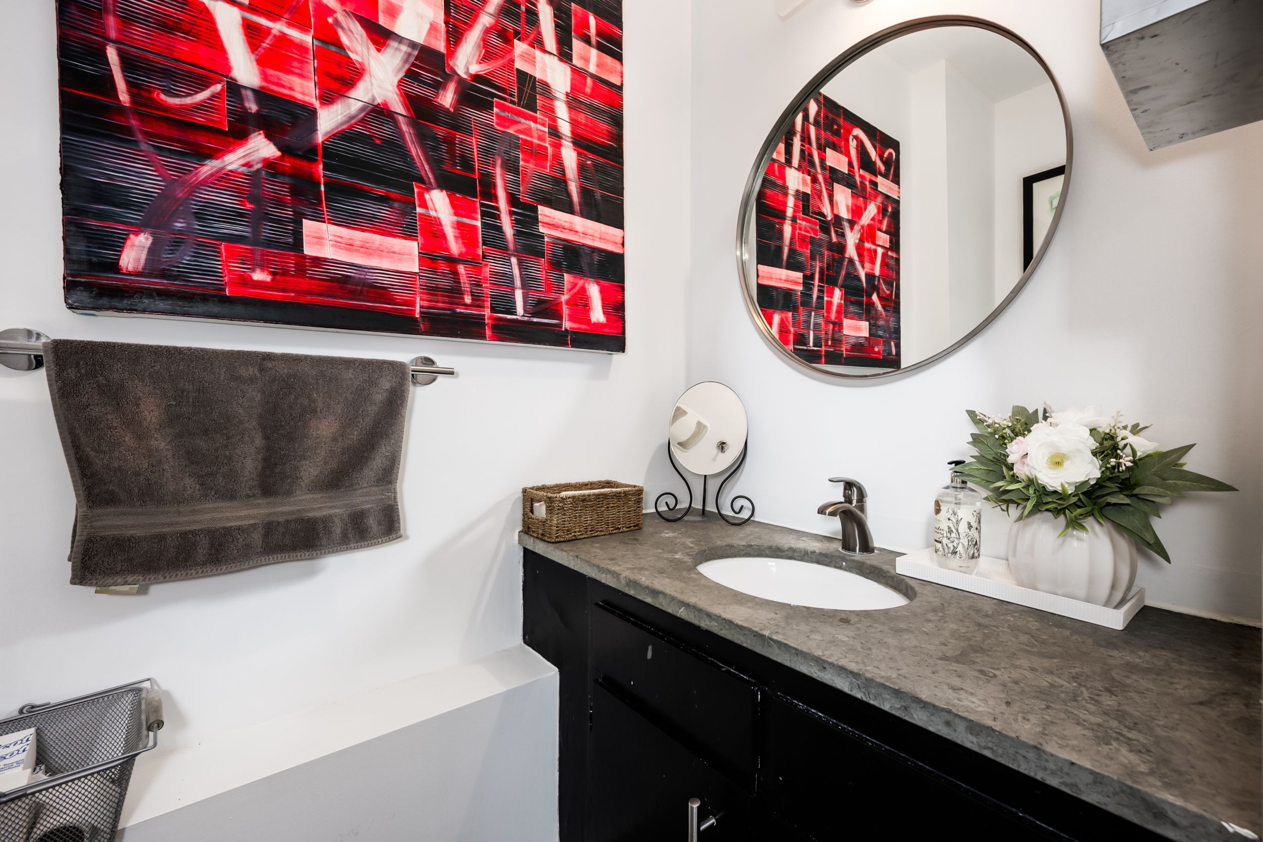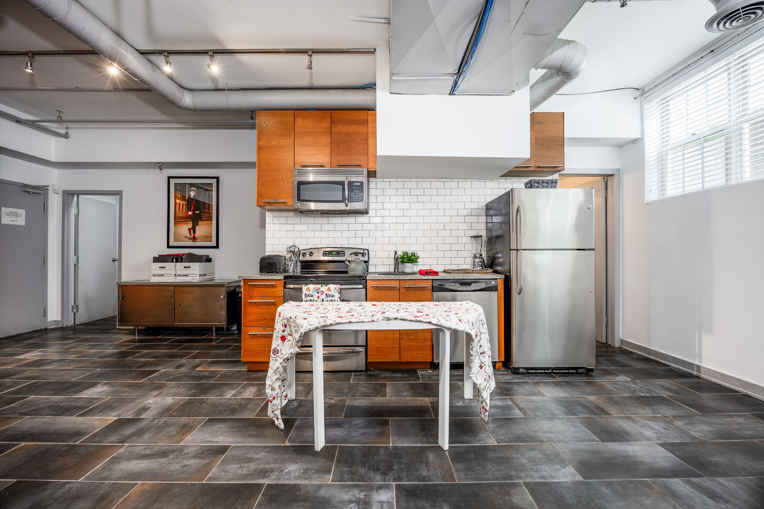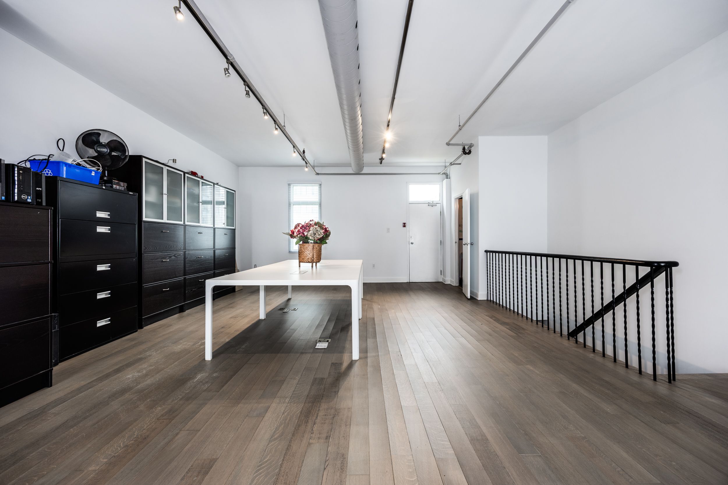 • Open-concept layout with hardwood floors and high ceilings providing ample space.