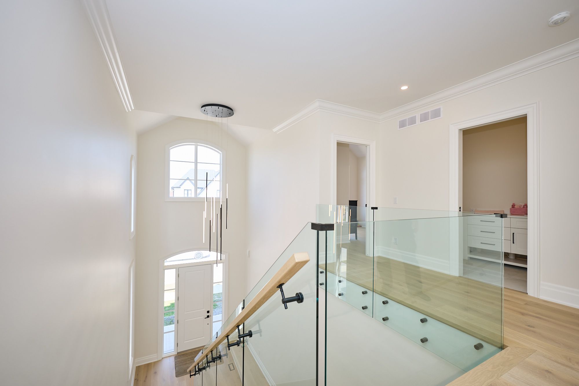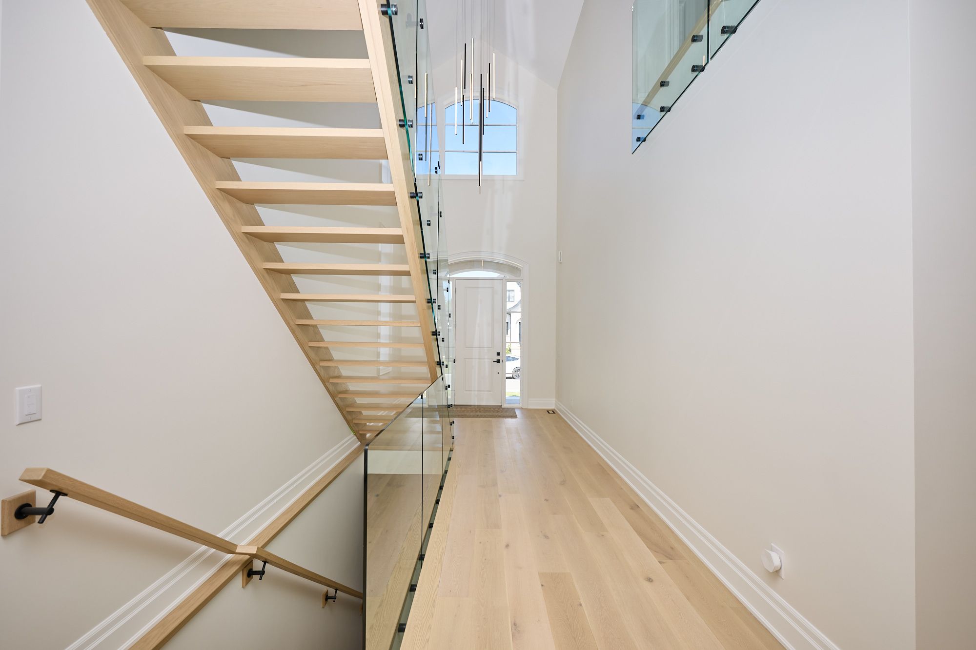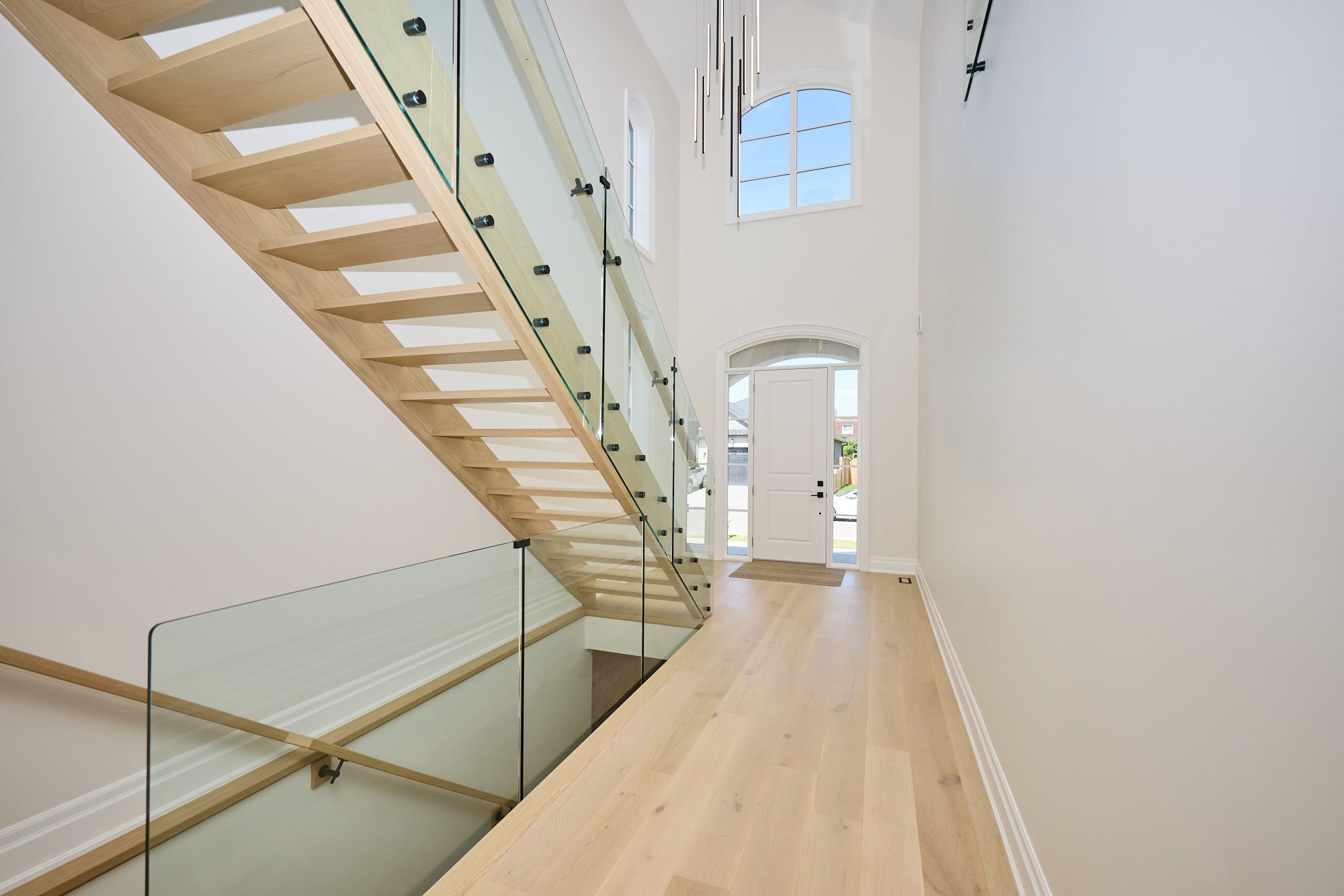 • Stunning glass staircase and vaulted ceilings create an open atmosphere.