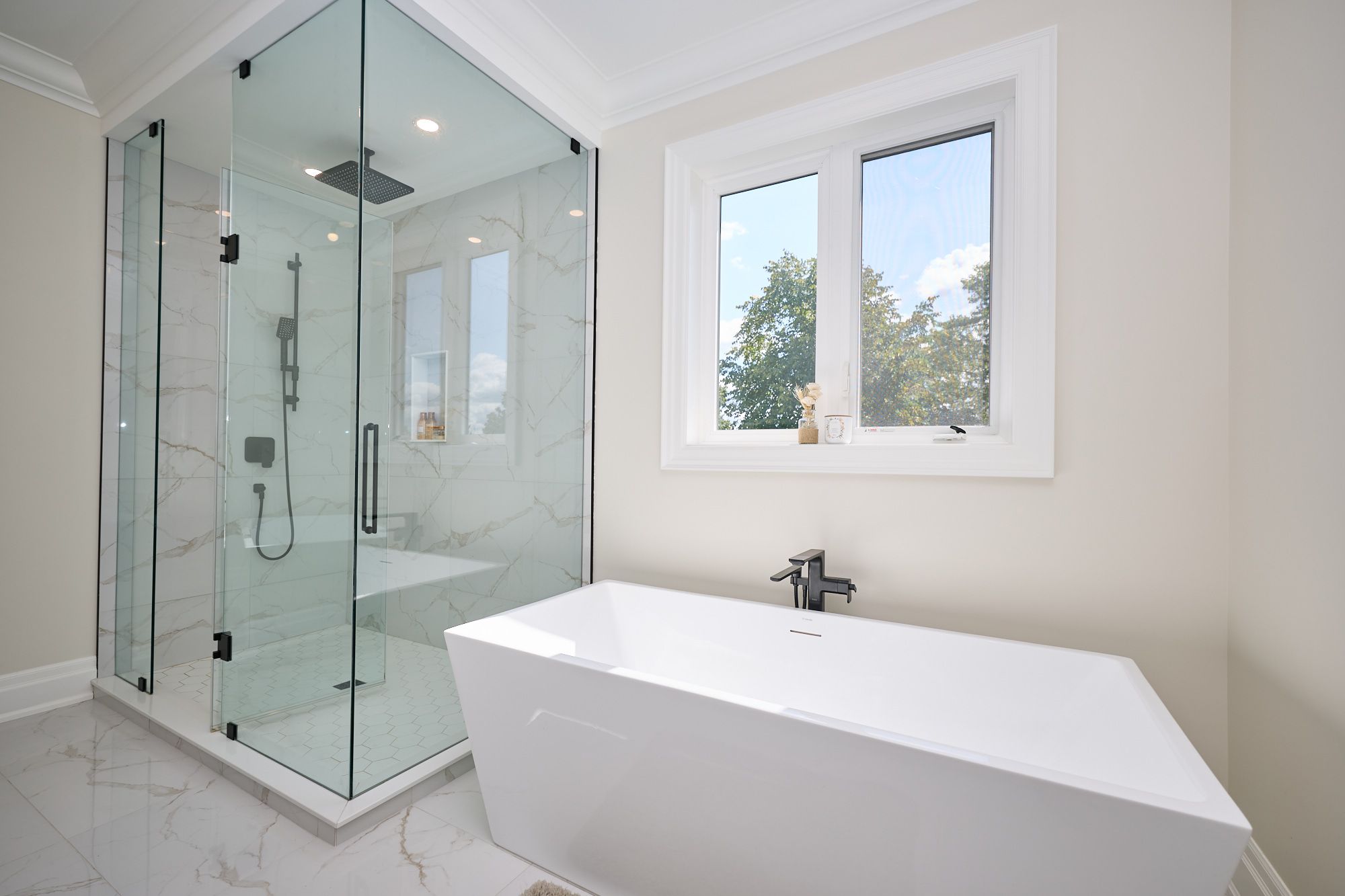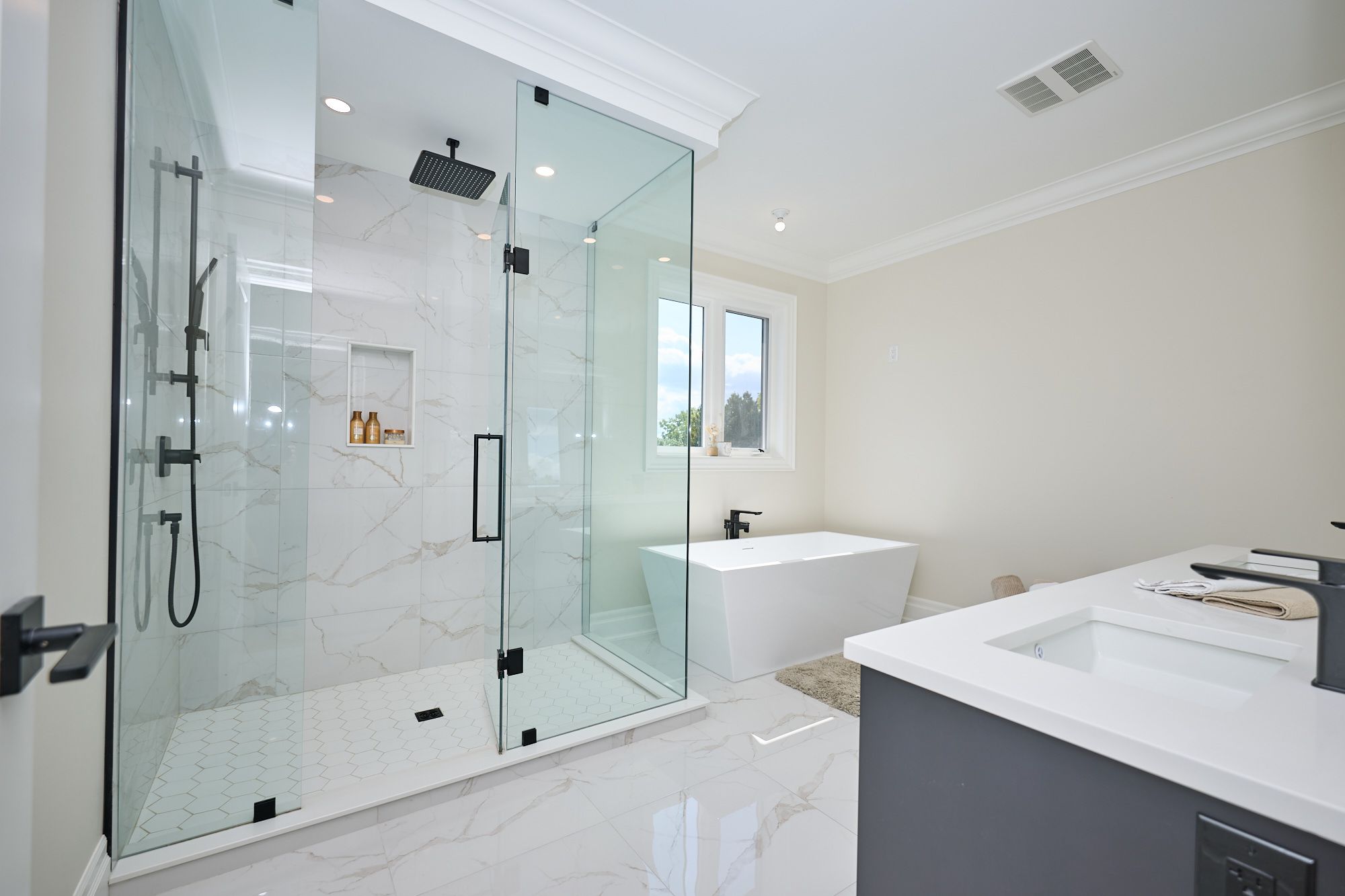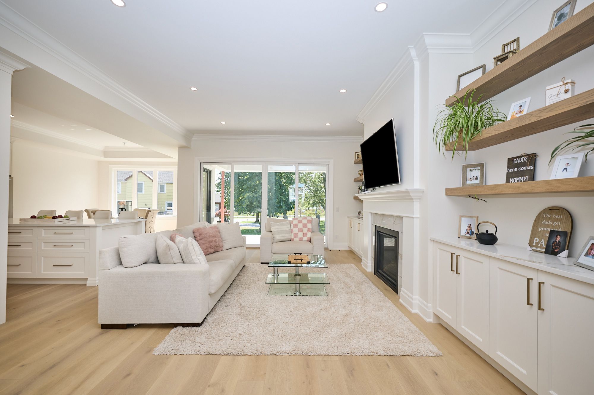 • Stunning glass staircase and vaulted ceilings create an open atmosphere.