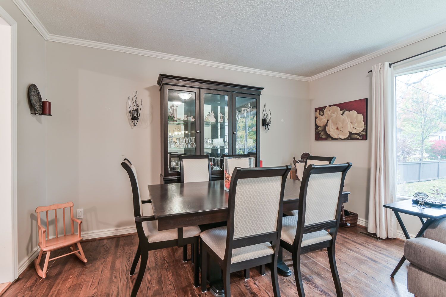 • Bright living and dining room with hardwood floors and large windows.