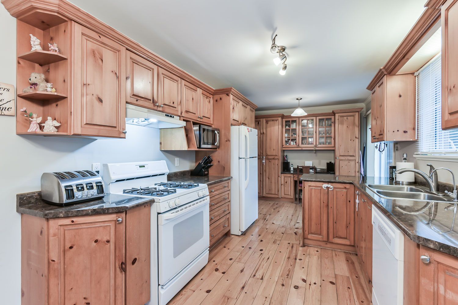 • Functional eat-in kitchen with two walkouts to a large deck.
