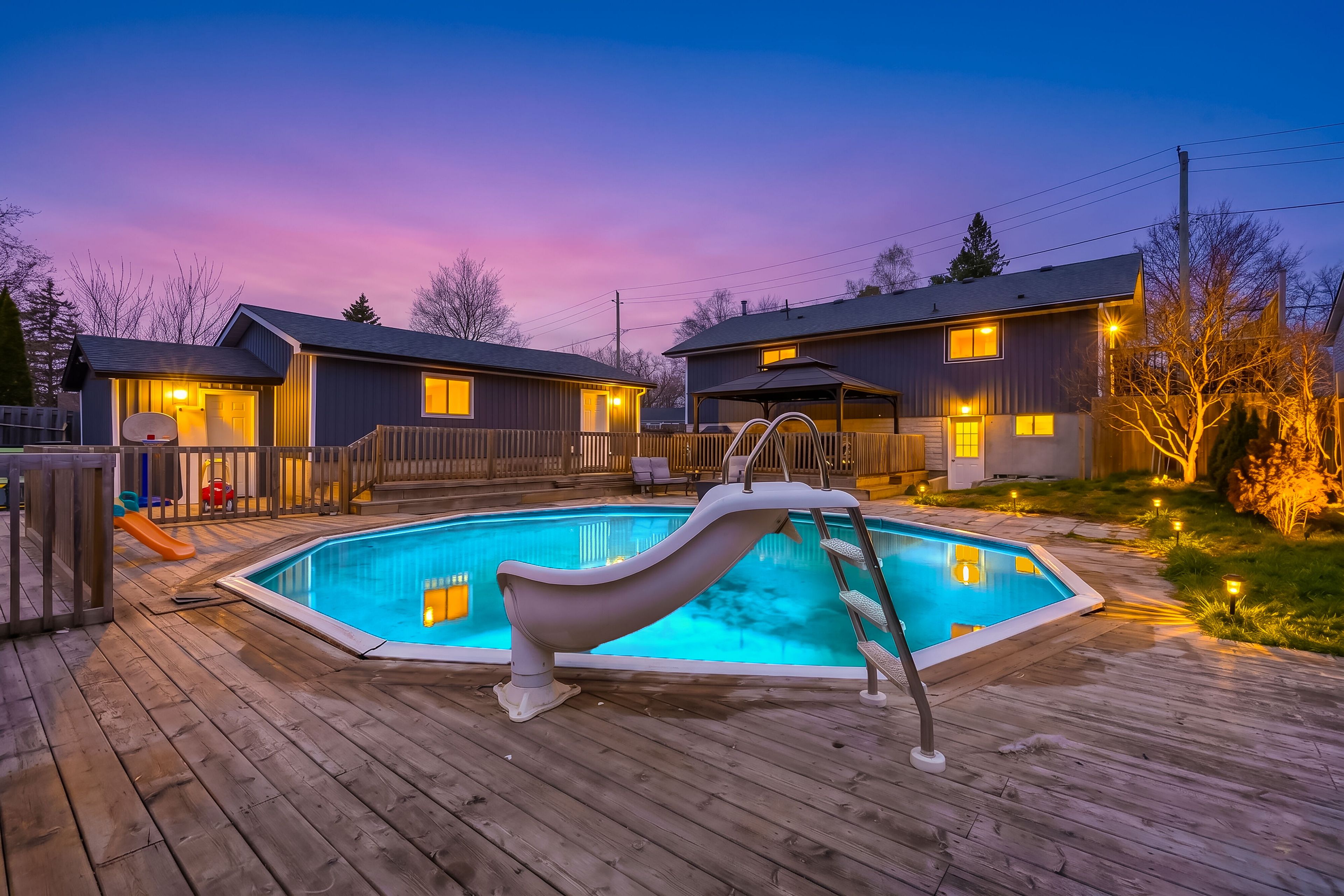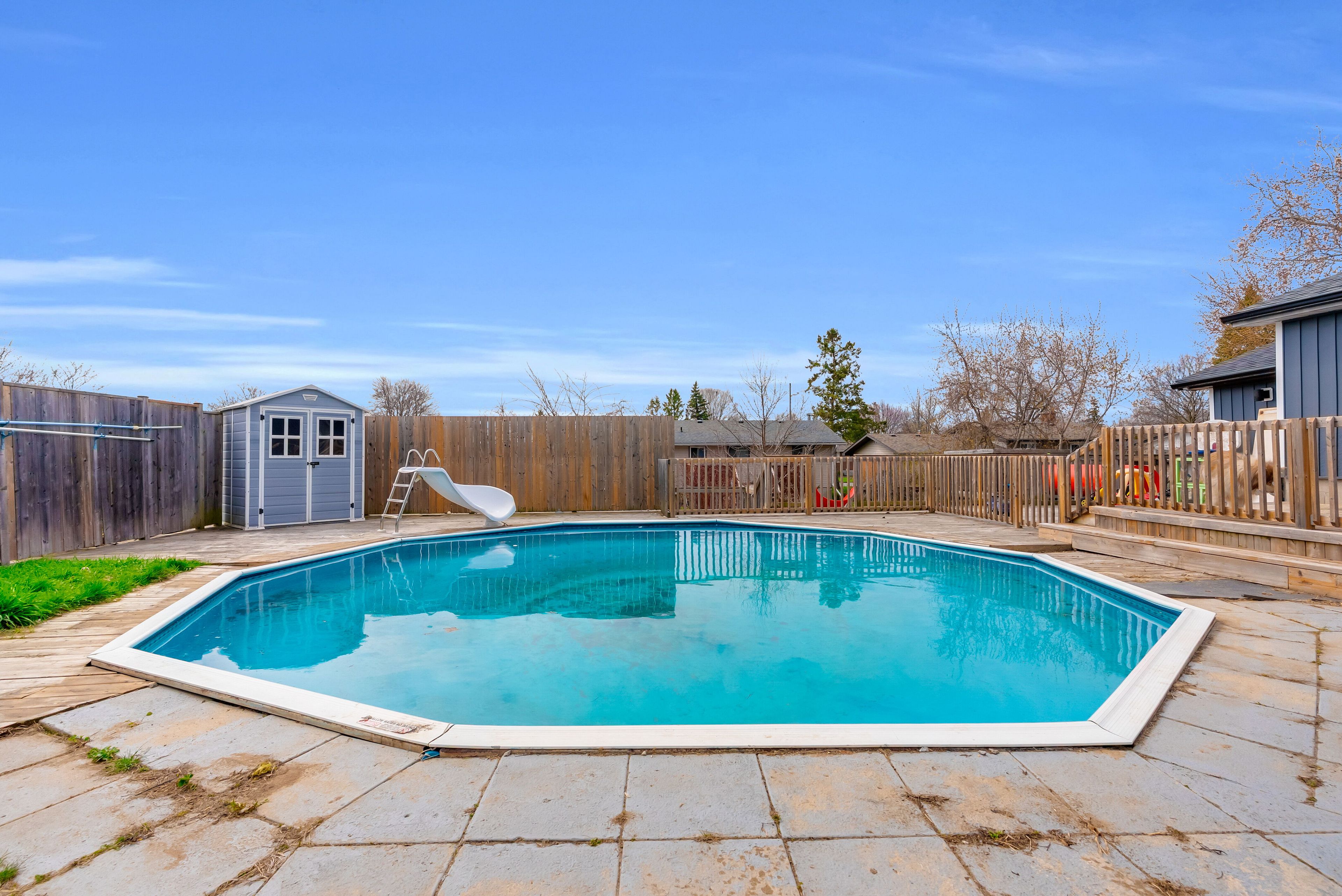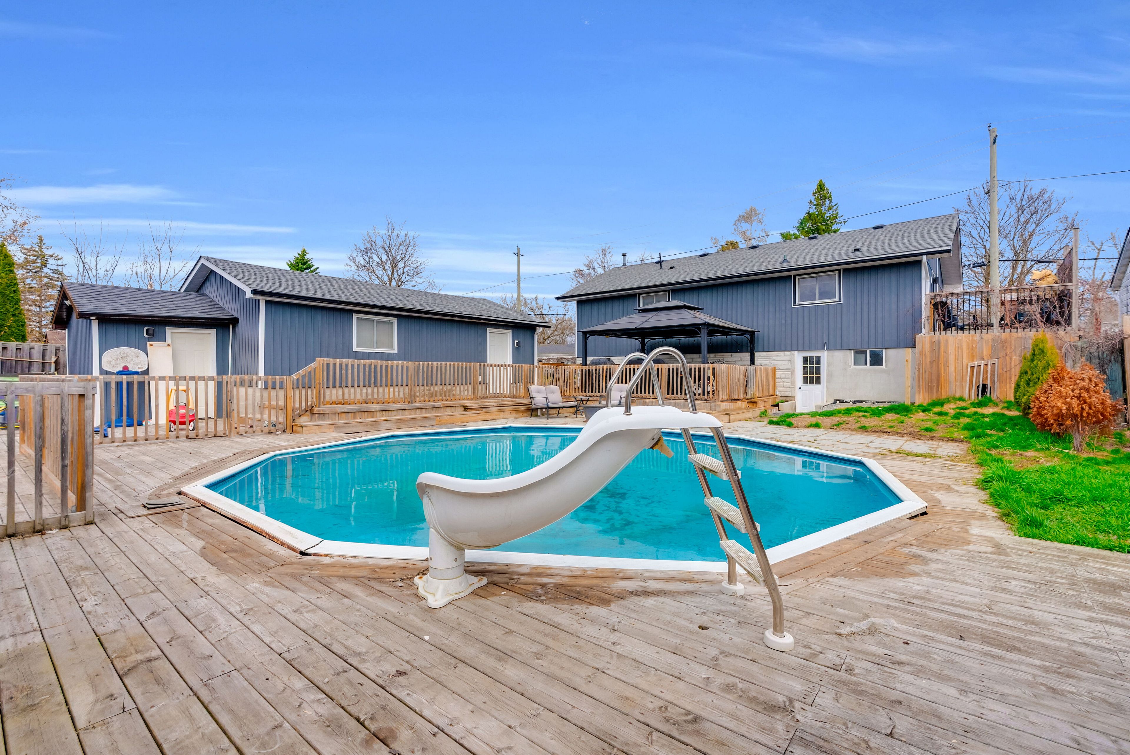 Spacious bungalow offering approximately 1,778 sqft of total finished living space, set on an extra-deep, fully fenced lot designed for outdoor enjoyment. The backyard is perfect for entertaining, featuring multiple decks, an above-ground pool, and a children's play structure-plenty of room for family and friends. The main level showcases an open-concept layout with a large kitchen complete with stainless steel appliances, gas double oven range, room for a centre island and pot lights throughout. A garden door leads to a side deck-ideal for morning coffee. The welcoming foyer features a custom built-in bench with storage and an upgraded front door. The primary bedroom offers a spacious walk-in closet, while the main 4-piece bathroom includes a granite vanity, oversized soaker tub, separate shower, and custom storage. The walk-out basement adds valuable living space with three generously sized bedrooms, a 2-piece bath with room to add a shower or tub, and additional storage. Additional features include an extra-deep double car garage-perfect for a workshop or "man cave" and a driveway accommodating up to six vehicles (new asphalt to be completed in may). Recent upgrades include flooring, stairs, front and patio doors, appliances, main floor bedroom windows, pool sand filter, furnace, service lines, and more. Ideally located just minutes to the base, hwy 401, the trent river, and the bay of quinte, with prince edward county, sandbanks, and wellington all within a short drive. A fantastic opportunity in an area known for its excellent fishing and outdoor lifestyle. The entire foundation has been waterproofed in 2023.