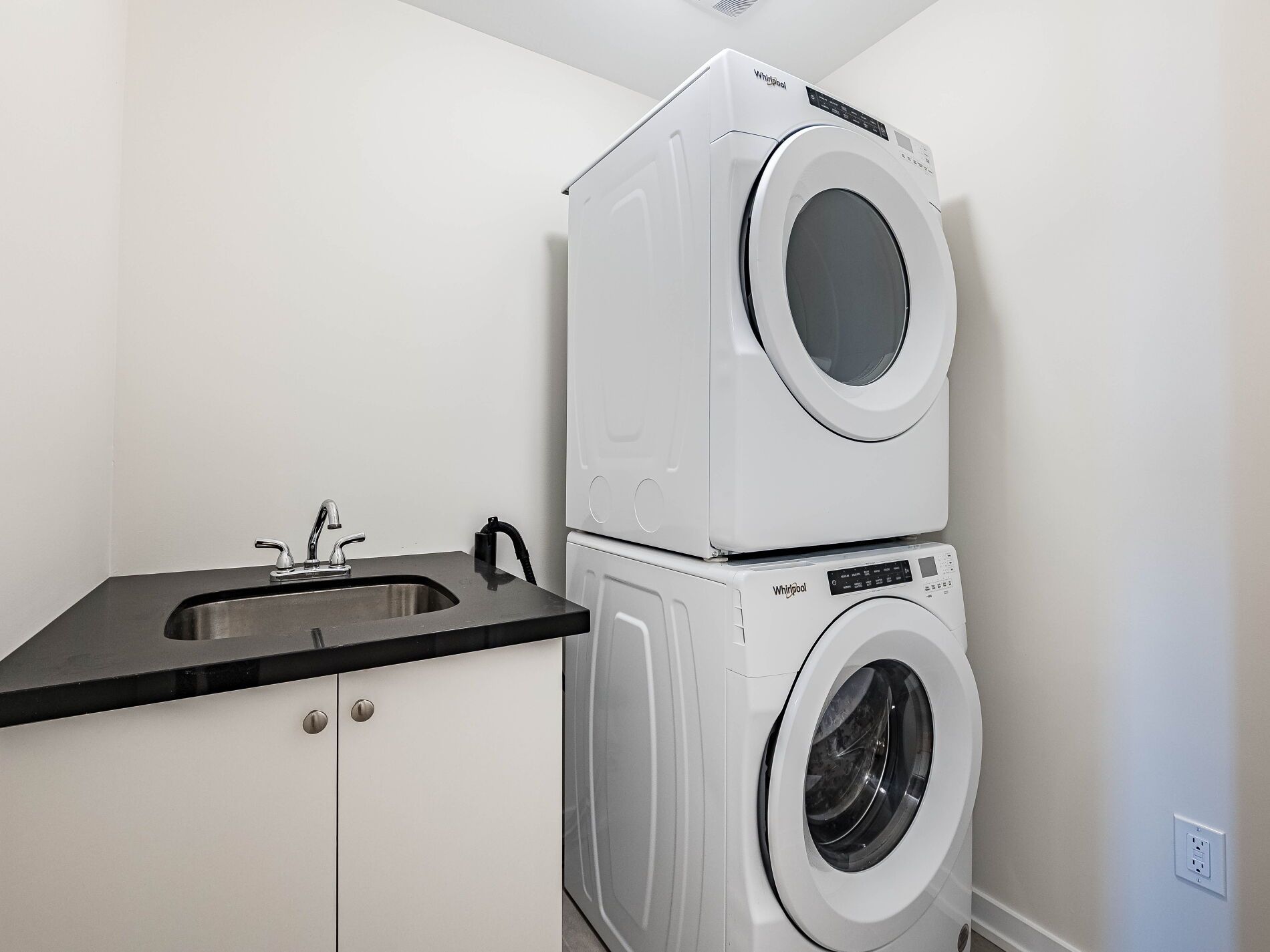 • Kitchen features Quartz countertops and stainless steel appliances.