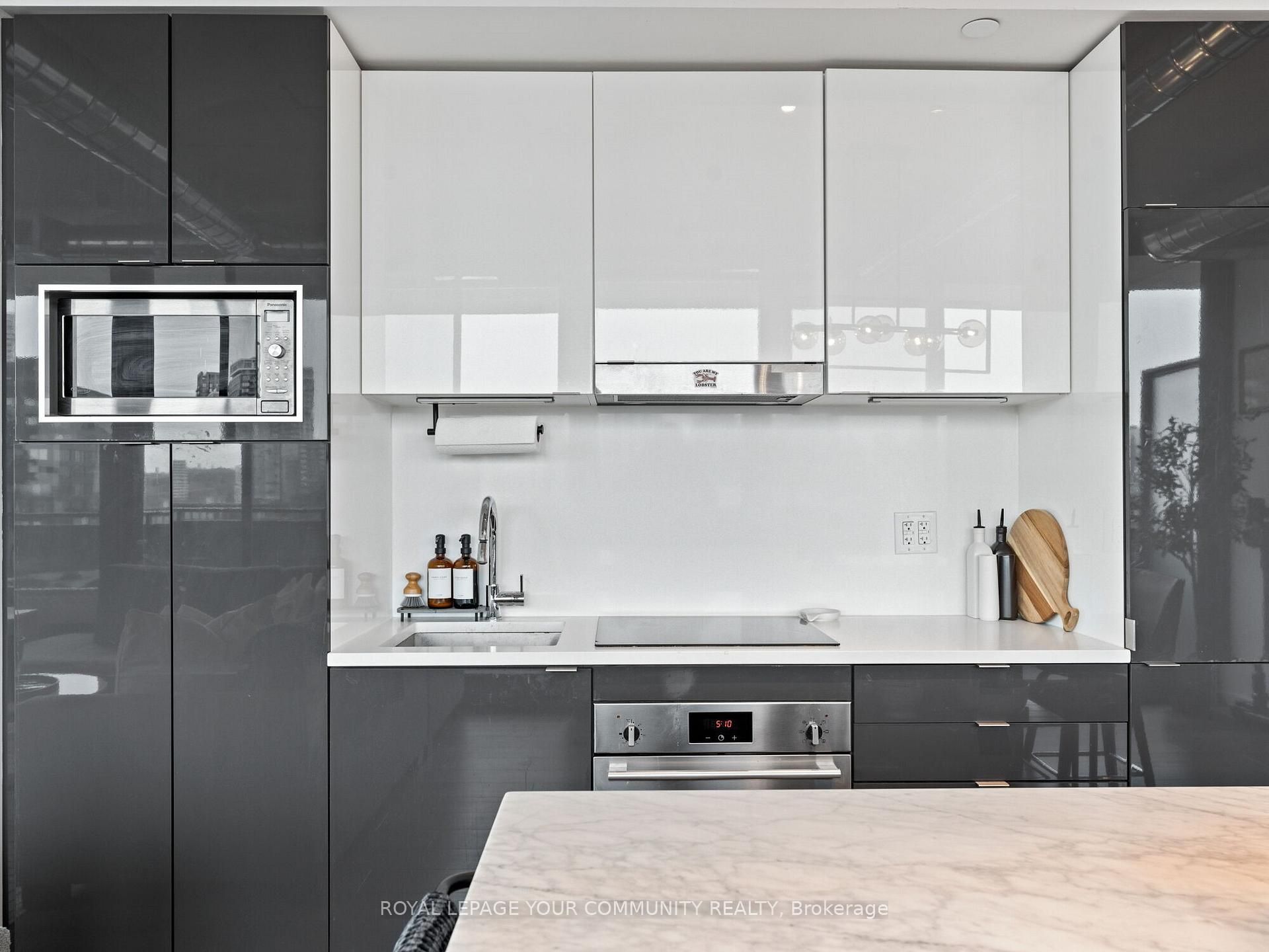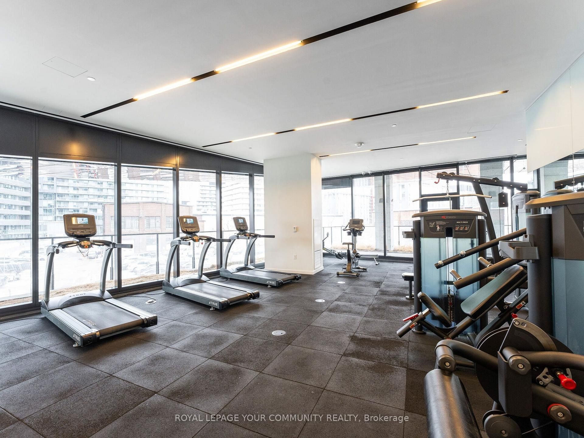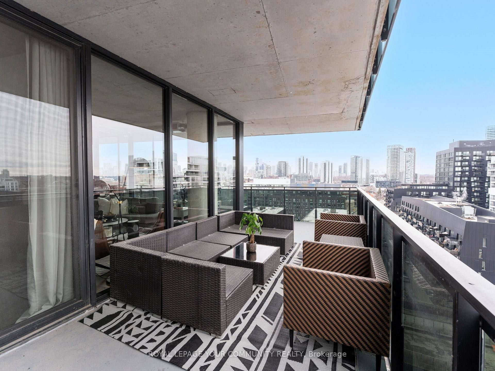 Welcome to harris square - a modern boutique loft-style corner unit boasting 608 sqft of contemporary living space plus an expansive 478 sqft terrace with breathtaking, unobstructed views of downtown. Conveniently located just steps from leslieville, the distillery district, st. Lawrence market, and the financial district. This modern loft features soaring 9-ft exposed concrete ceilings, stunning hardwood floors throughout, a sleek kitchen, and a spa-inspired bathroom. The loft is surrounded by floor to ceiling windows so you have a stunning view from every corner of the apartment. The most unique feature of this condo is the luxurious wraparound balcony with ne city views and a gas line for a barbecue perfect for hosting. Building amenities include an executive concierge, a fully-equipped gym, a serene yoga space, guest suite, party room, and a rooftop terrace with panoramic views. Additional perks include a kids' playroom, a library, and more. The unit comes complete with stainless steel appliances (fridge, stove, built-in dishwasher, and all-in-one washer/dryer), as well as a dedicated parking spot and locker.