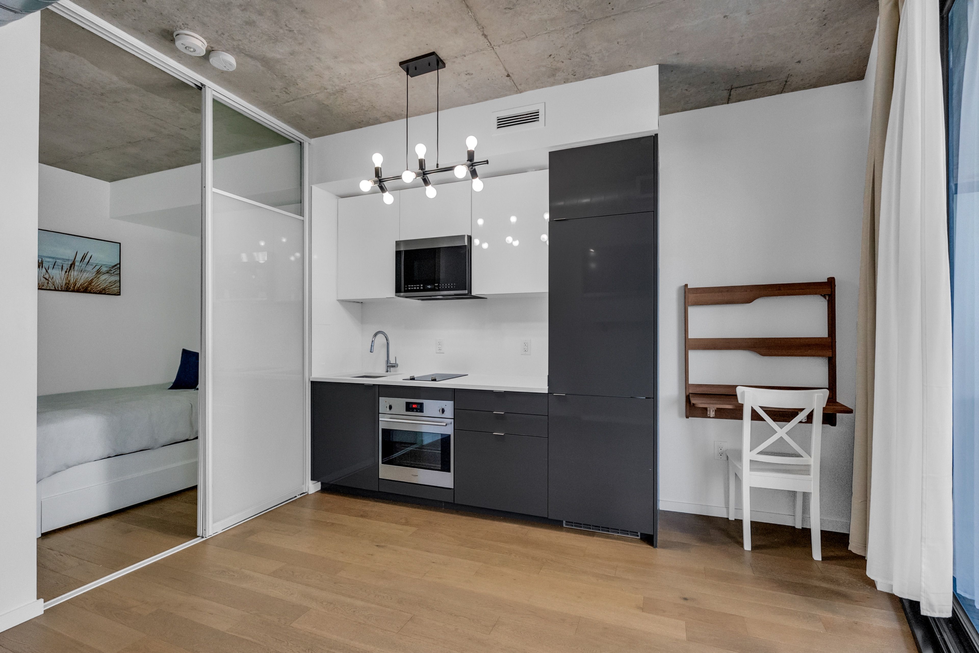 Welcome to this 1 bedroom stylish space that offers an east-facing exposure and fills the space with warm morning light through floor-to-ceiling windows. The open-concept layout, with expose concrete ceiling, large terrace and contemporary finishes make smart use of every inch-perfect for first-time buyers, young professionals, or savvy investors alike. Enjoy the convenience of two secure bike racks, ideal for urban living. Nestled in a modern, less-than-5-year-old building, residents have access to exceptional amenities including a fully equipped gym, children's playroom, outdoor bbq area, and guest suites for visiting family and friends. Steps from corktown commons, riverside, the dvp, and the distillery district, this location offers effortless access to transit, parks, and toronto's downtown core.
