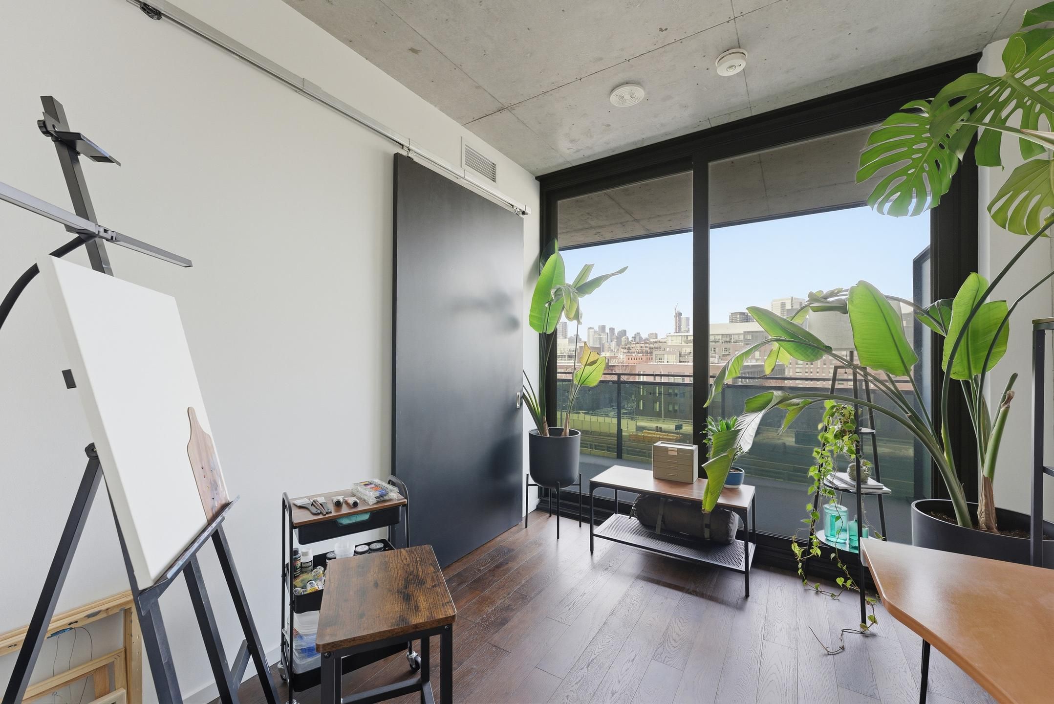 21 lawren harris square, a boutique building in the heart of corktown! Highly sought-after 1 bed + den offers one of the best floor plans in the building. 582 sqft of efficient interior space plus premium 149 sqft wide balcony that truly extends the living area outdoors. The den is spacious features a full door, making it an ideal 2nd bedroom or private office. Soaring 9'10" exposed concrete ceilings, floor-to-ceiling windows, & engineered hardwood flooring create a bright, modern space with an unbeatable vibe. The upgraded contemporary kitchen features quartz counters with a waterfall backsplash, built-in appliances, & flows seamlessly into the open living area, perfect for everyday living & entertaining. Low maintenance fees. Amenities include concierge service, gym, party & game rooms, guest suite, children's play area & an incredible rooftop terrace with bbqs. Steps to king & queen streetcars, corktown common, distillery district, don river trails, & easy dvp access. A rare opportunity that delivers lifestyle, design, & value!