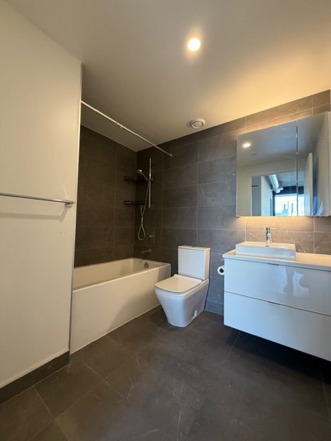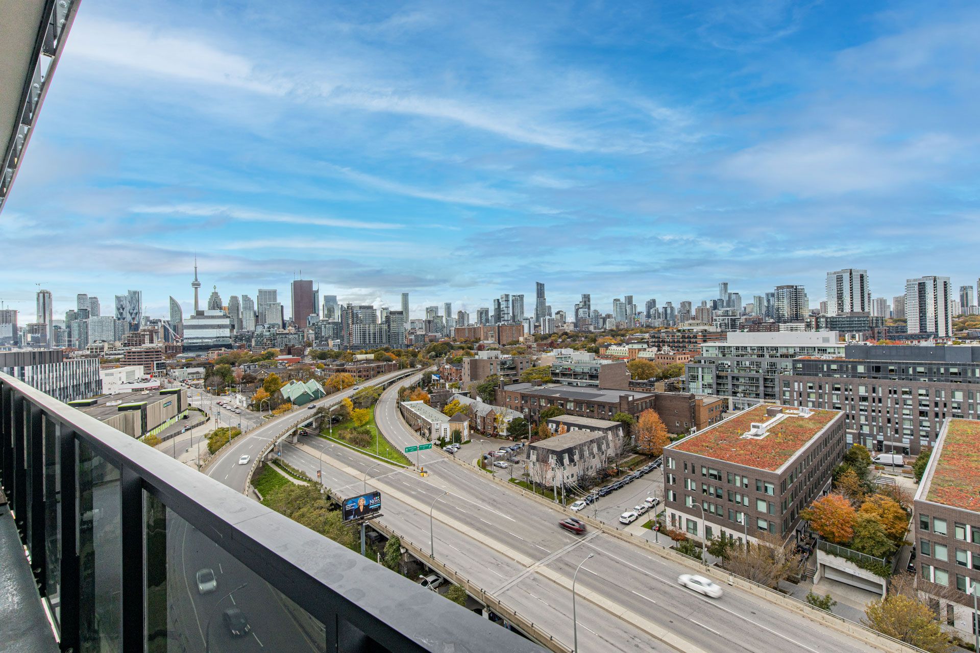 A stylish 1+den suite feels just like a 2-bedroom! Located at he vibrant river city community where queen street meets king street! Soaring 9'8" exposed concrete ceilings, a signature concrete accent wall, and floor-to-ceiling, wall-to-wall windows opening to a full-length balcony with two walkouts and stunning city views. Enjoy engineered hardwood floors throughout, a modern kitchen, a center island, and professionally installed window solar blinds. Exceptional building amenities include a fully equipped fitness centre, rooftop terrace and party room, guest suites, and more. Steps to king & queen streetcars, corktown common, distillery district, and don river trails, with easy access to the dvp. One storage locker included. Freshly painted and professionally cleaned for immediate occupancy. A perfect home for professionals or couples seeking stylish, quiet city-core living.