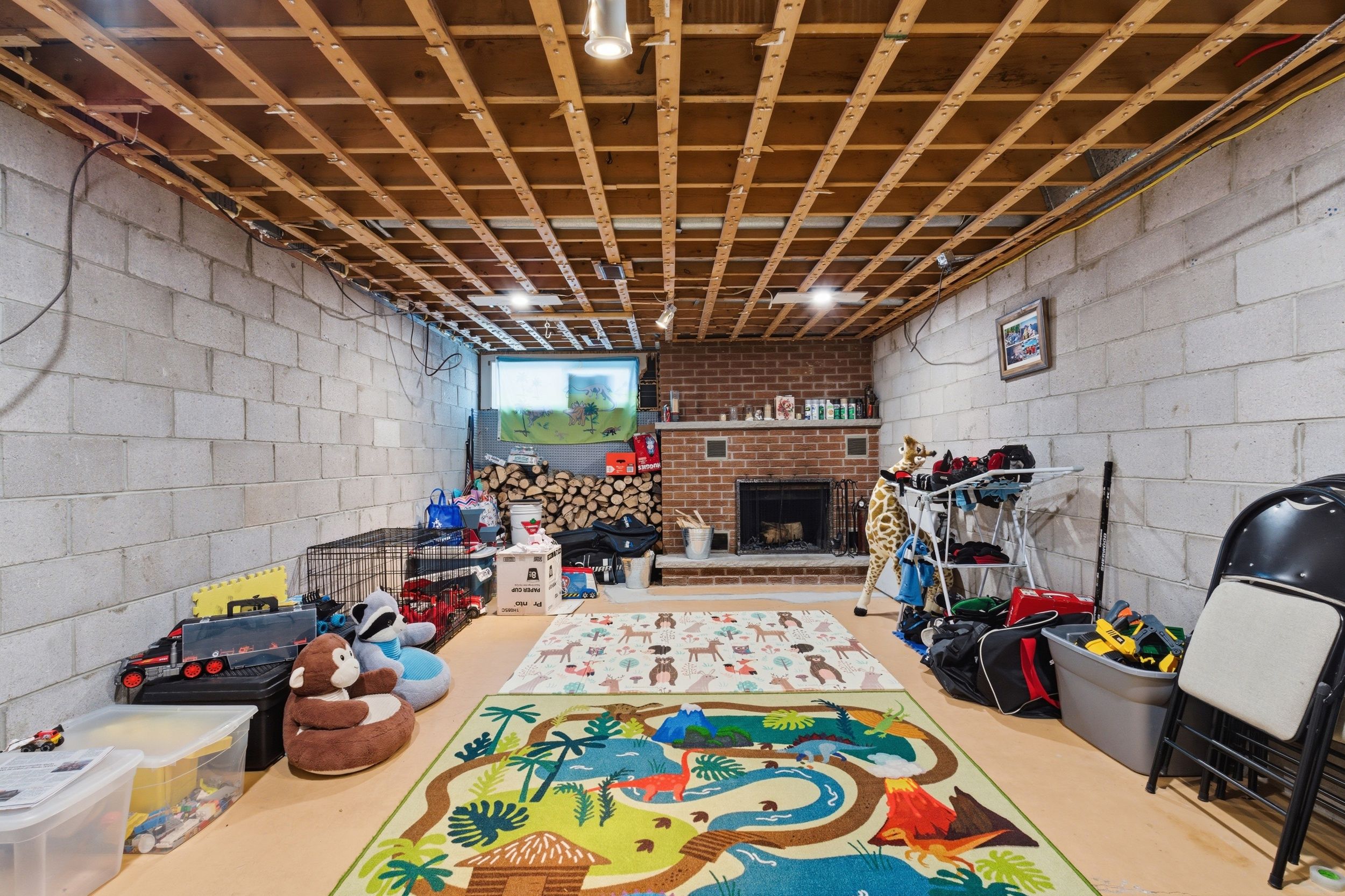 • Versatile lower level with a cozy fireplace for leisure activities.