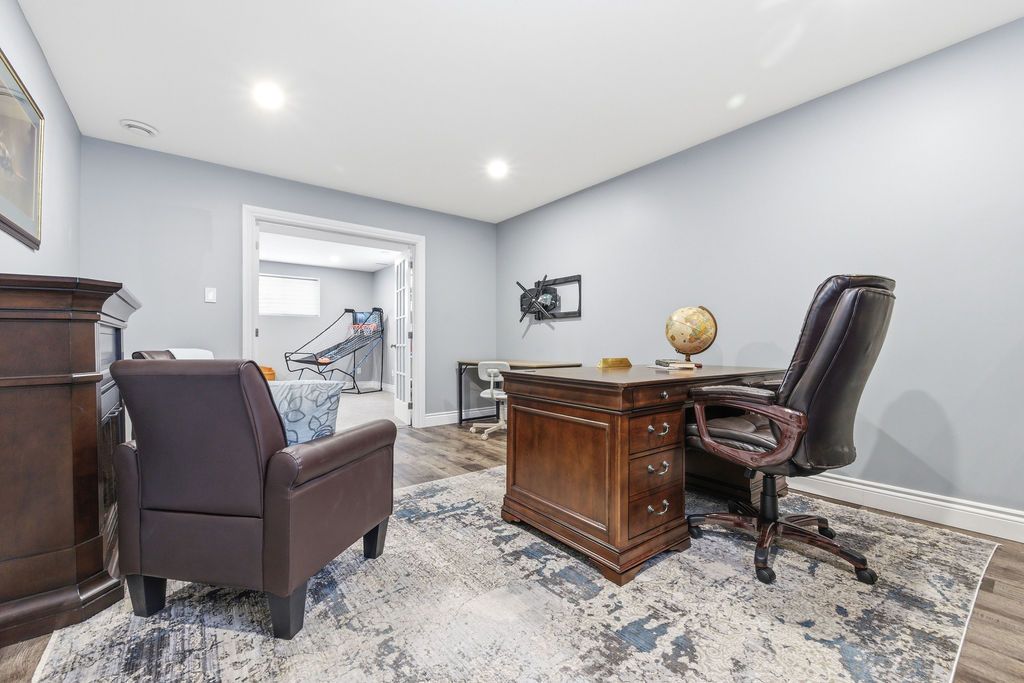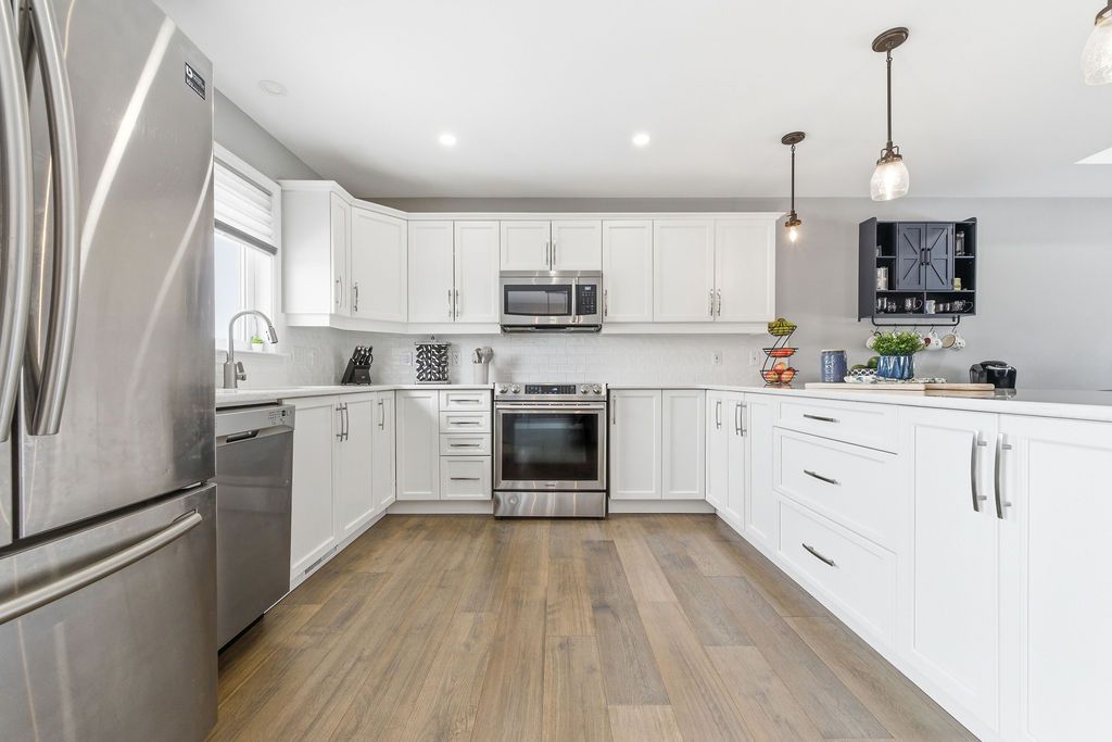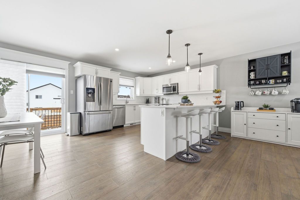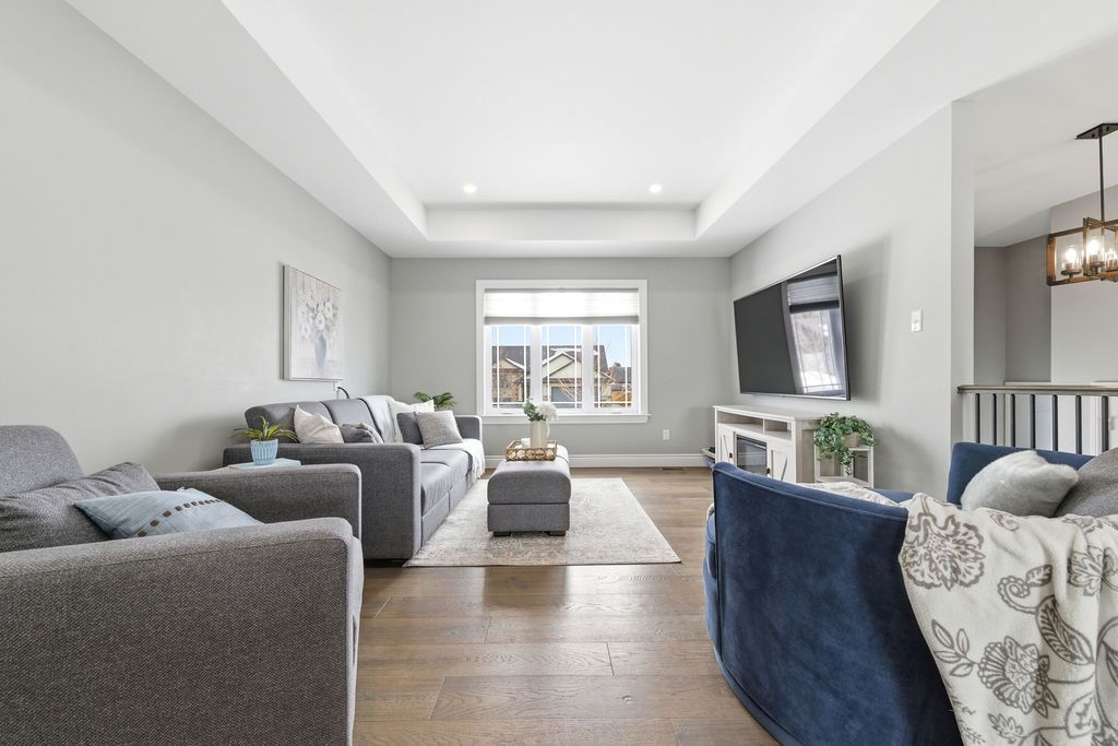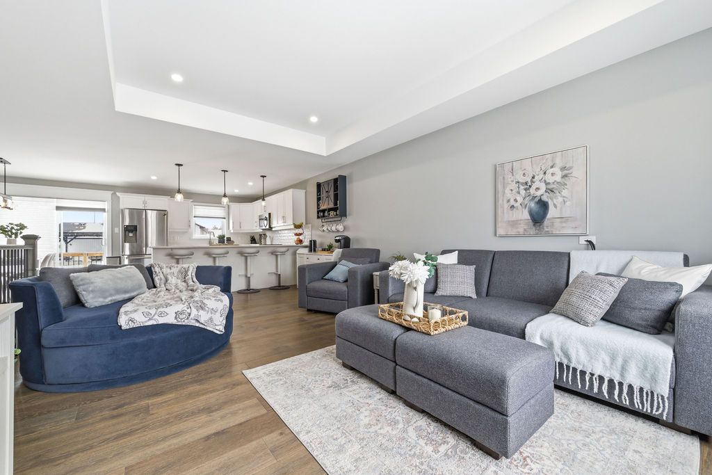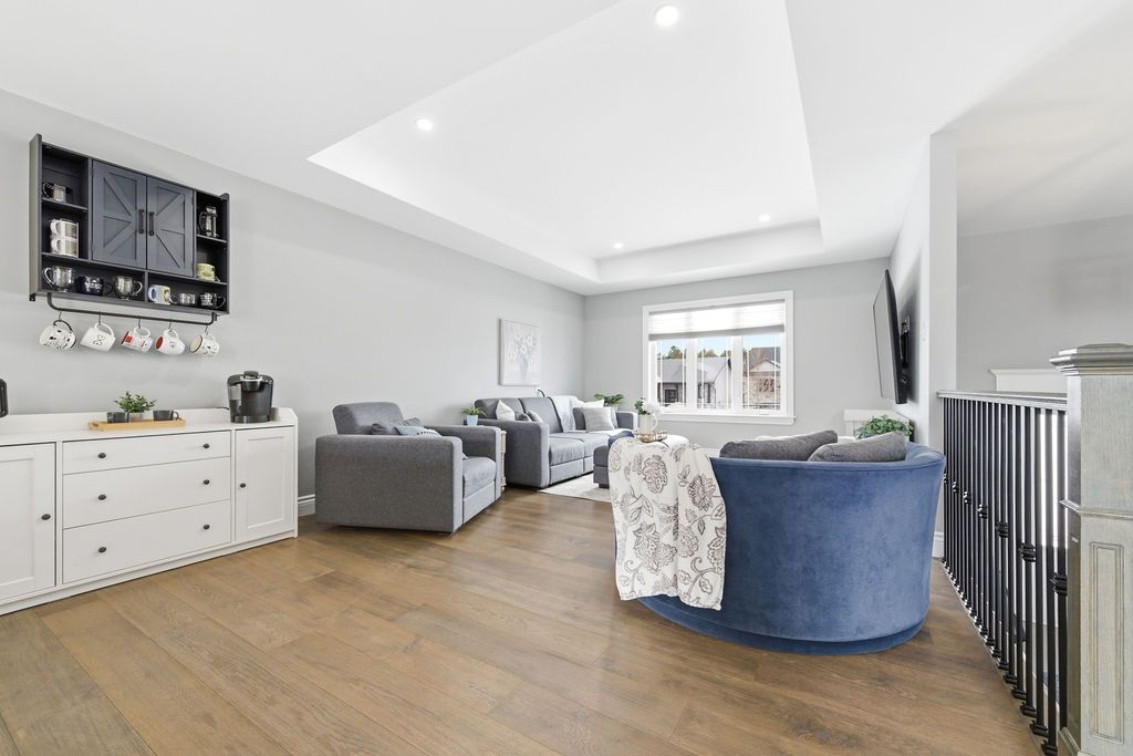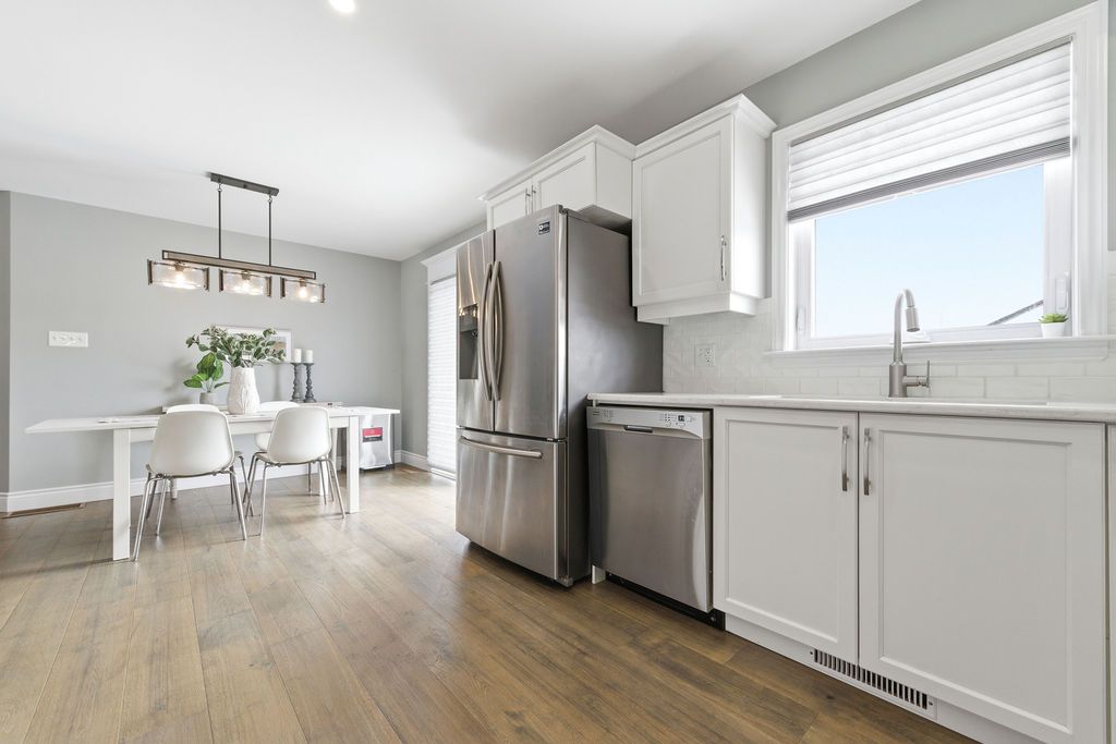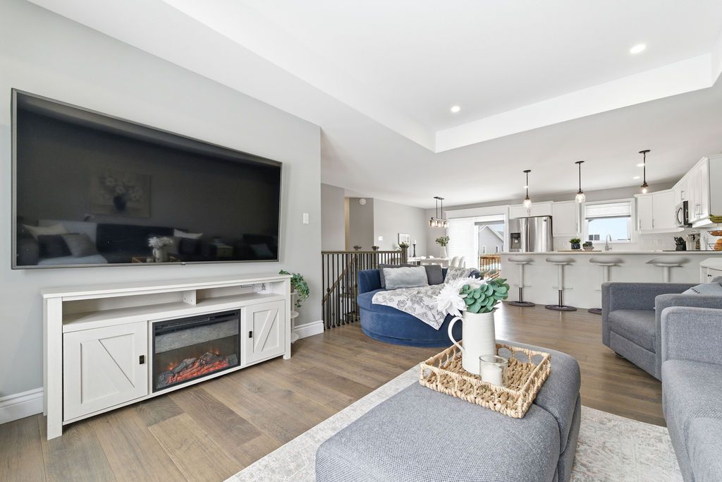 This exceptional home is situated in the highly desirable laurentian highlands subdivision. The main level features a bright, open-concept living and dining space, complete with ample preparation area, elegant quartz countertops, under-cabinet lighting, and a stylish backsplash. Patio doors off the dining area lead to a spacious two-tier deck, perfect for entertaining, overlooking a fully fenced backyard. The primary bedroom boasts a beautifully designed custom ensuite, featuring a luxurious rainfall shower with body jets and built-in niches. The fully finished lower level is highlighted by a stunning gas fireplace with a stone surround and custom built-in shelving. French doors lead to the separate office space offering excellent flexibility and can easily serve as a fifth bedroom, home gym, or workspace. This level also includes an additional bedroom with walk in closet, a custom bathroom, and dedicated utility/laundry room. Completing the home is an attached, insulated double garage, offering ample space for vehicles and recreational equipment!