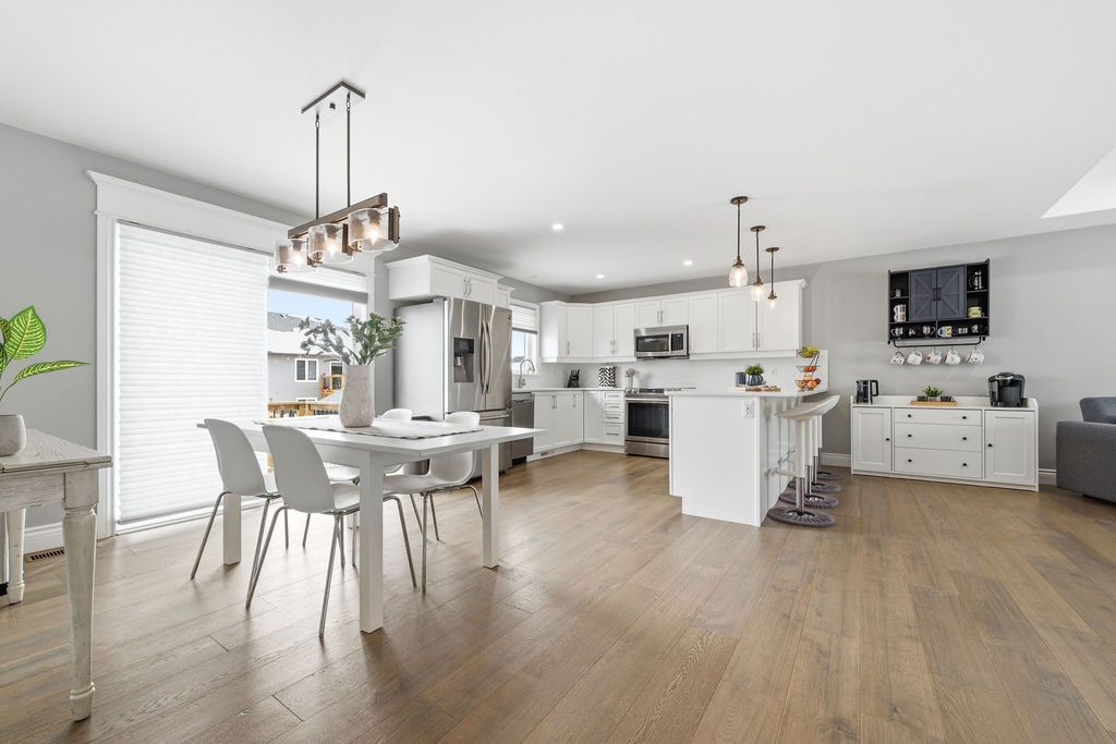 • Bright, open-concept living and dining space with elegant quartz countertops.