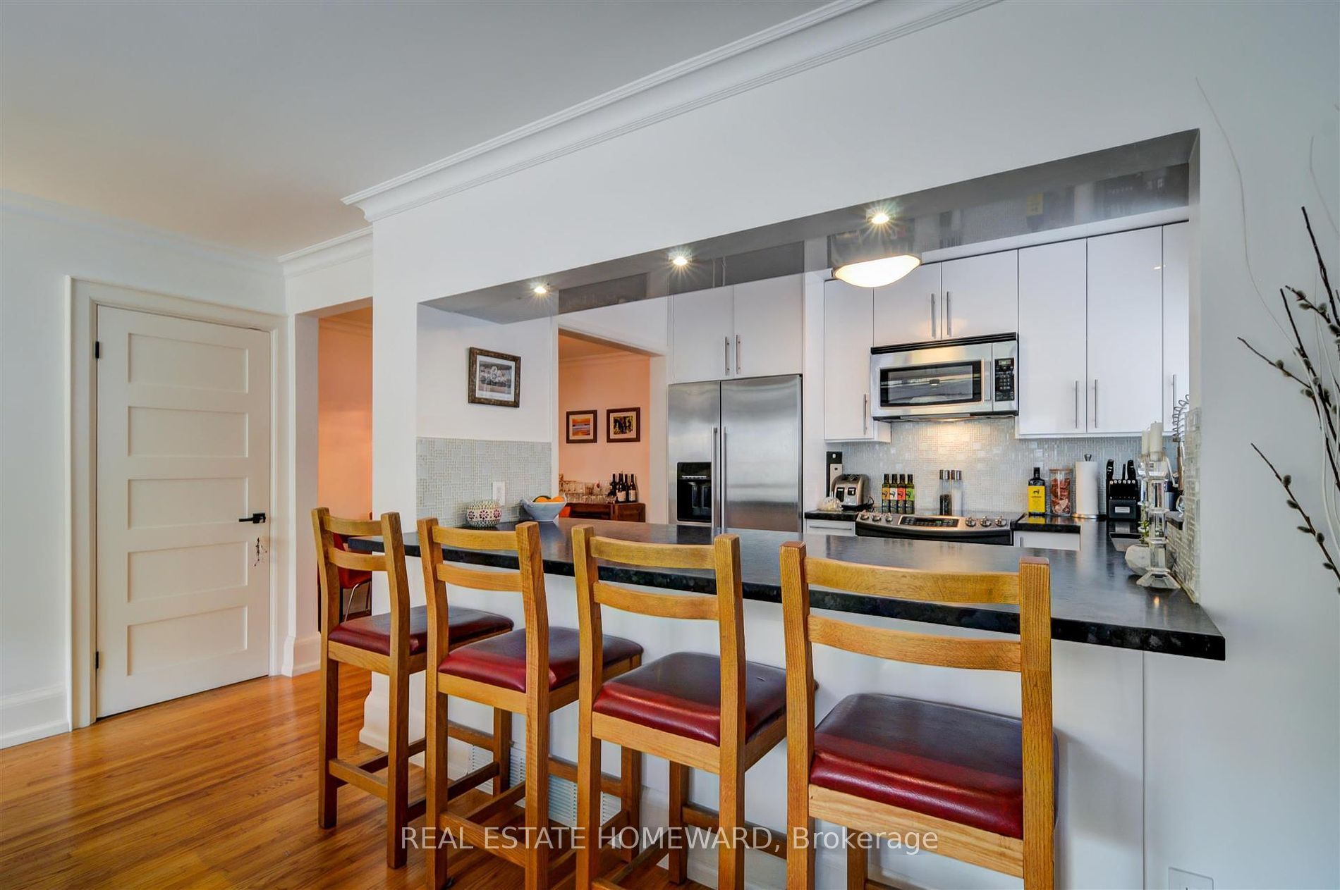 *facing a garden & parkette and a hill of trees in a quiet enclave on a wide-dead end street. Executive rental, main floor of triplex, 1,100 square feet (larger than most triplexes or semis). Gutted and renovated. Bright huge living rm with massive window view of garden and park across the street. Gourmet kitchen, enormous granite counter w/ leather finish (top-of-line) with 8 1/2 ft long breakfast bar. Italian glass backsplash, over-sized kindred stainless sink, goose neck faucet, huge window facing west. Sliding pots & pans drawers, lazy susan. Two large bedrooms, newer beautiful bathroom with window, tons of custom closet space, real oak flooring, new 7" baseboards, new plaster mouldings and smooth ceilings (no stucco), windows facing south, west and north, central air, exclusive use of backyard patio for bbq. Brand new 2025 lg large size washer & dryer (shared with single bsmt tenant only). Tiled ceiling in shower (shower head 7 feet tall). Walk to shops on queen st, stroll the boardwalk, by the lake. 24 hour ttc along woodbine to subway. Danforth go 5 minute drive. Parking in front of house. Floor plan attached. Sorry no pets, owner lives in upper unit and is acutely allergic & asthmatic.