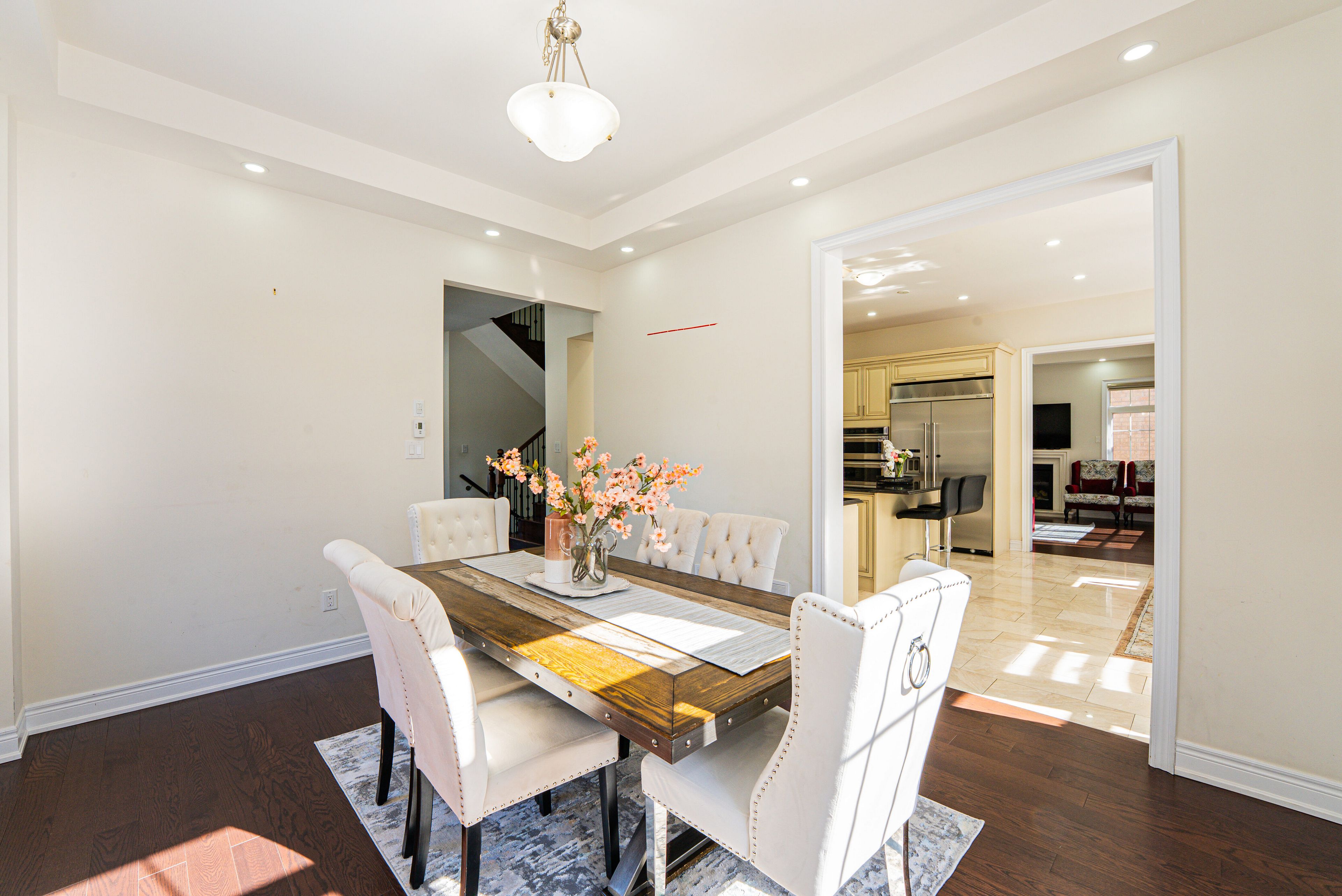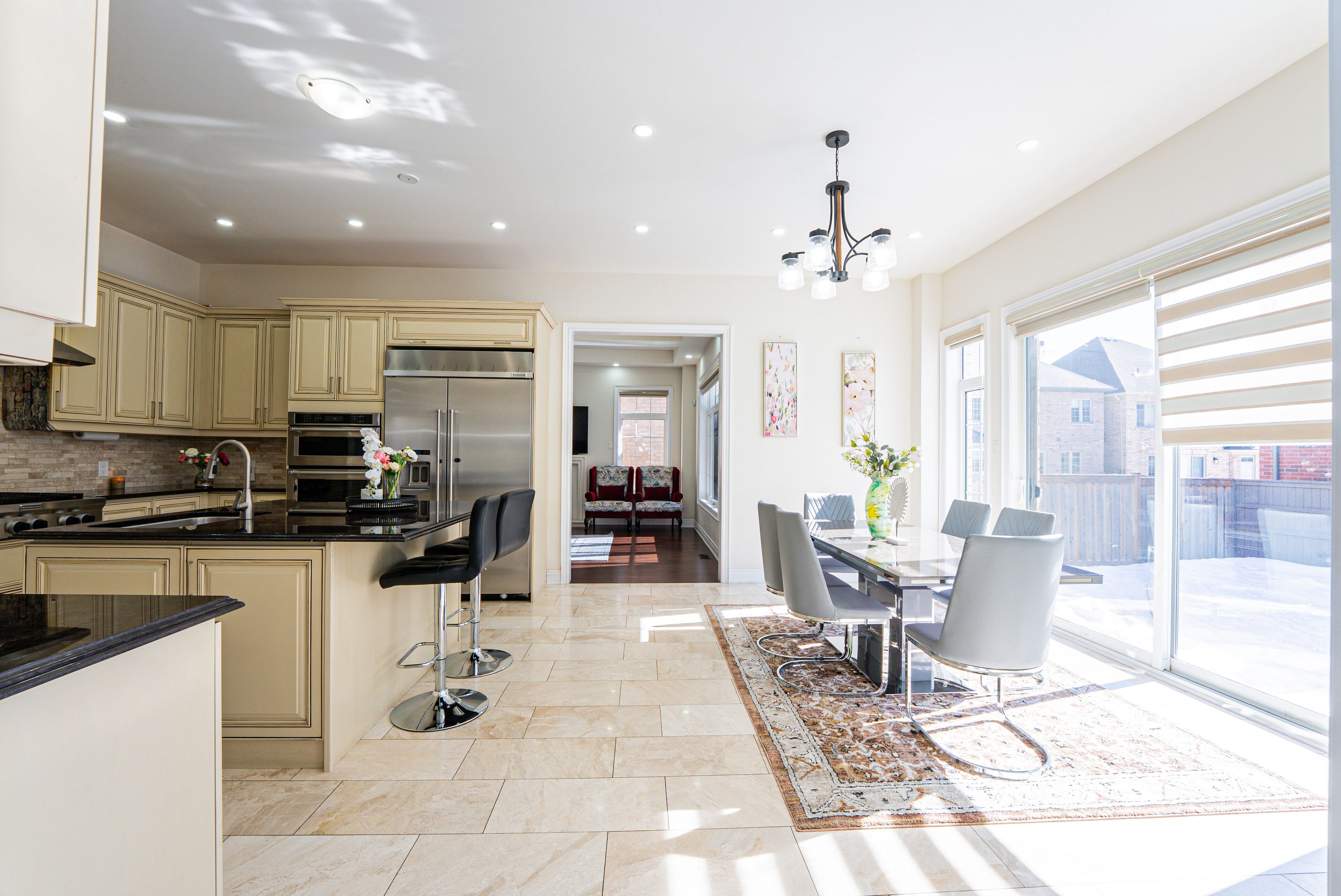• Upgraded chef's kitchen with granite countertops and custom cabinetry.