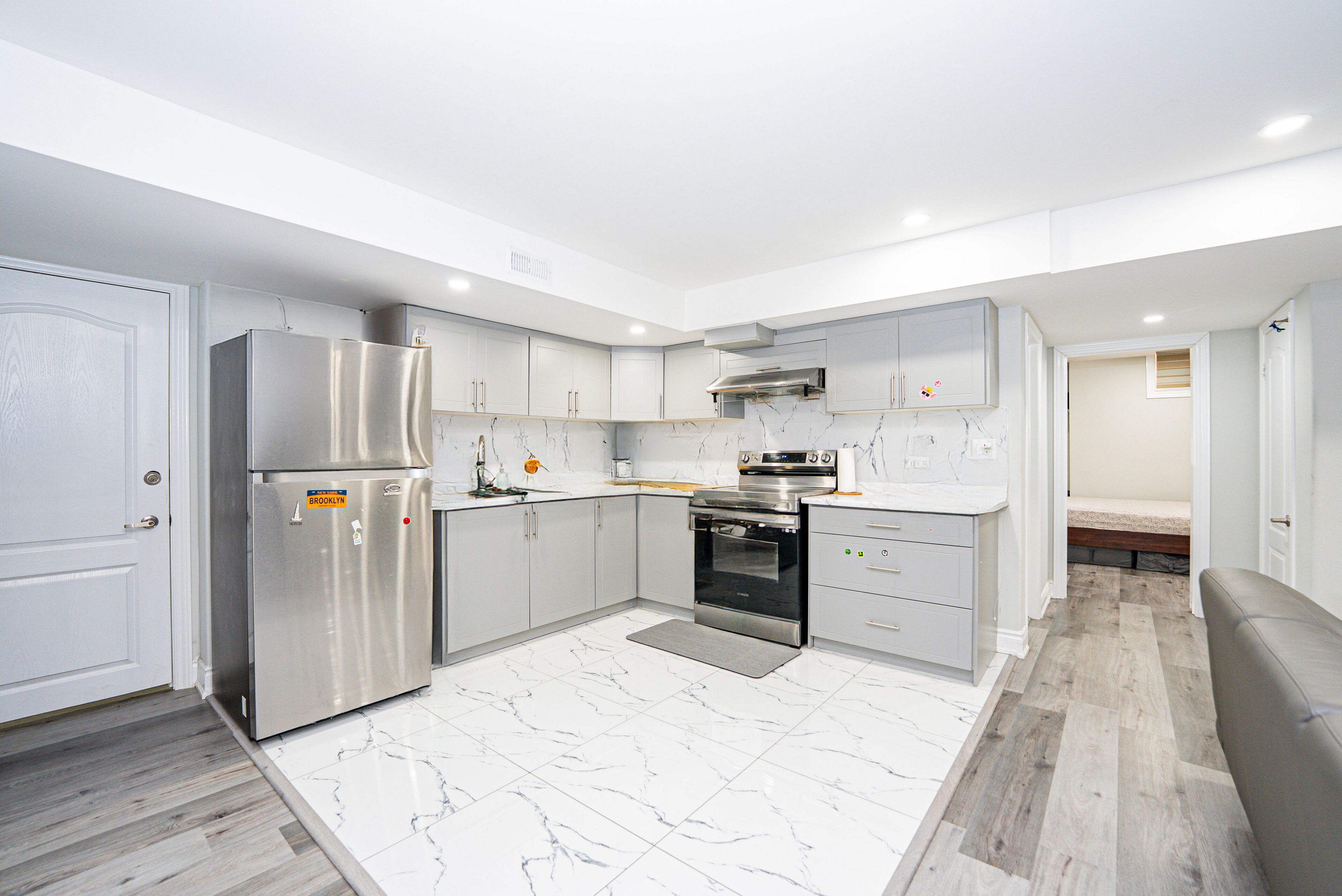 • Finished basement with two bedrooms and spacious living area for guests or rental.