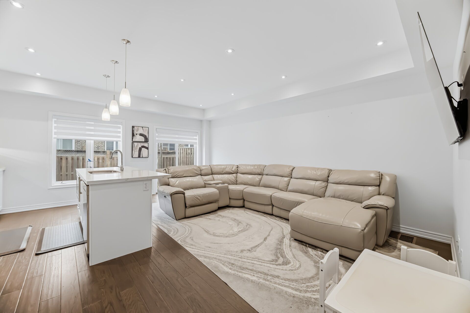 Welcome to this beautifully appointed end-unit townhome ideally situated in the highly sought-after west mountain neighbourhood, known for its family-friendly setting, excellent schools, parks, and convenient access to shopping, dining, and major commuter routes. Thoughtfully designed with modern elegance in mind, the open-concept main level features soaring 9-foot ceilings and a bright, airy layout ideal for both everyday living and entertaining. The chef-inspired kitchen serves as the focal point of the home, complete with a large centre island, quartz countertops, tile backsplash, ample custom cabinetry, and sleek stainless steel appliances - a perfect blend of style and functionality. The upper level offers three generously sized bedrooms, including a spacious primary retreat featuring a walk-in closet and ensuite 4-piece bathroom. The additional bedrooms are well-proportioned and filled with natural light, ideal for family, guests, or a dedicated home office. A large unfinished basement with impressive ceiling height provides exceptional potential for future living space, whether envisioned as a recreation room, home gym, media lounge, or additional suite - a rare and valuable feature in townhome living. Located in a quiet, well-maintained community surrounded by green space and everyday conveniences, this home offers the perfect balance of comfort, style, and location.