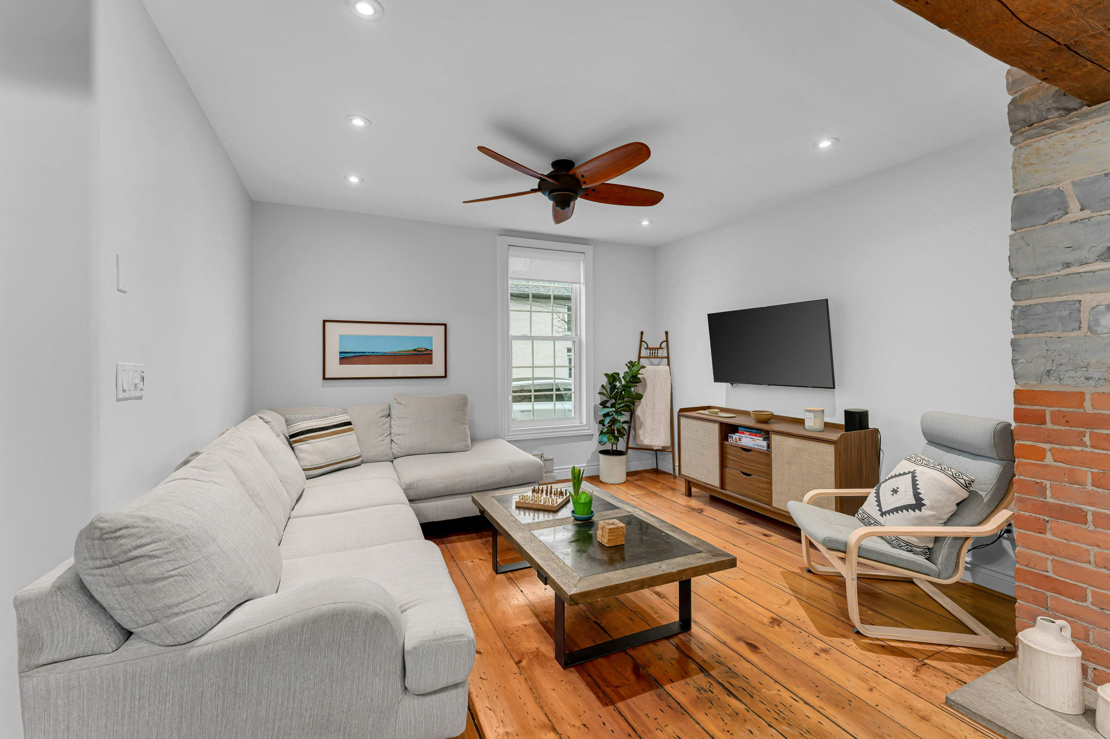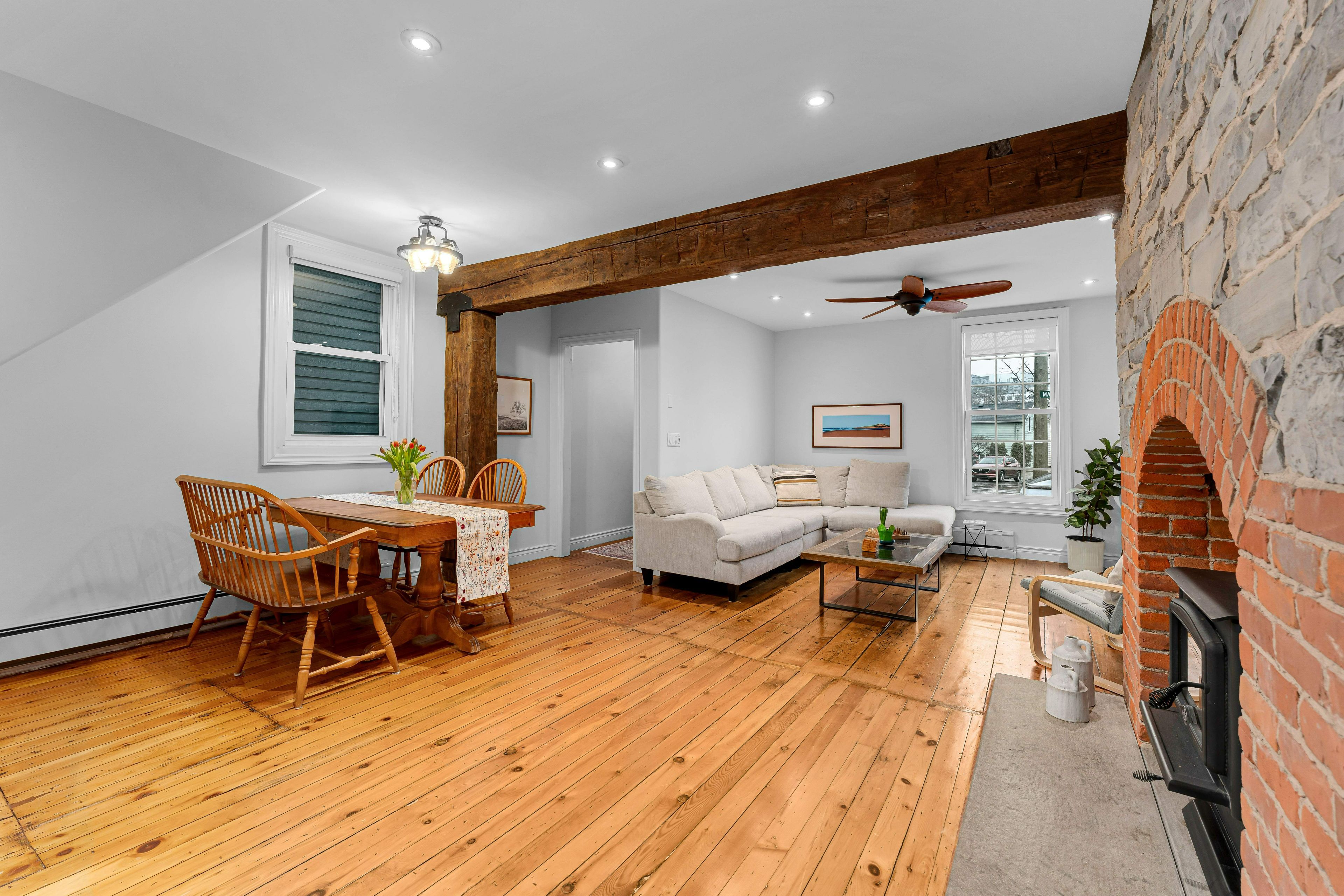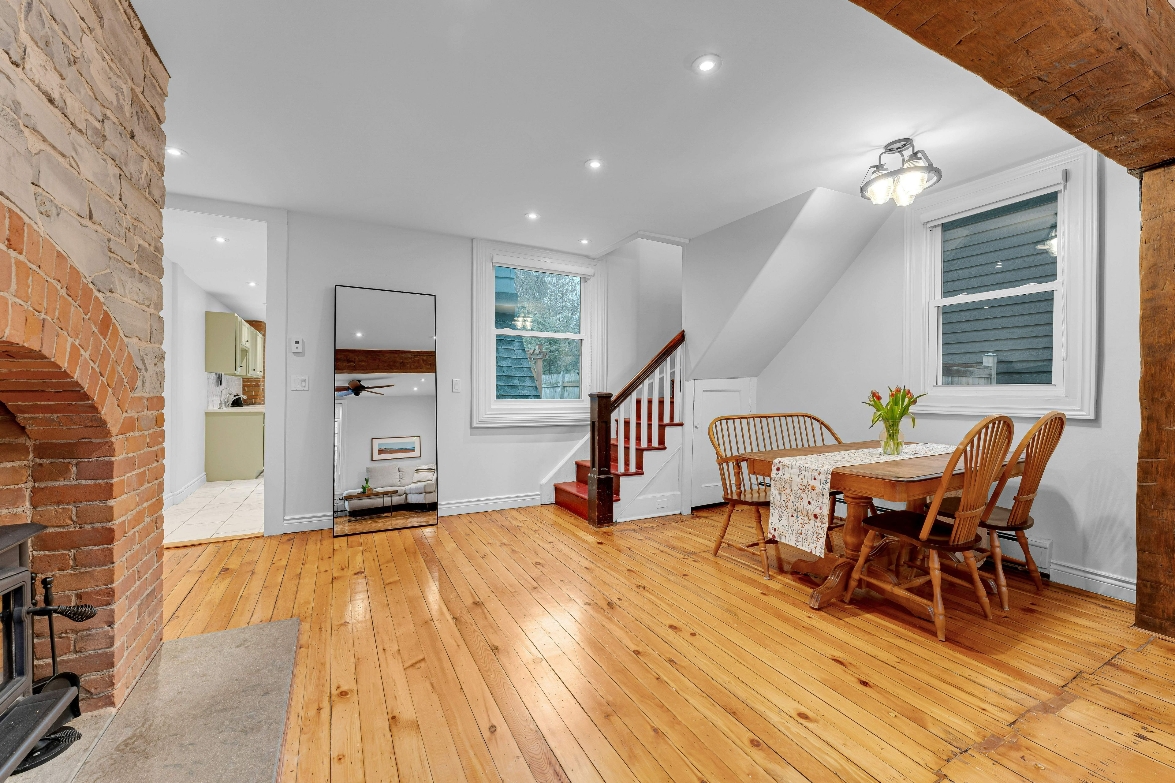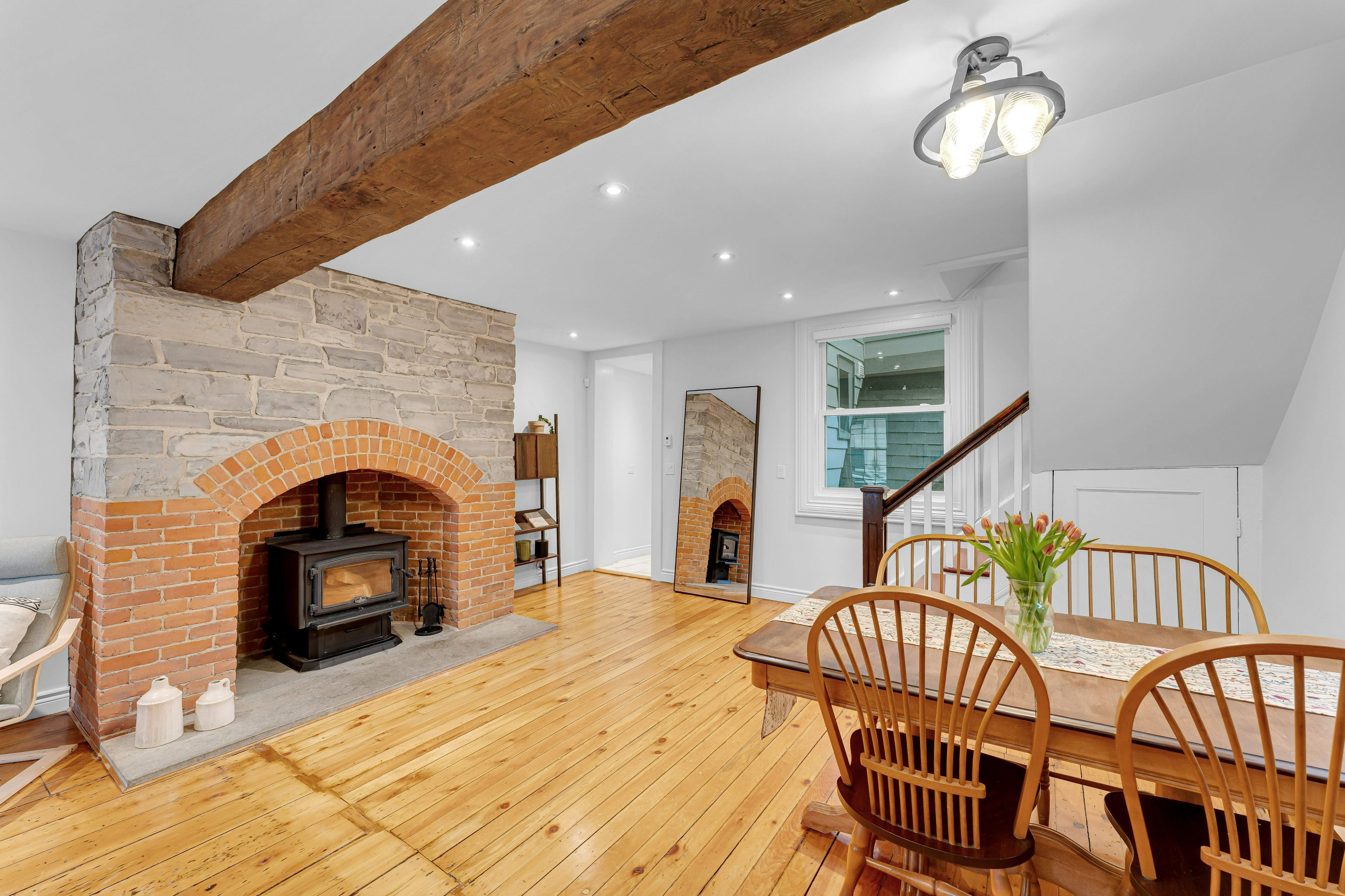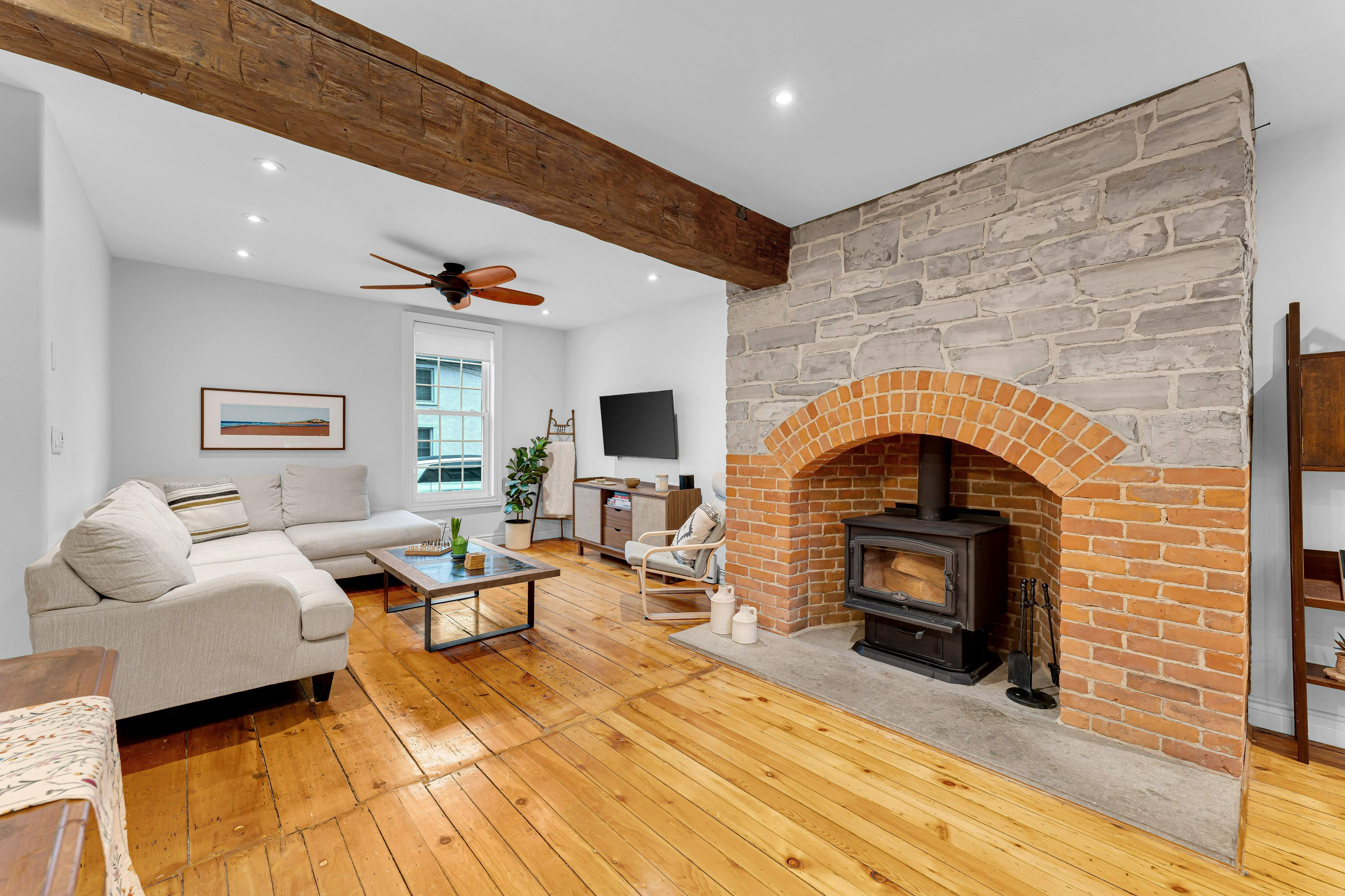 Set in a prime downtown kingston location, this circa 1870 gem blends timeless character with modern updates. Offering 3 bedrooms and 1. 5 bathrooms, the home features a welcoming open concept living room and dining room, along with an updated kitchen designed for everyday living. Upstairs, a versatile flex space adds the perfect spot for a home office, reading nook, or additional lounge. Rich in character, you'll find exposed brick, wood beams and limestone, a woodstove, and beautiful original pine plank floors that speak to the home's history. Extensive renovations in recent years include the roof, boiler, windows, and inviting outdoor living space making this property truly move-in ready. Step outside to a private backyard retreat with pergola, patios, a play structure and cedar shed or small studio space. All just a short walk to mcburney park, queen's university, and kingston's vibrant downtown.