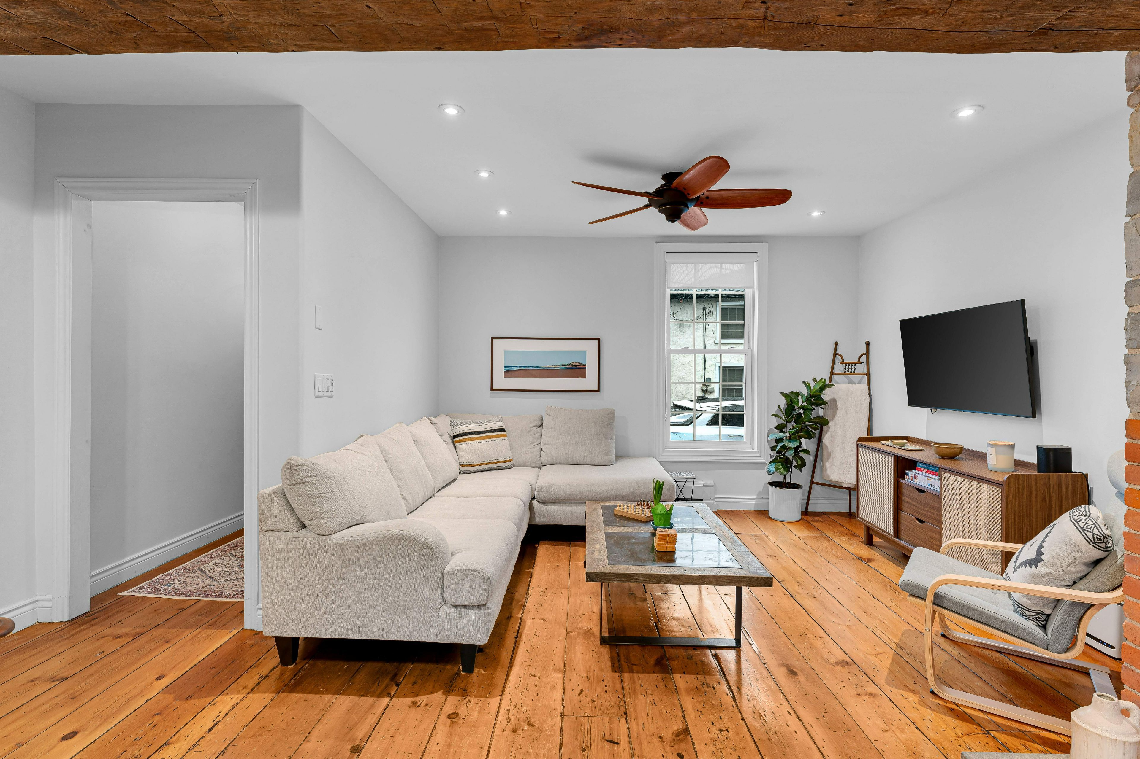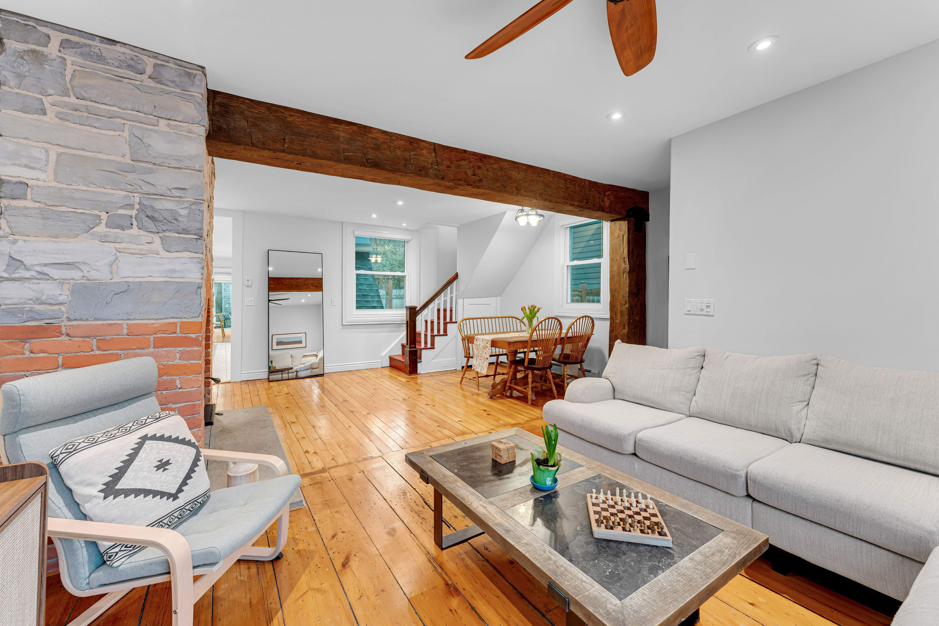 • Charming 1870 home featuring original pine plank floors and exposed brick.
