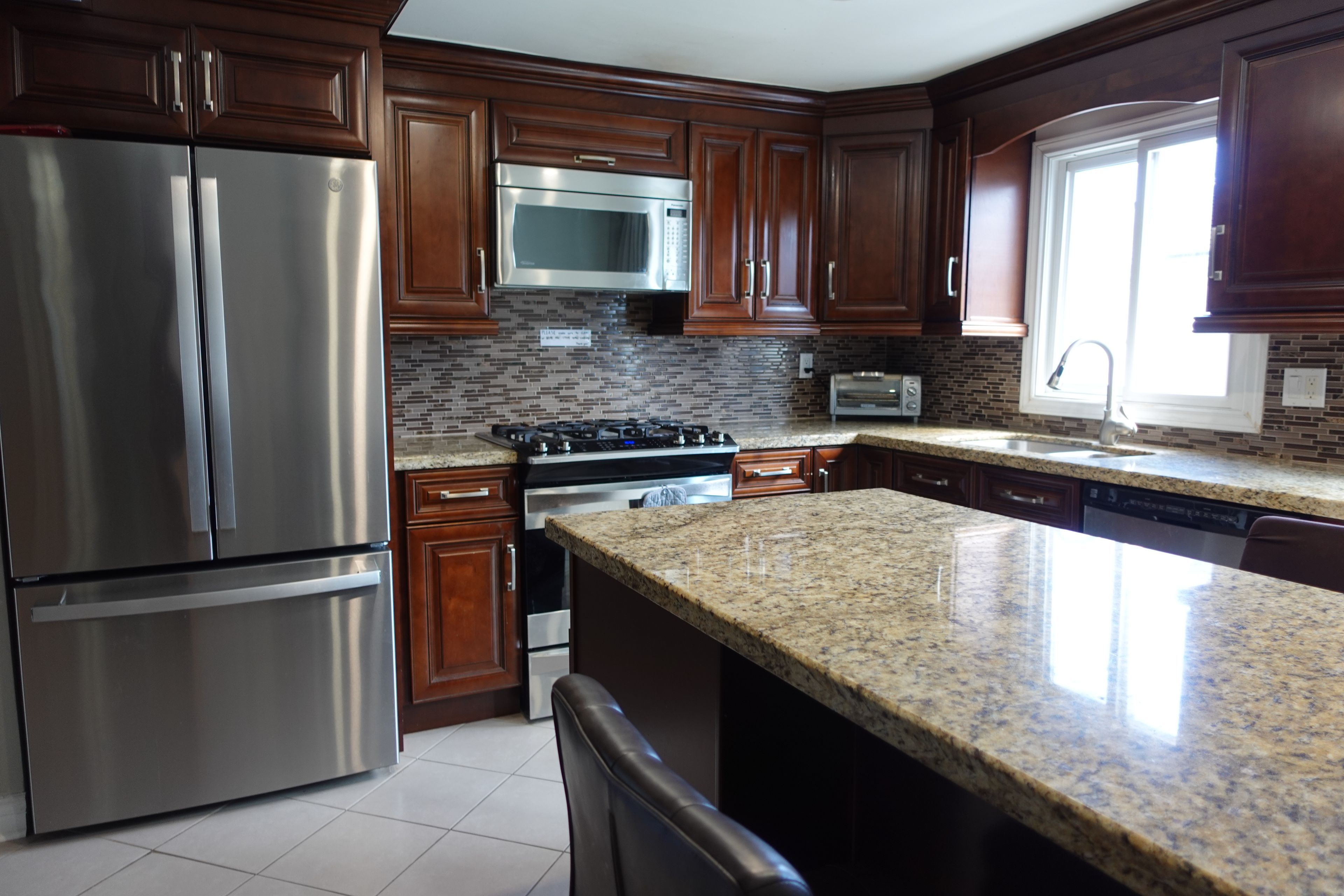 • Updated eat-in kitchen with granite countertops and stainless steel appliances.