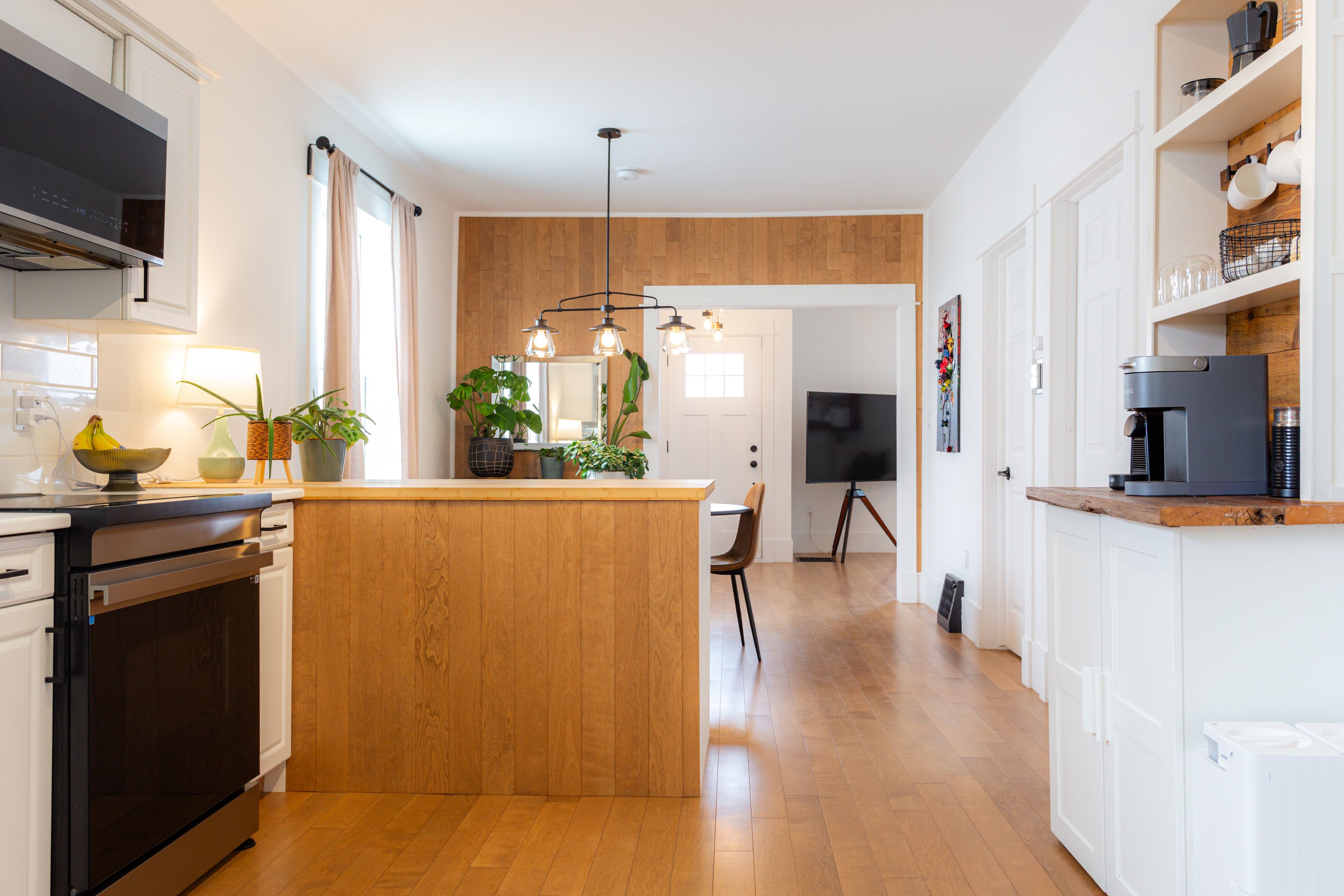 • Stylish bamboo countertops and updated kitchen appliances with Wi-Fi.