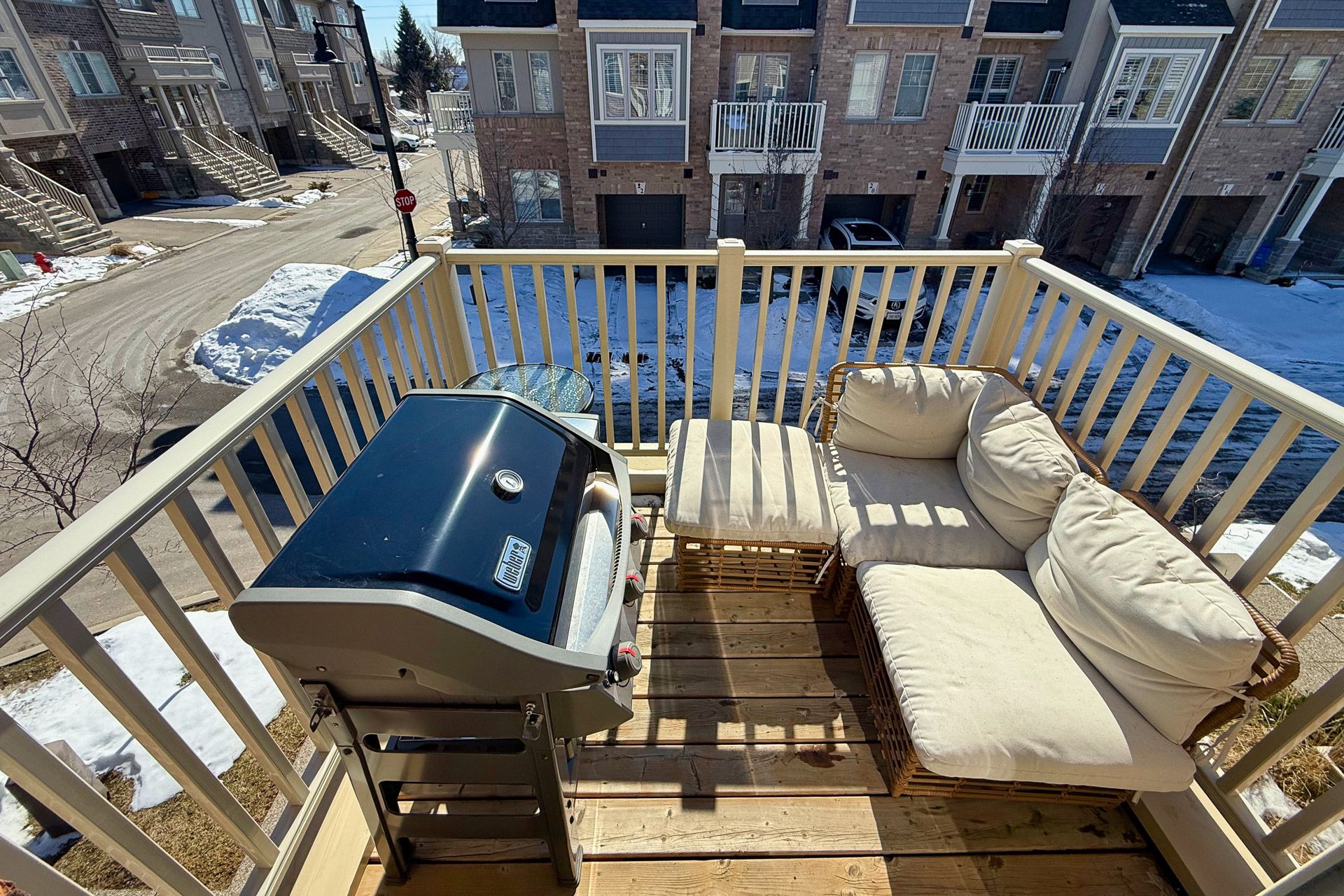 • Private second floor balcony for morning coffee or BBQ gatherings.