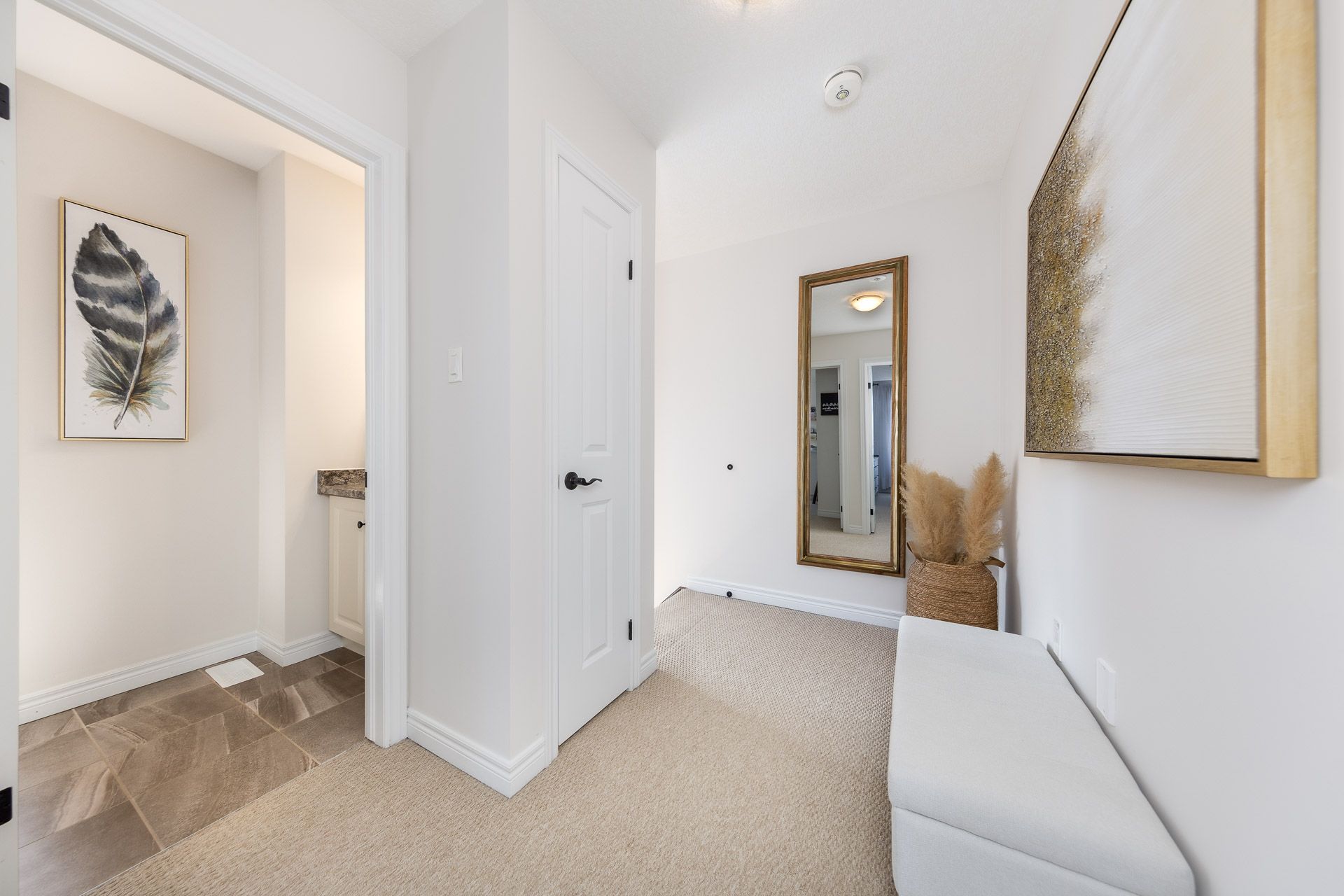 Welcome to 21 marr lane, built by marz homes in 2020. This beautiful end-unit townhome offers 2 bedrooms + den, 2. 5 bathrooms, and 1,454 sq. Ft. Of bright, comfortable living space filled with natural light. The main level features a versatile den/home office or additional living area, along with convenient inside entry from the attached garage. The open-concept second level is designed for both everyday living and entertaining, showcasing a seamless flow between the living, dining, and kitchen areas. Step out onto the private second floor balcony, an ideal spot to enjoy your morning coffee or fire up the bbq. The bright kitchen includes a walk-in pantry, and the laundry and powder room are thoughtfully located on this level for added convenience. Upstairs, you'll find two spacious bedrooms, each complete with its own private 4-piece bathroom. The primary bedroom features an ensuite, offering comfort and privacy. This desirable end unit is ideally situated near schools, parks, golf courses, and the shopping and dining along golf links road. With quick access to highway 403 and the lincoln alexander parkway, commuting and daily errands are effortless. Low maintenance fee of just $89. 00 per month. A fantastic opportunity for first-time buyers, downsizers, or investors!