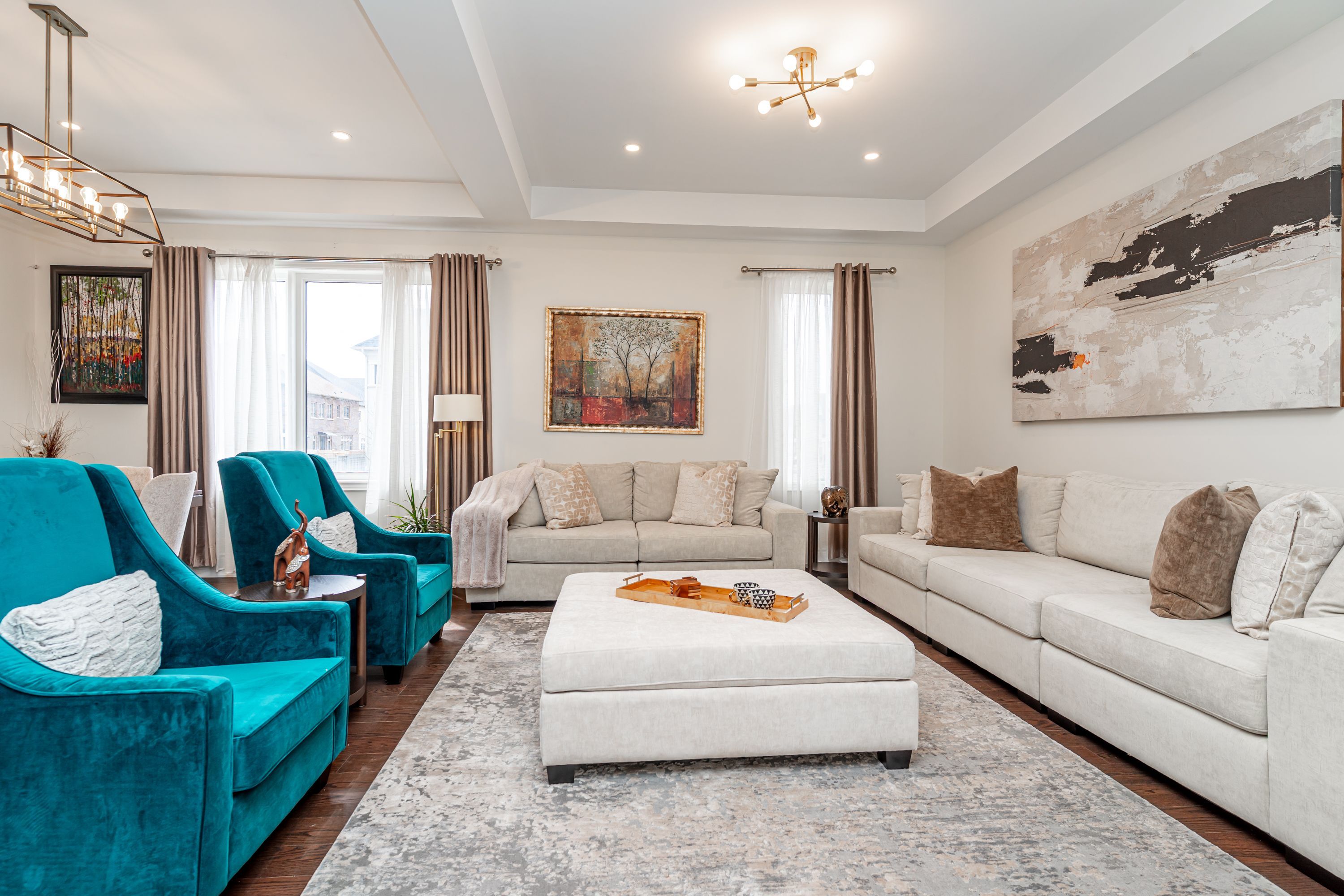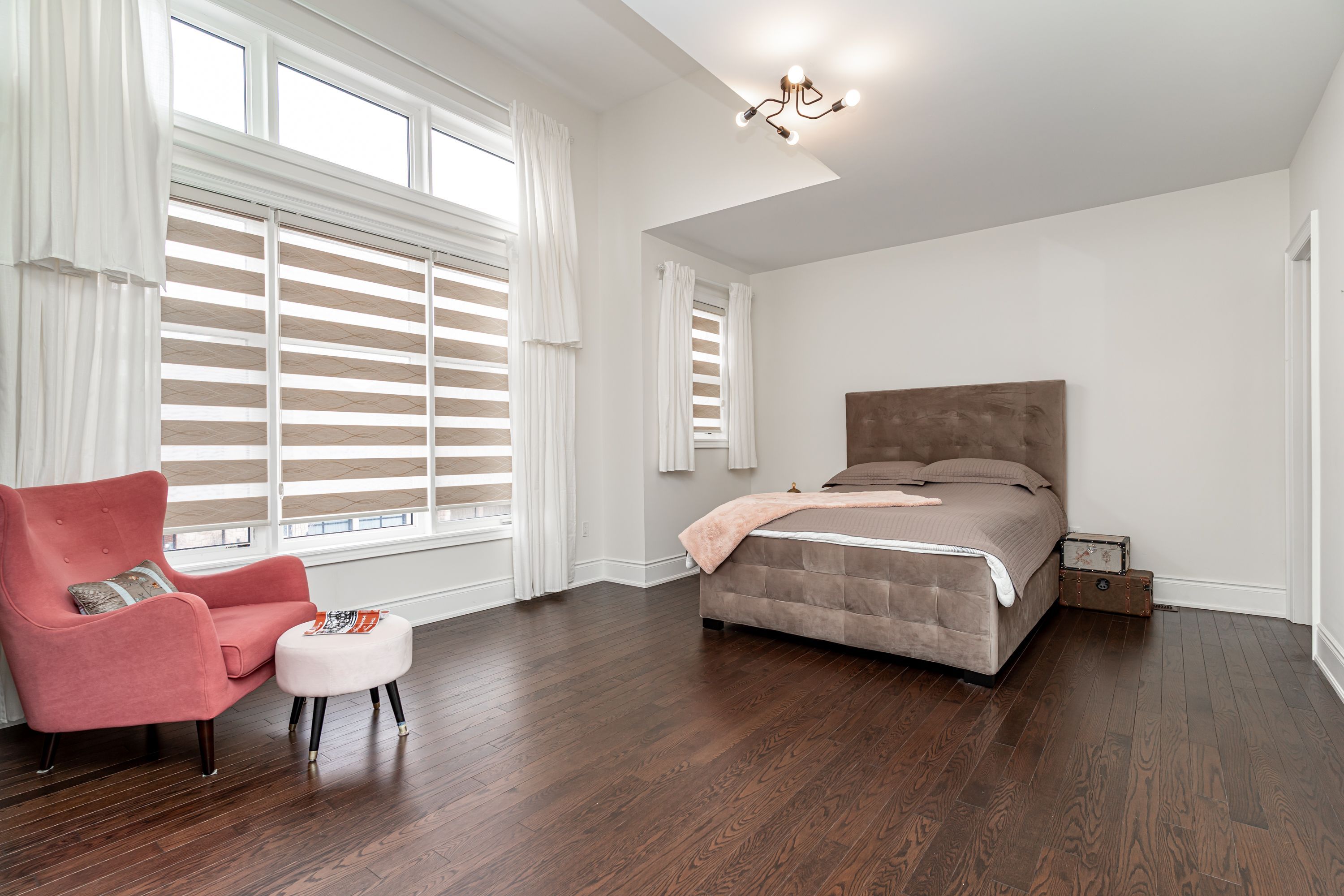 • Vaulted ceilings and large windows create a bright, airy atmosphere.