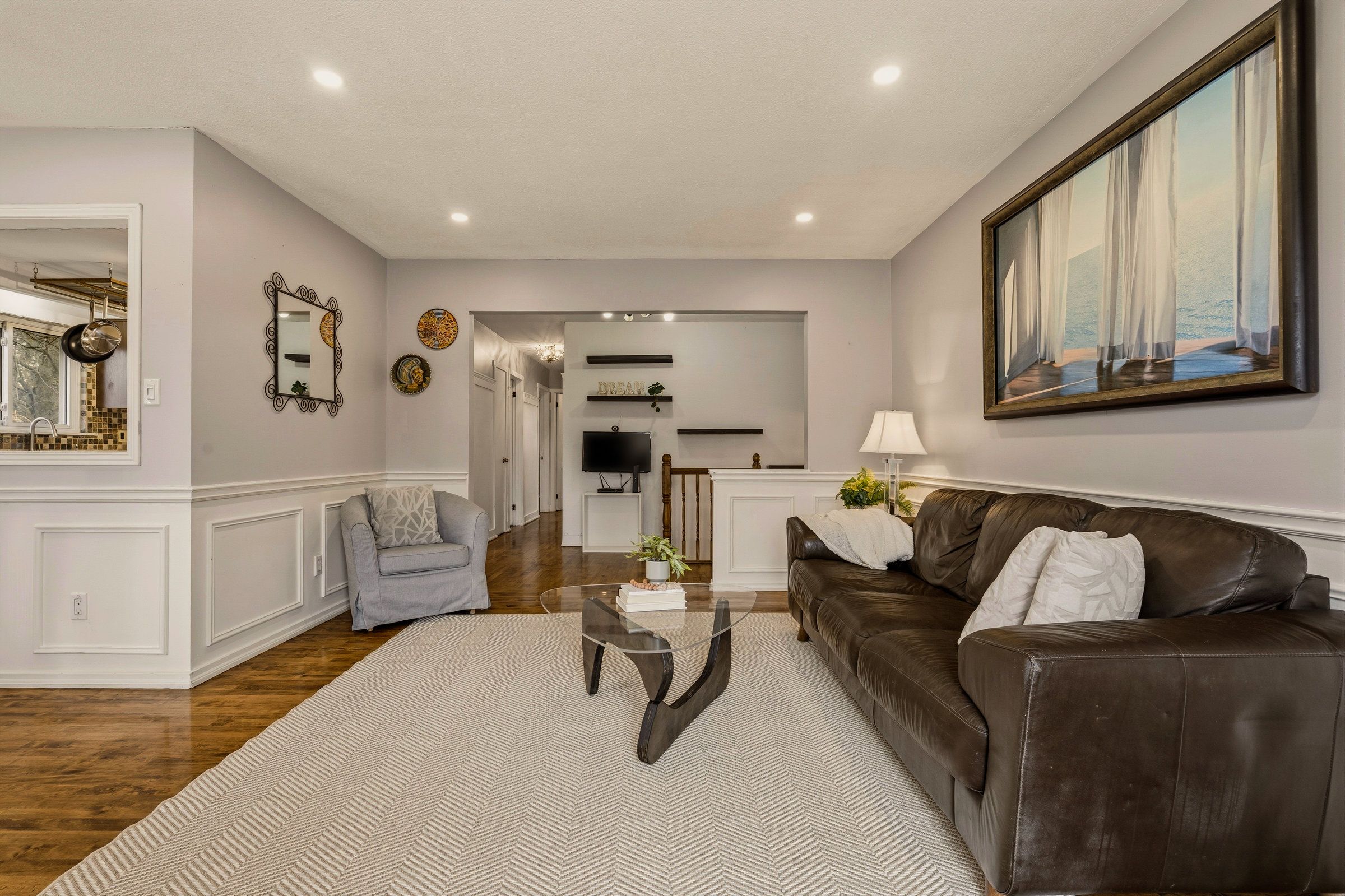 • Spacious main level with open-concept living, dining, and generous bedrooms.