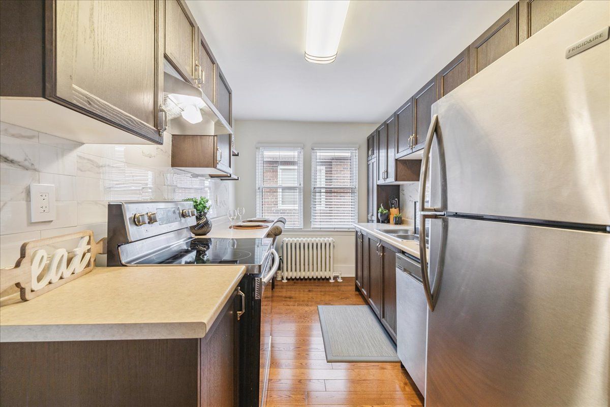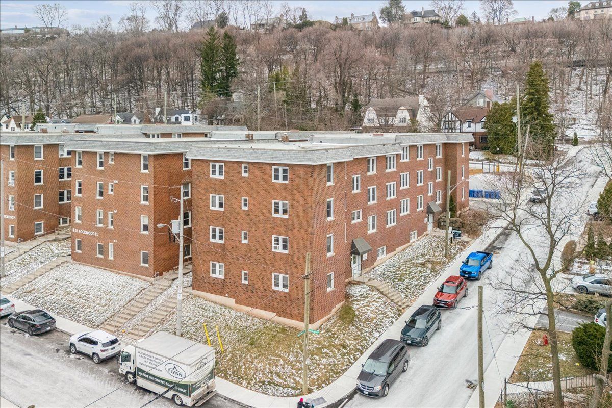 This spacious one-bedroom condominium offers approximately 892 square feet of comfortable living in hamilton's sought-after durand neighbourhood. Renovated in 2019 with new hardwood flooring, windows, kitchen and bathroom! New backsplash and light fixtures in the last 3 years. This bright and functional layout indudes a generous living and dining area, a dedicated den, currently used as an office space but could be used as a second bedroom, a full eat-in kitchen, in-suite laundry, and a well-sized bedroom featuring two closets. Situated in a solid brick building, the unit provides a quiet and established setting while being just steps from downtown, hospitals, parks, public transit, and everyday amenities. An excellent opportunity for first-time buyers, downsizers, or investors looking for a centrally located, walkable lifestyle.