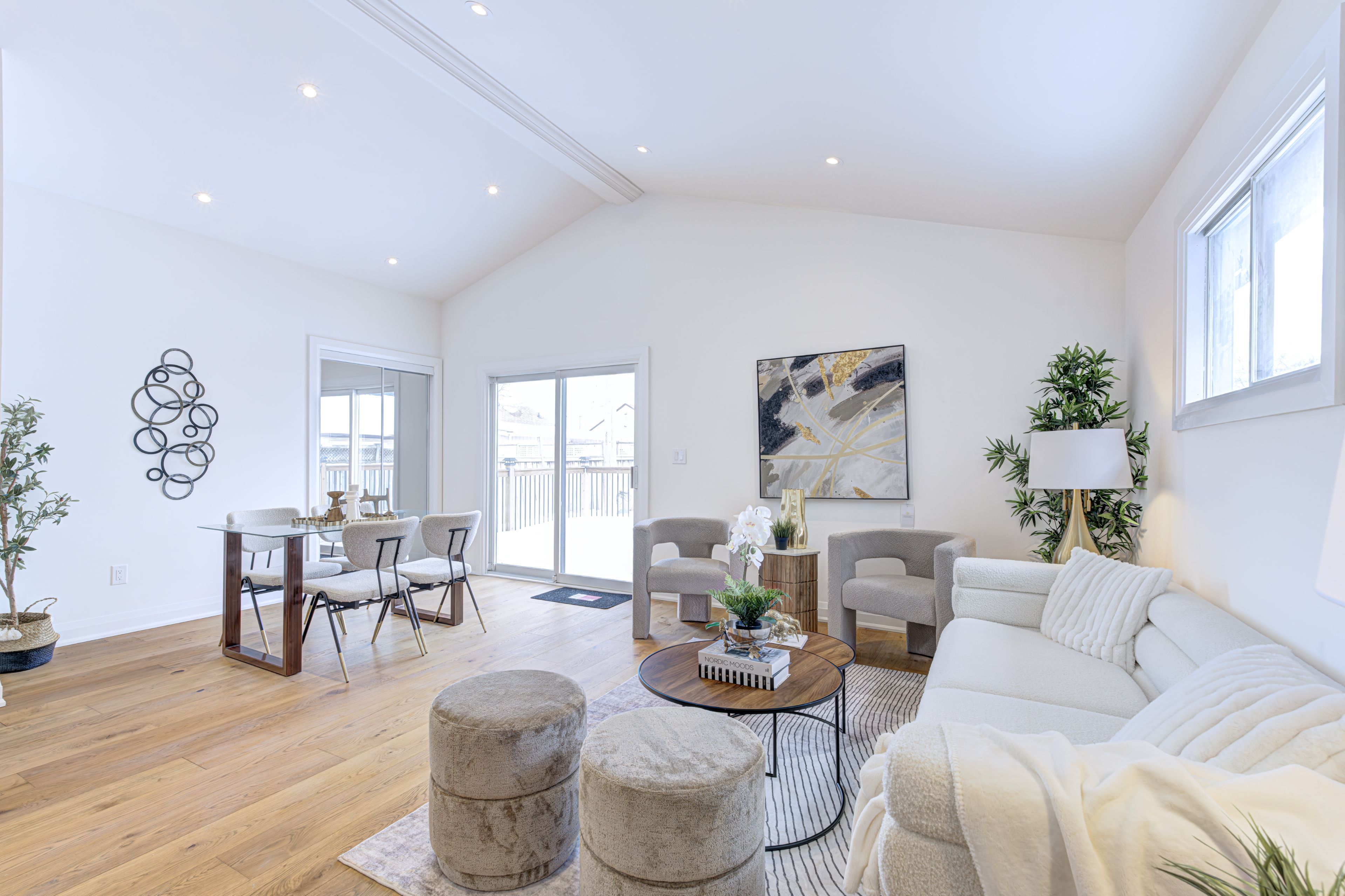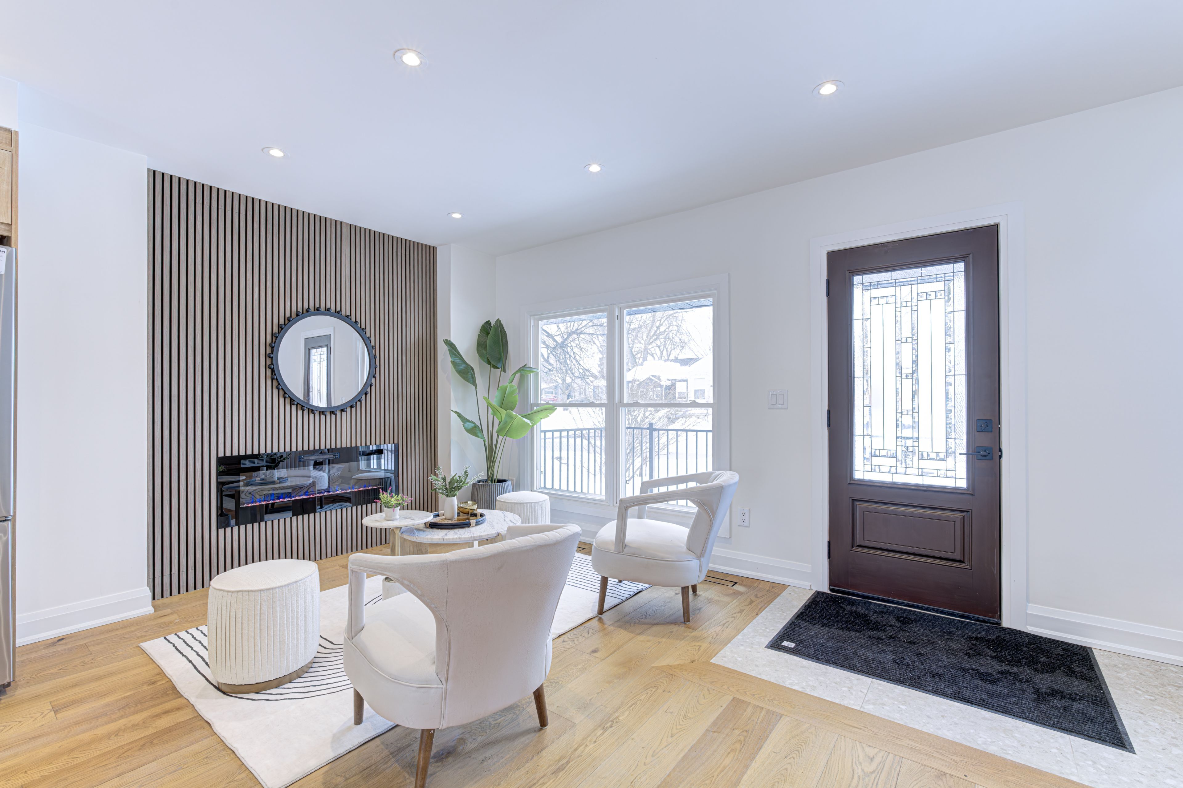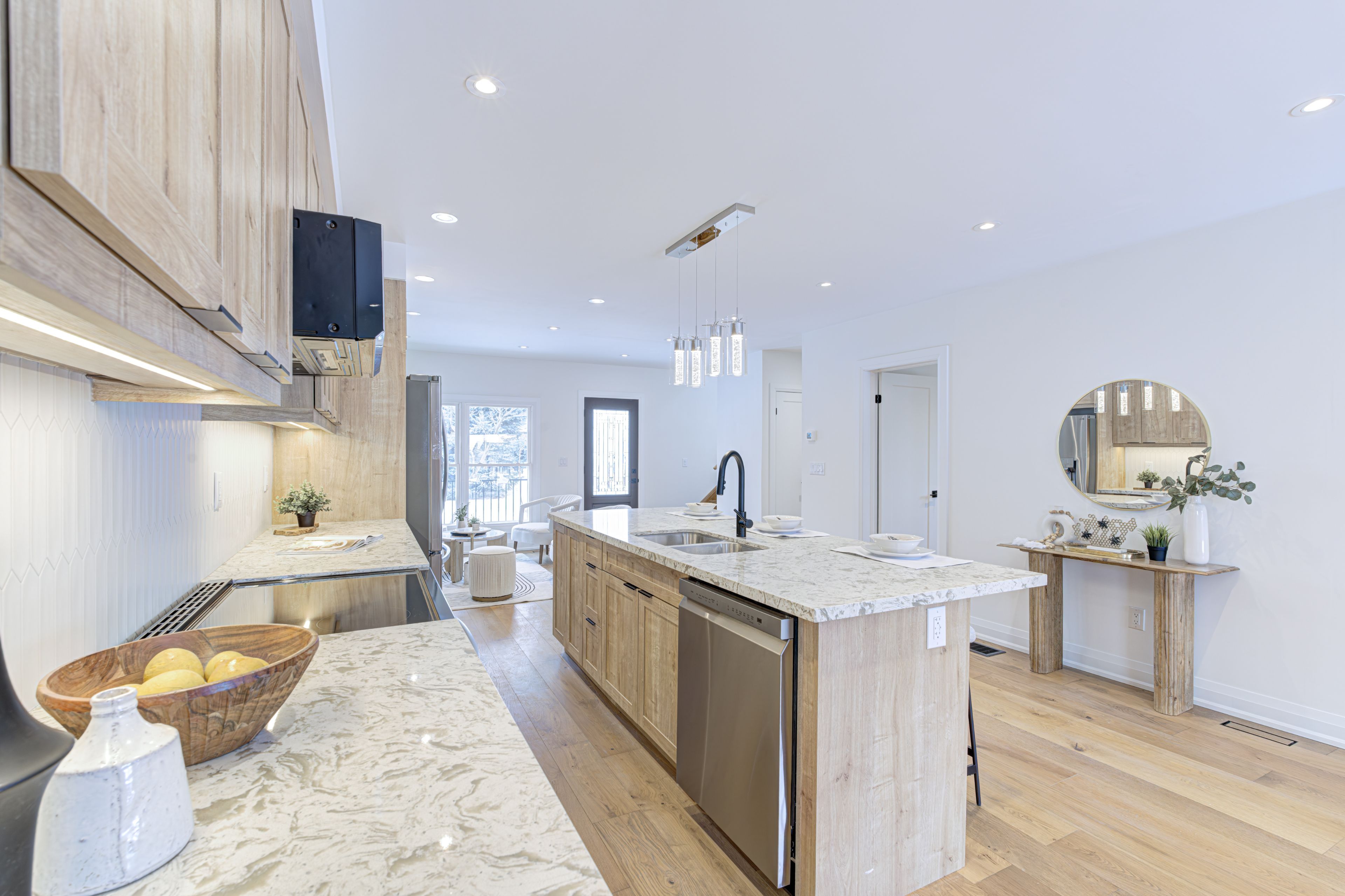 Beautifully upgraded 3-bedroom home with a main floor den that can easily function as a 4thbedroom, offering a bright, open-concept layout designed for modern living. Soaring ceilings inthe living and dining area create a bright, open feel throughout the main floor, enhancing thesense of space and natural light while providing an inviting setting for both everyday livingand entertaining. The fully updated kitchen is the heart of the home, featuring customcabinetry, stone countertops, stainless steel appliances, and a large centre island withseating, perfect for hosting family and guests. The open layout flows seamlessly into theliving area, highlighted by a modern feature wall and fireplace that adds warmth, style, andcharacter to the space. The main floor den offers flexibility for a home office, guest room, oradditional bedroom. Thoughtfully finished throughout with quality upgrades, the home offers afunctional layout that balances comfort and design. The upper level features three generouslysized bedrooms, including a spacious primary suite complete with its own private ensuite, alongwith an additional full washroom for added convenience. A separate entrance leads to a finishedbasement bachelor suite complete with a full washroom and its own separate laundry, offeringexcellent flexibility for extended family, in-law use, or additional living space. A move-inready home that combines thoughtful upgrades, functional design, and versatile living.