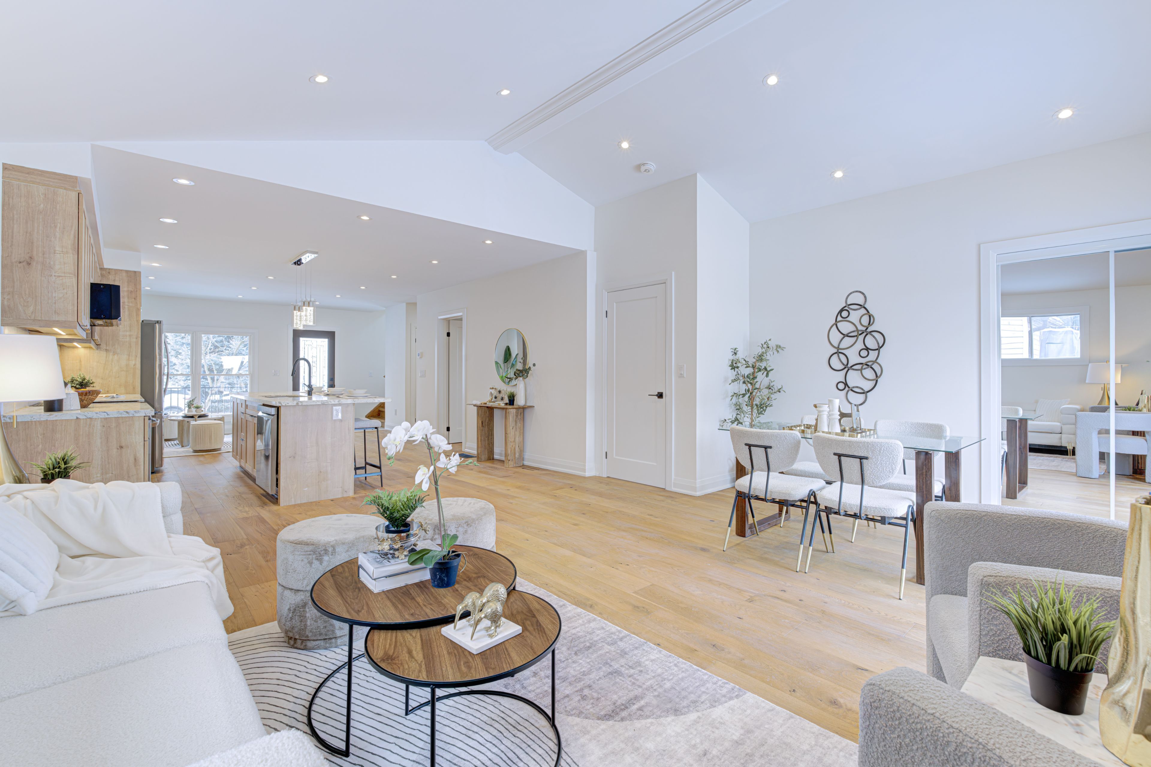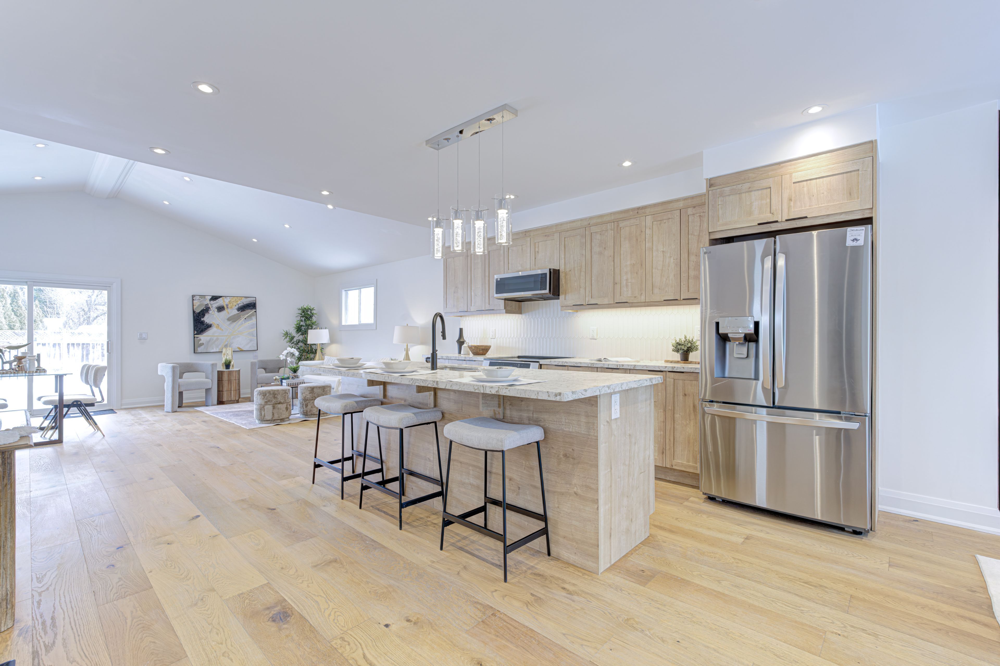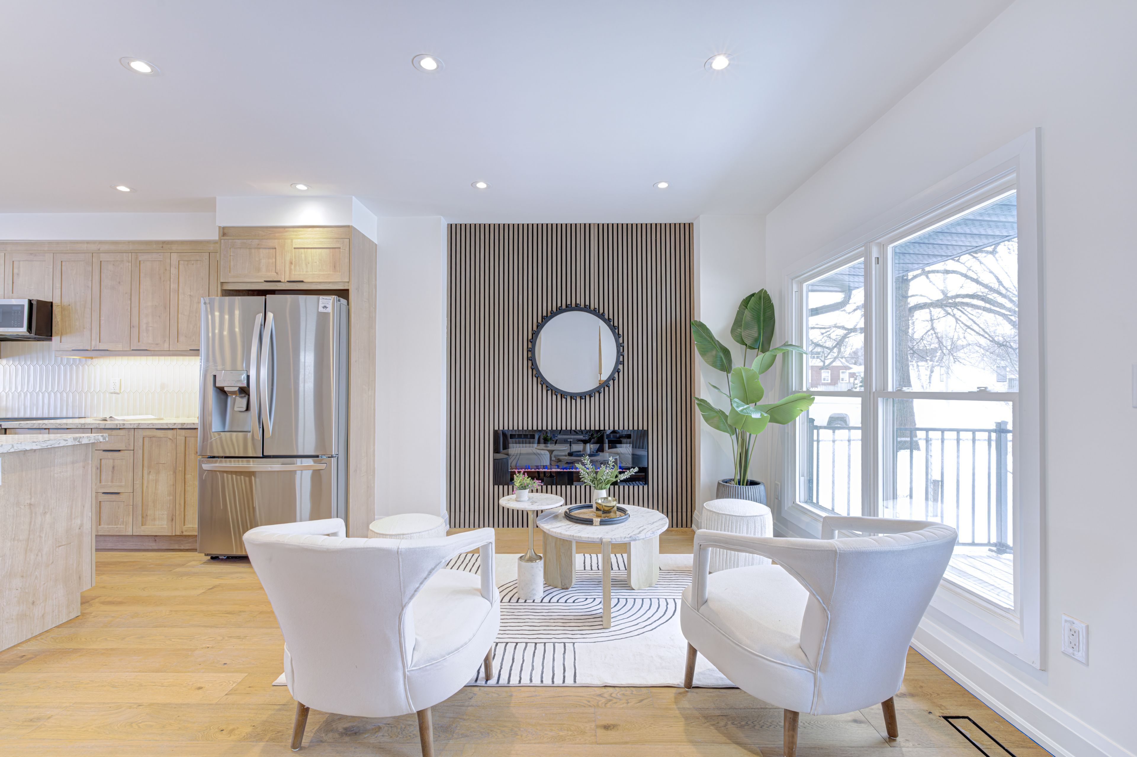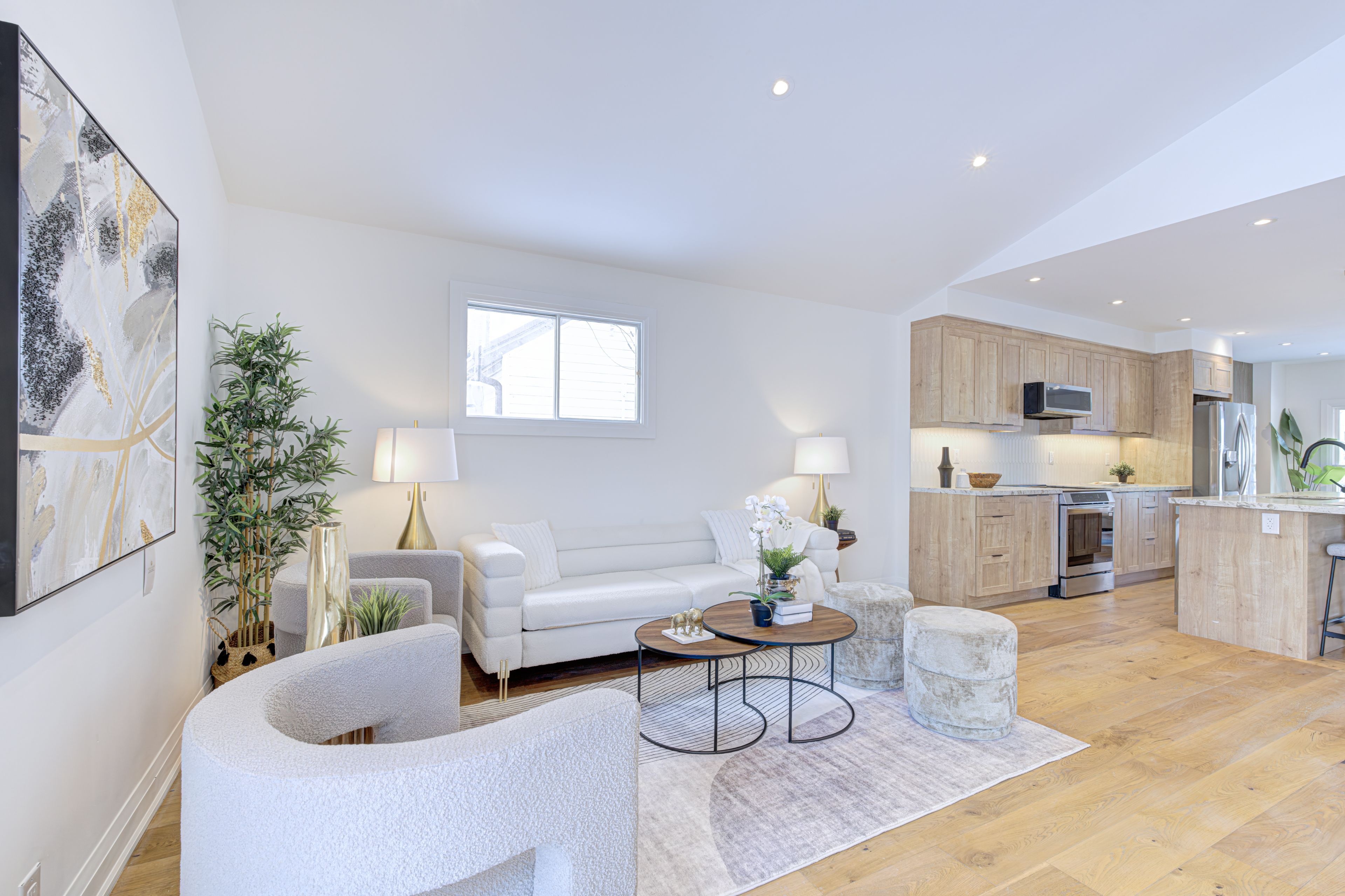 Beautifully upgraded 3-bedroom home with a main floor den that can easily function as a 4thbedroom, offering a bright, open-concept layout designed for modern living. Soaring ceilings inthe living and dining area create a bright, open feel throughout the main floor, enhancing thesense of space and natural light while providing an inviting setting for both everyday livingand entertaining. The fully updated kitchen is the heart of the home, featuring customcabinetry, stone countertops, stainless steel appliances, and a large centre island withseating, perfect for hosting family and guests. The open layout flows seamlessly into theliving area, highlighted by a modern feature wall and fireplace that adds warmth, style, andcharacter to the space. The main floor den offers flexibility for a home office, guest room, oradditional bedroom. Thoughtfully finished throughout with quality upgrades, the home offers afunctional layout that balances comfort and design. The upper level features three generouslysized bedrooms, including a spacious primary suite complete with its own private ensuite, alongwith an additional full washroom for added convenience. A separate entrance leads to a finishedbasement bachelor suite complete with a full washroom and its own separate laundry, offeringexcellent flexibility for extended family, in-law use, or additional living space. A move-inready home that combines thoughtful upgrades, functional design, and versatile living.