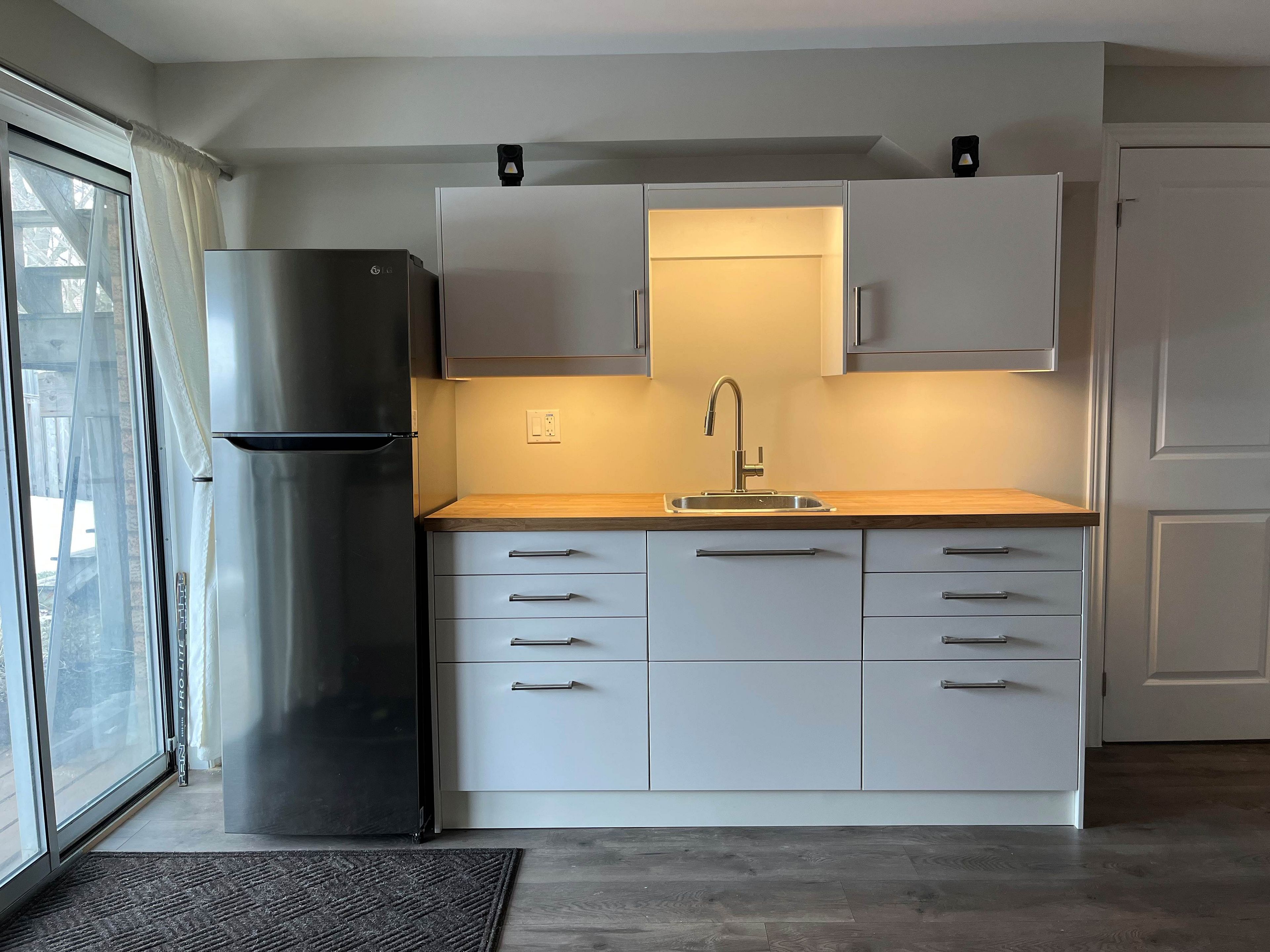 Large 1 bedroom with living/dining and large storage rooms, lower level walk-out unit with separate entrance. Rent is $1750 per month, including utilities (gas, hydro, water, central air). Tenant to pay their own phone, internet and cable tv. Includes 5 appliances - fridge, oven, microwave oven, washer and dryer. Landlord will require lease agreement, credit report, application, references, 1st and last months rent and current employment letter. Non-smoking unit. Landlord lives on upper floors and will consider a per depending on type and size. 1 outside parking spot in the driveway. Excellent west end barrie location close to amenities and easy access to hwy 400.