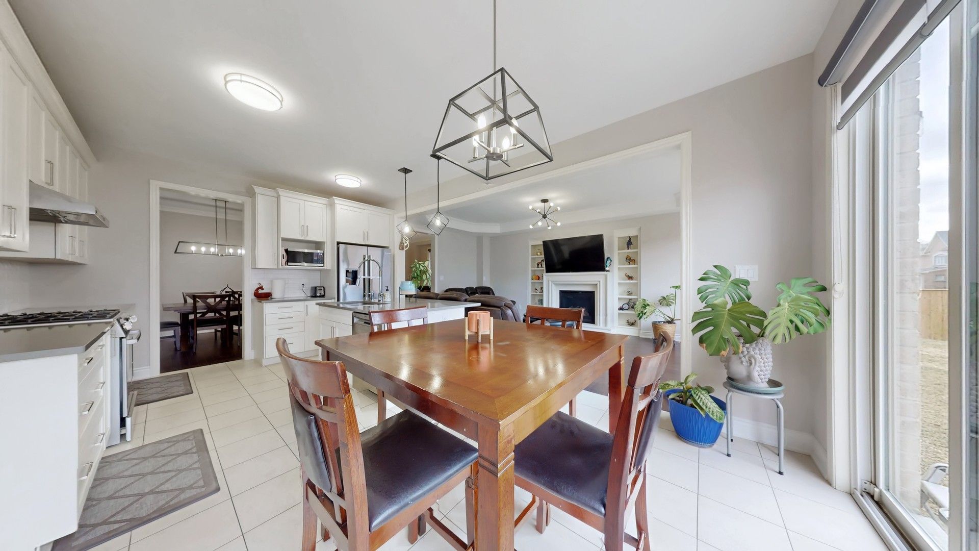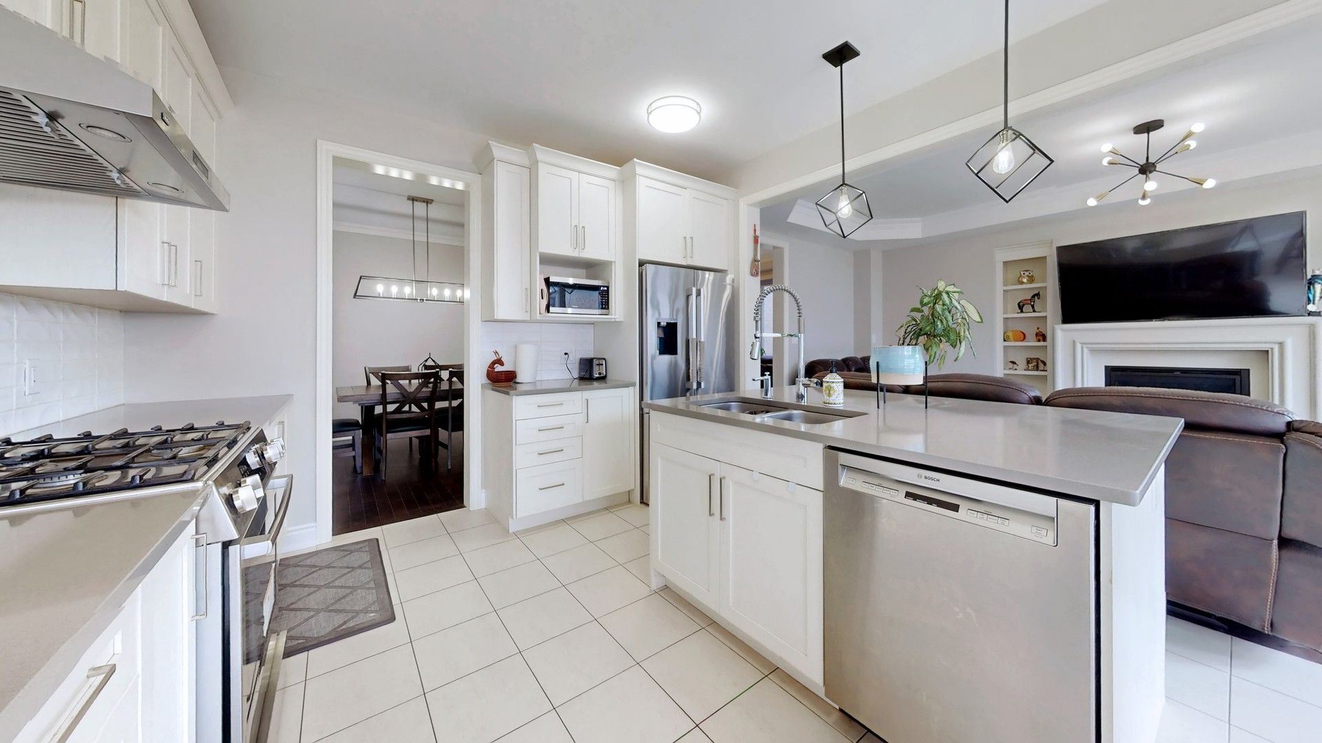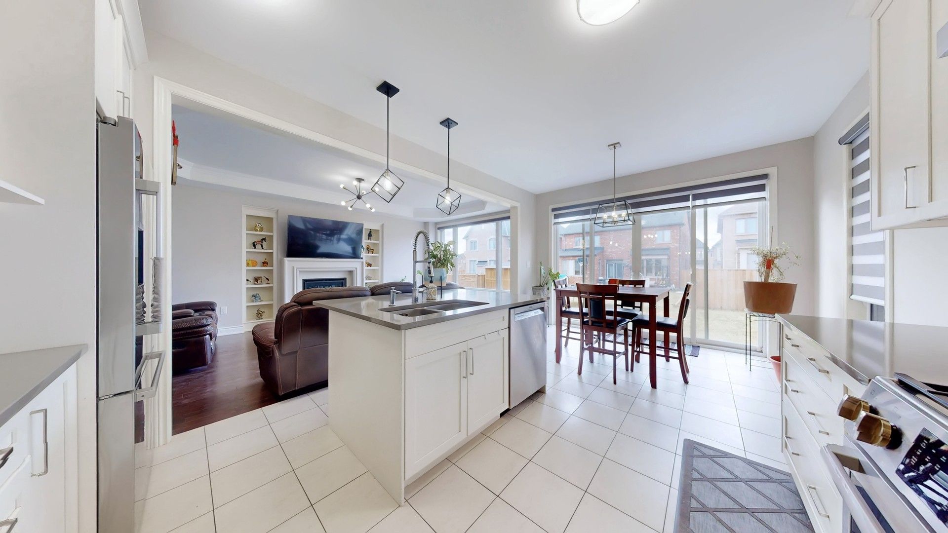 • Gourmet kitchen flows into a bright family room with cozy fireplace.