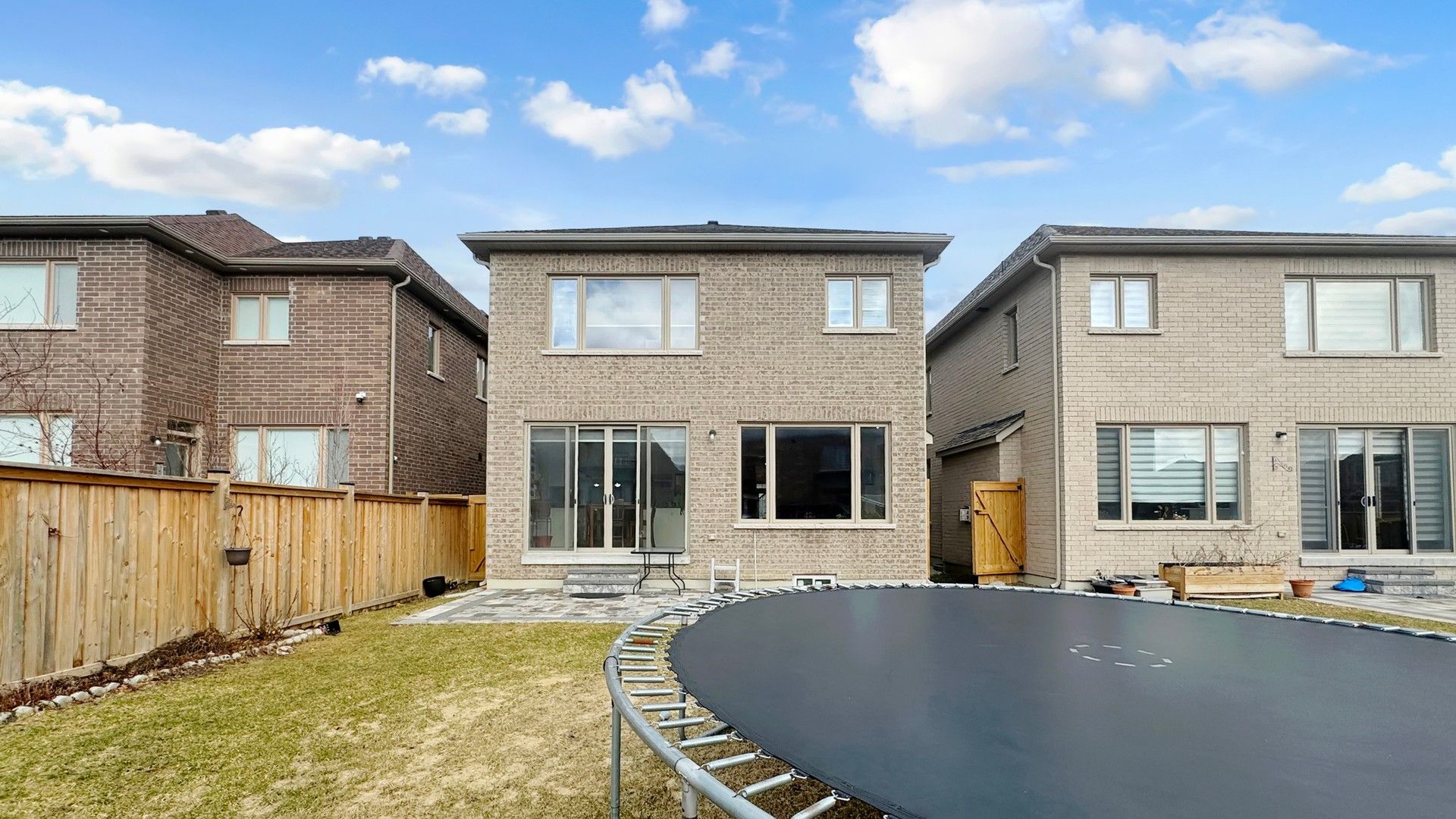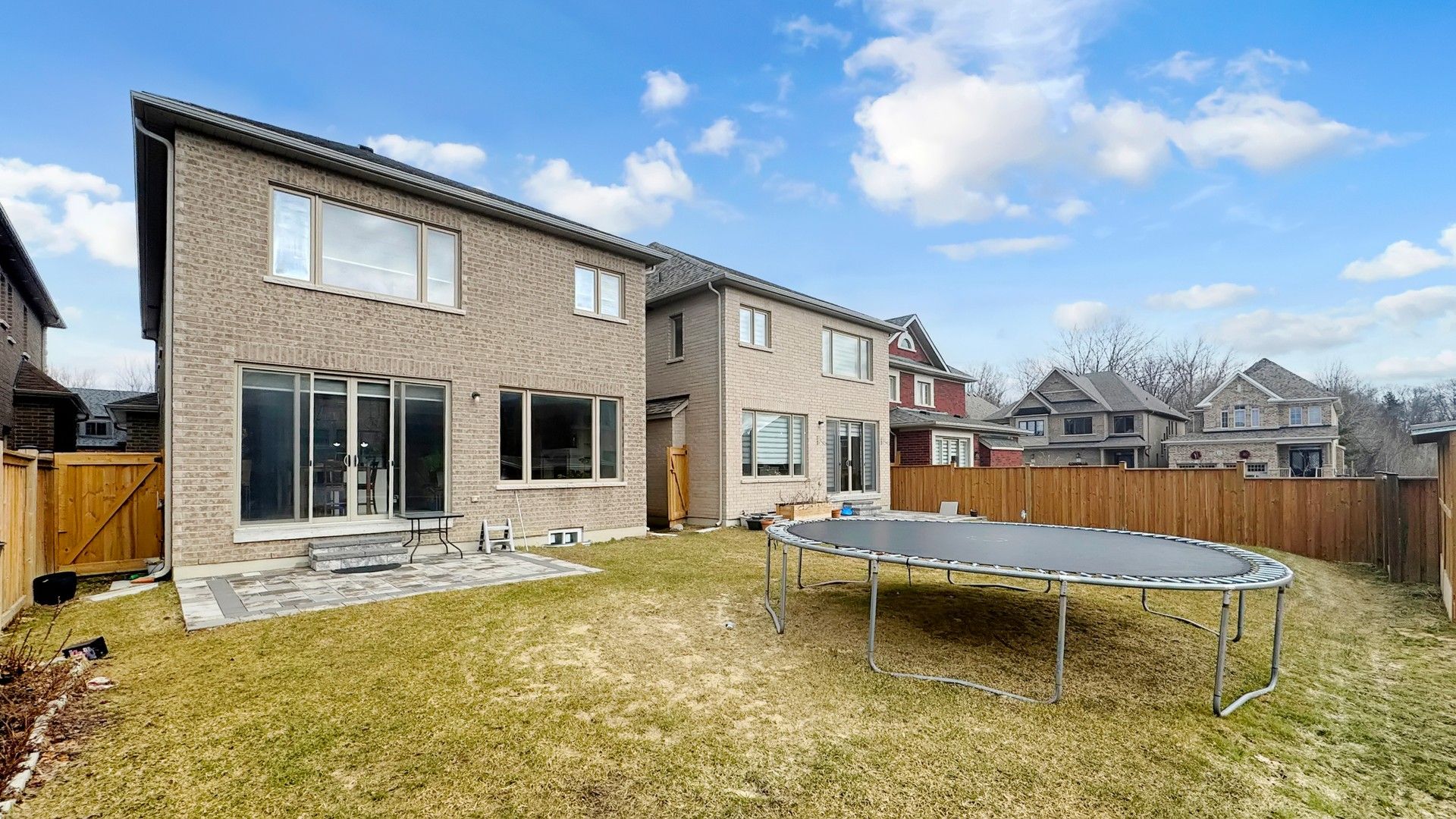 • Private backyard oasis with a custom stone patio for outdoor enjoyment.