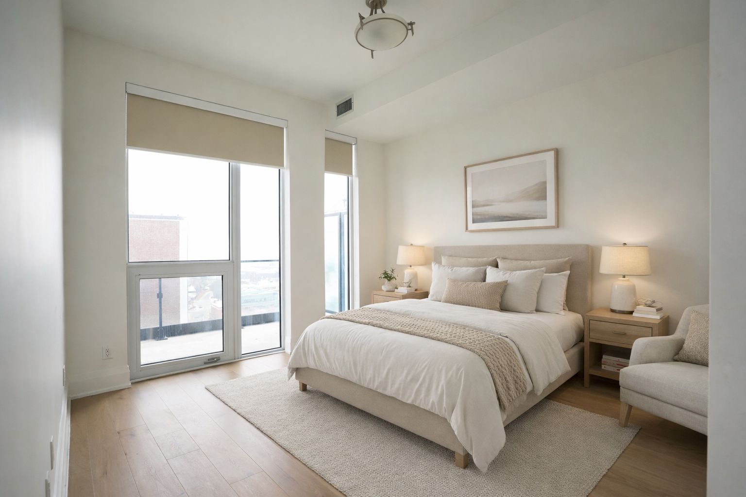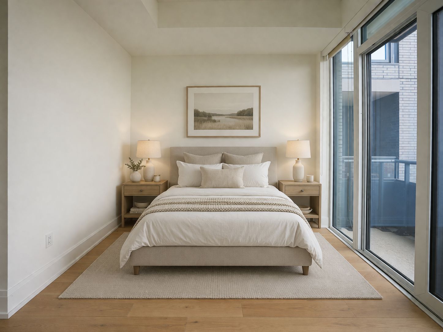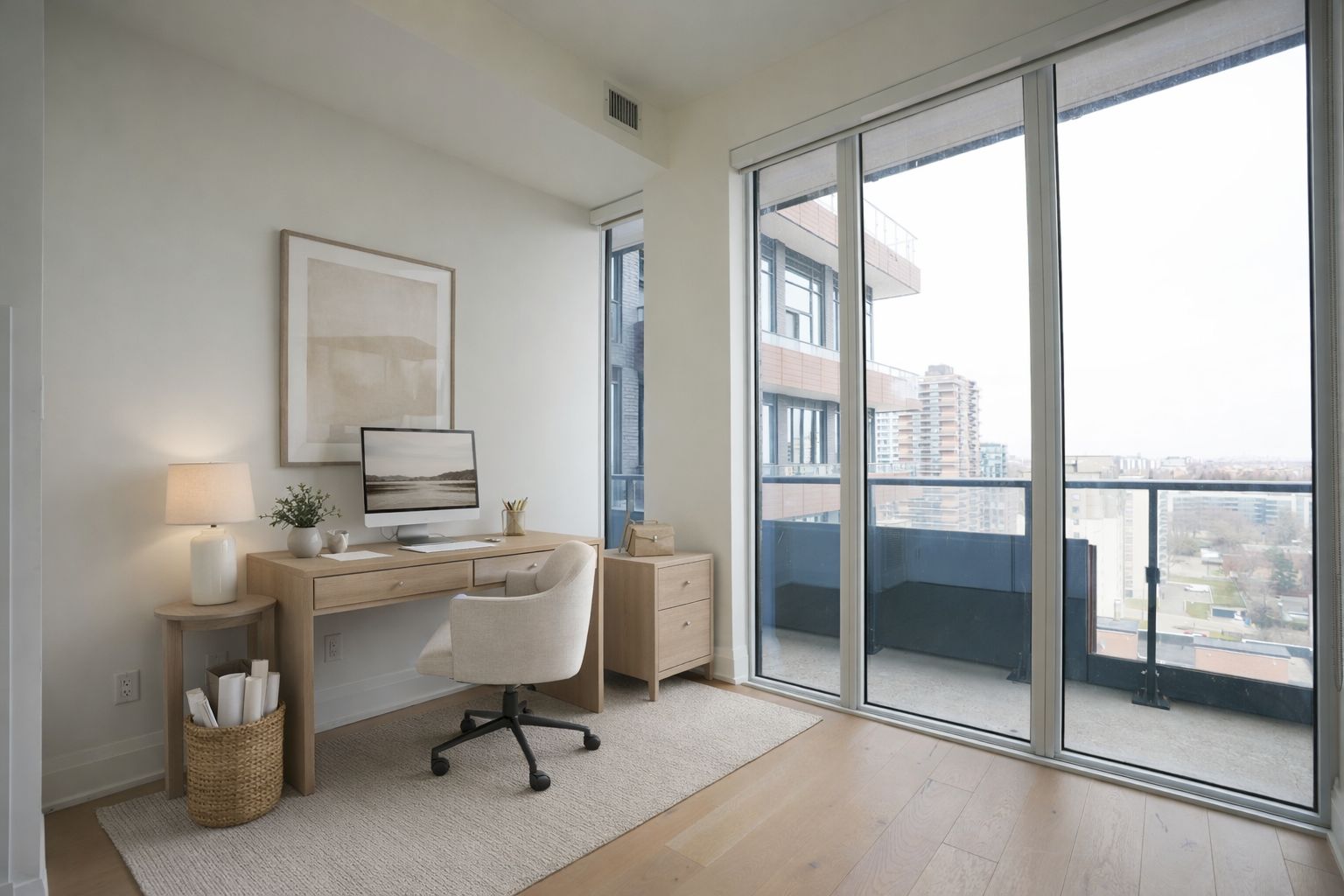 • Two spacious bedrooms plus a versatile den for office or guests.