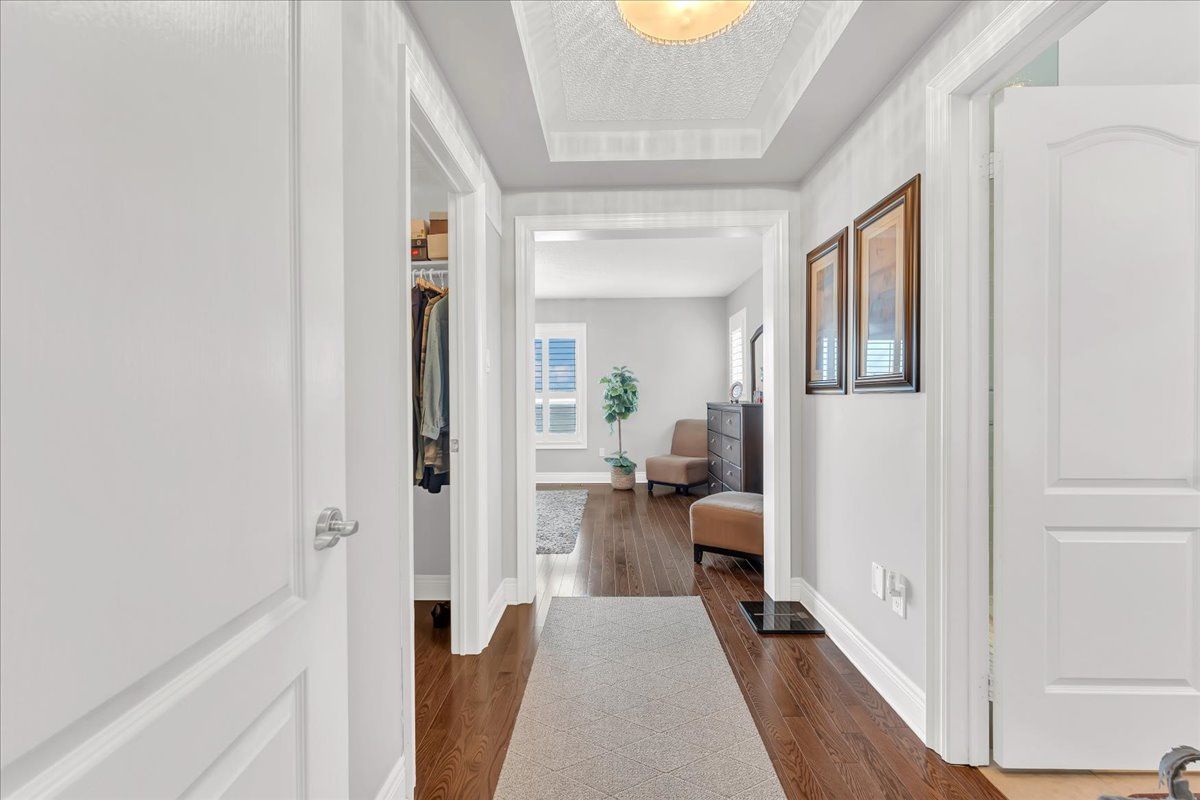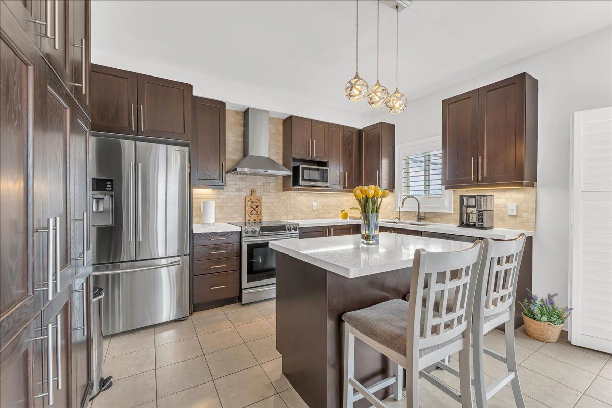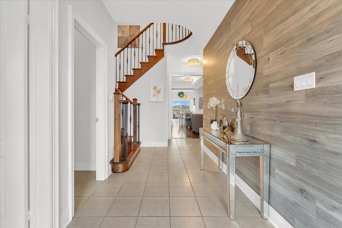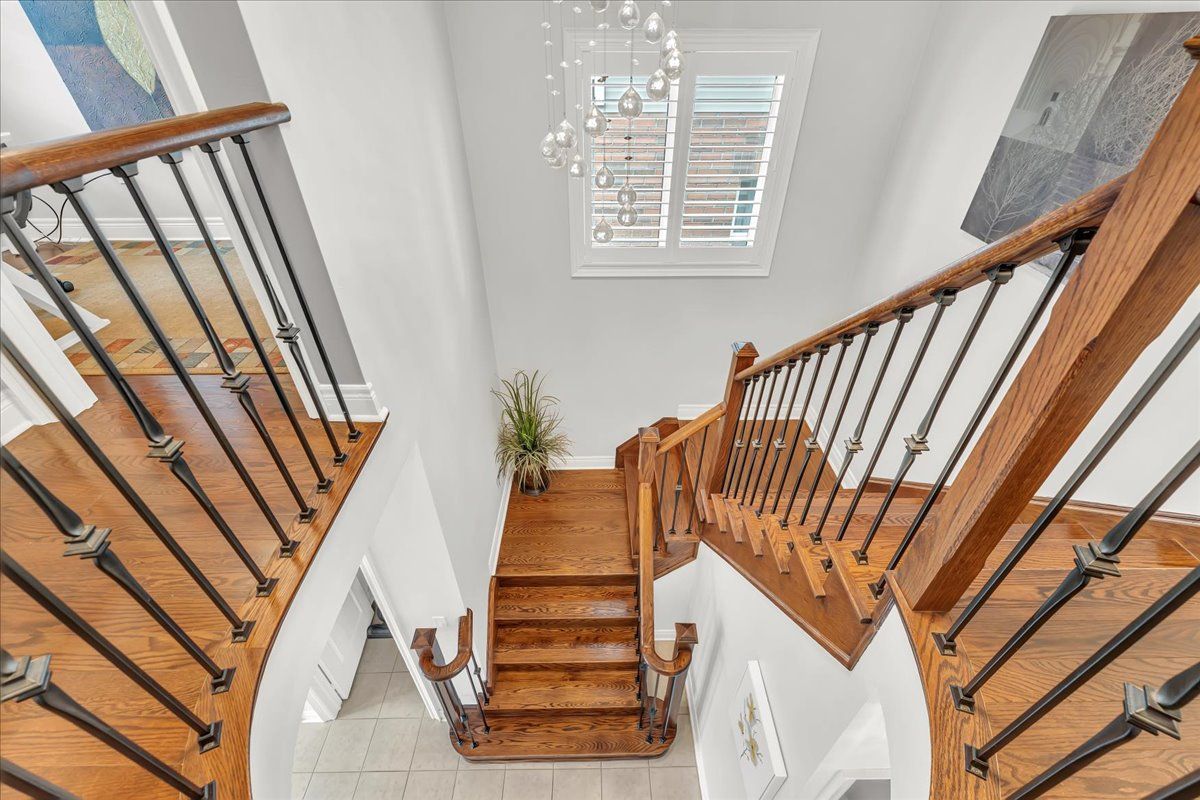 Stunning 2015 summit model with high-end craftsmanship and thoughtful design throughout. Enter through double doors into a grand foyer with ceramic tile, coat room and a dramatic wrought-iron staircase. The open main level offers luxurious living - gleaming hardwood floors, formal dining room, separate living room with gas fireplace, and an elegant chef's kitchen with quartz countertops, center island, high-end stainless appliances, ceramic flooring, custom lighting and a bright breakfast area. Large oversized windows flood the home with brilliant natural light. Primary suite is a true retreat with rich hardwood floors, an extra-large window provides an abundance of natural light and a luxurious 5-piece ensuite with soaker tub & glass shower. Additional bedrooms feature hardwood floors, generous closets and abundant light. Three full bathrooms provide convenience for family and guests. Outdoor living is exceptional: fully fenced yard, no rear neighbors, and striking double-decker timbered deck - perfect for entertaining and serene privacy. Beautifully finished walk-out lower level adds flexible living space for relaxation or recreation. Key features- built 2015 by reputable builder; upgraded finishes throughout- luxurious main-level living: hardwood & ceramic floors, formal dining, separate living room- chef's kitchen: quartz counters, high-end s/s appliances, custom lighting- breakfast area with w/o access to a large sunlit deck- primary bedroom with large 5-pc ensuite- 3 full bathrooms- fully finished walk-out basement- fully fenced backyard, double-decker timbered deck, no rear neighbors- grand foyer with ceramic tile and wrought-iron staircasethis summit model delivers "wow" finishes at every turn - move-in ready and built for elegant everyday living.