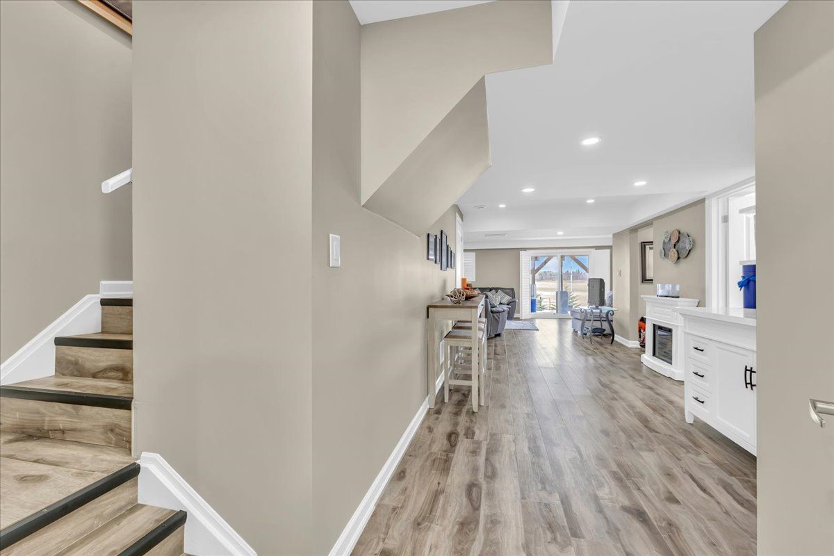 • Open main level with luxurious hardwood floors and a gas fireplace.