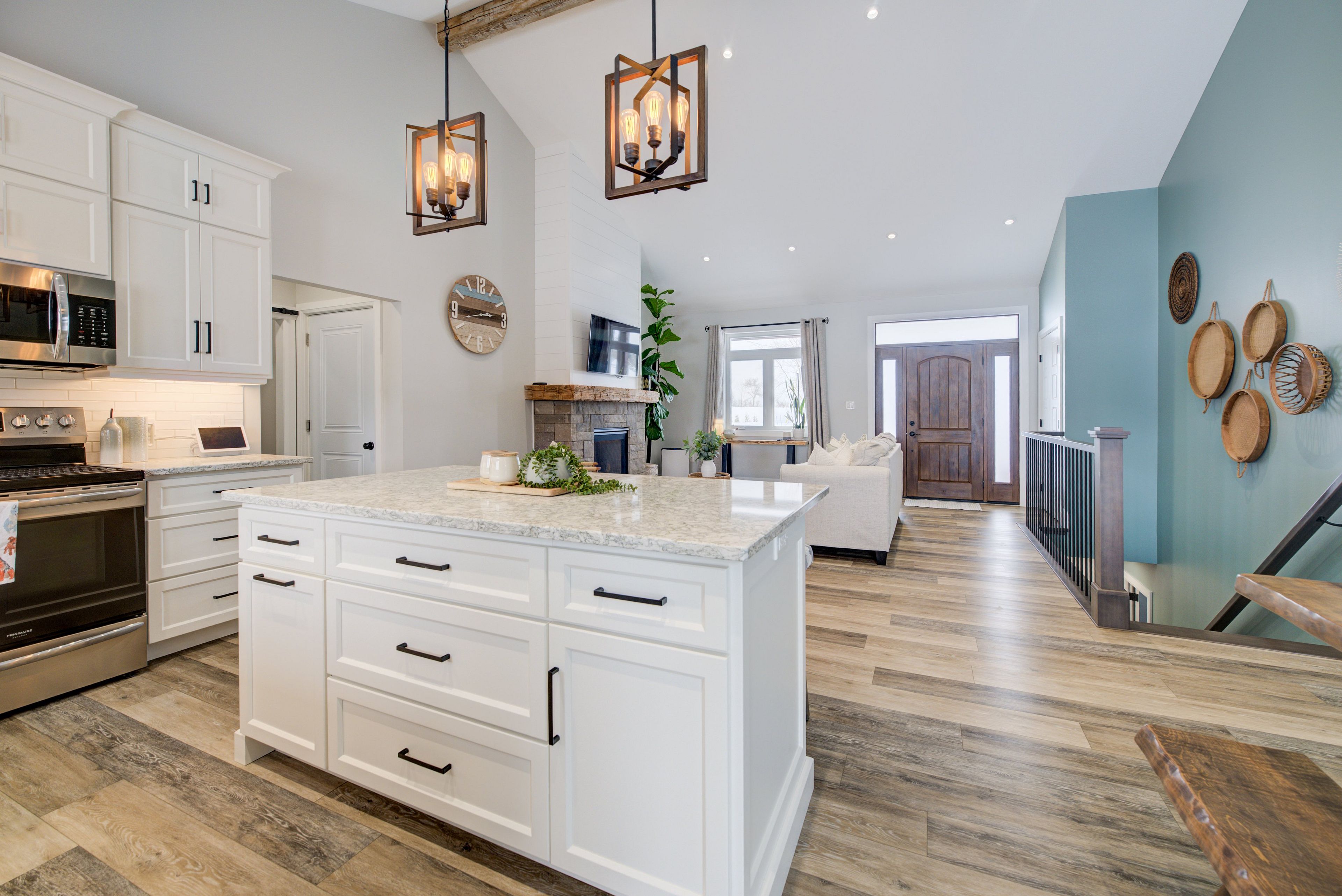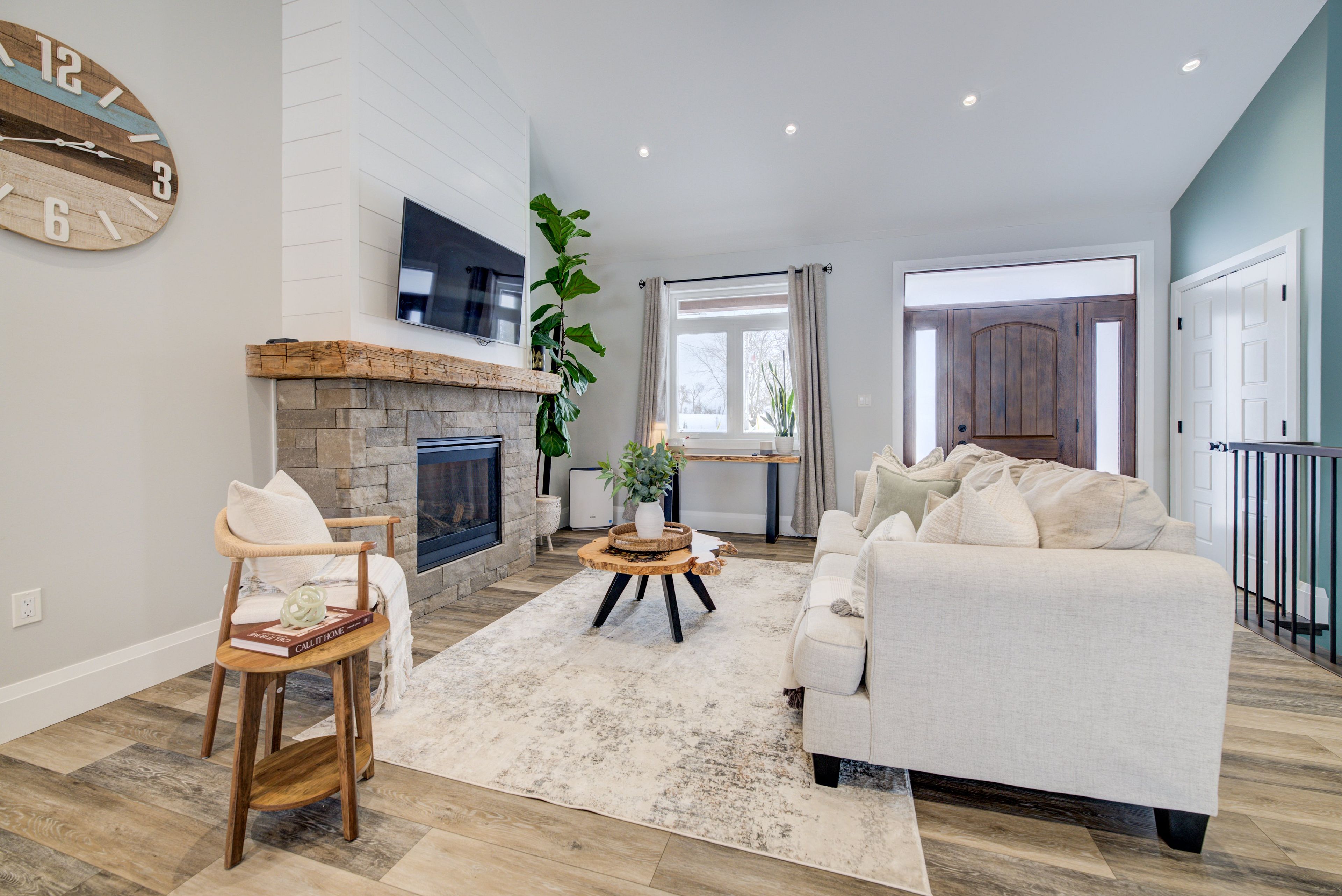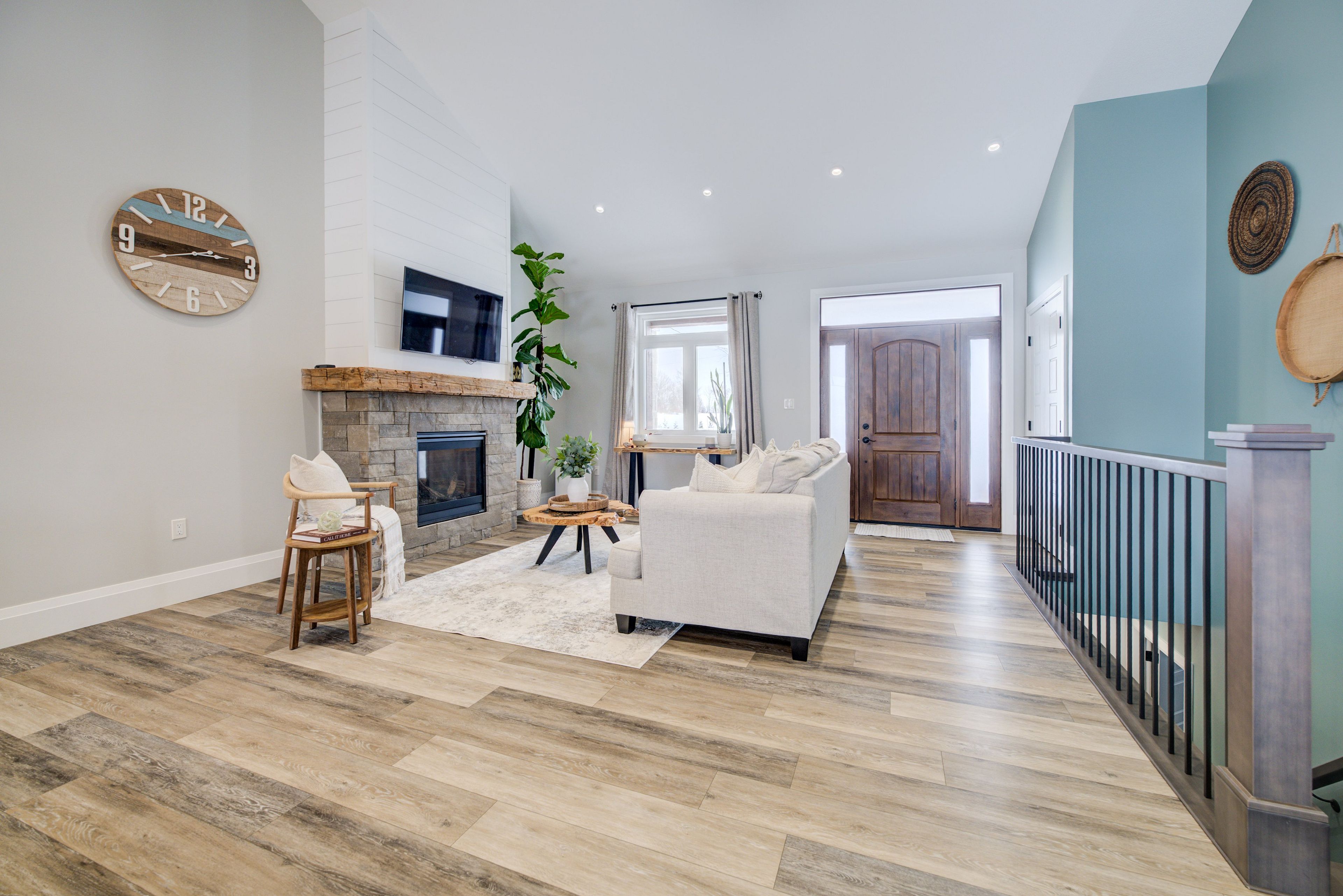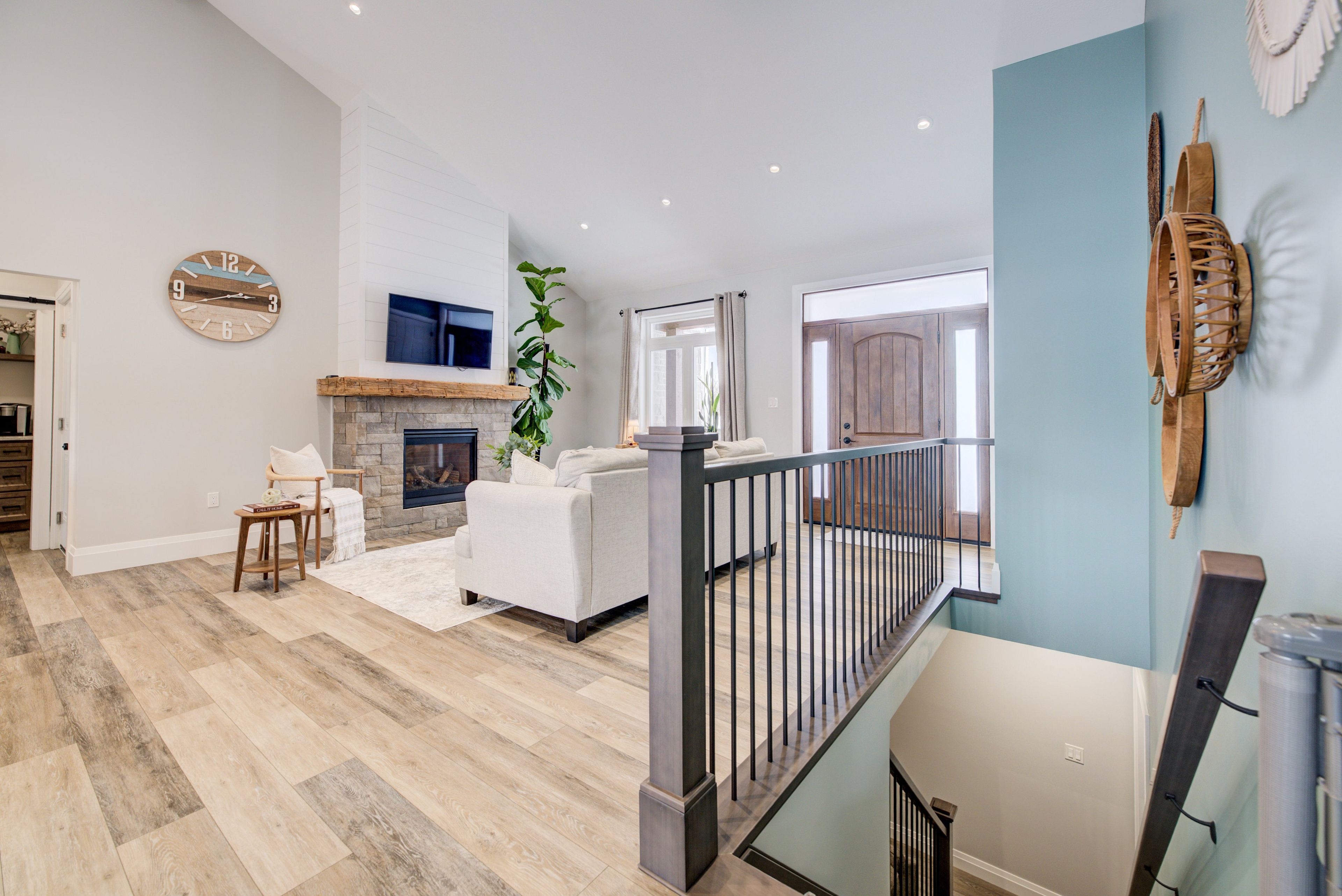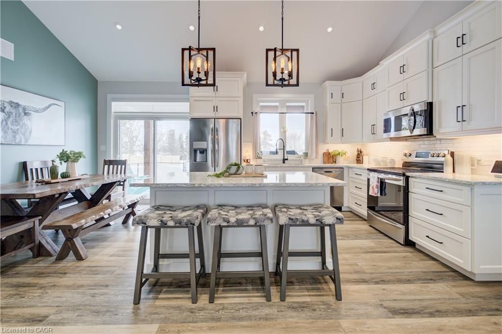1/2 acre lot!!! Welcome to this stunning 5-year-old custom-built home perfectly situated on an expansive half-acre lot in the small, quiet town of holyrood just minutes from kincardine and its beautiful sandy beach. Located with a quick commute to bruce power the areas main employer, this property offers the ideal balance of peaceful living and everyday convenience. The home's exterior impresses with "wow".... With timber accents, stone detailing, and thoughtfully placed exterior lighting, creating exceptional inviting curb appeal. An oversized two-car garage provides ample space for vehicles, storage, and hobbies not to mention the 6 exterior parking spaces for toy storage like rv's, sleds or boat storage!. Inside this custom beauty, no expense has been spared. Soaring cathedral ceilings, quartz countertops, a stone fireplace and carpet free throughout the home this bright open-concept layout set the stage for modern living. The well-designed modern kitchen with stainless appliances, seamlessly flows into the main living space, and is a dream for both cooking and entertaining, the spacious primary bedroom retreat features a large walk-in closet and a massive, light-filled ensuite, complete with a walkout to the covered back deck. Finally, find on this level a further two bedrooms that are both bright and roomy and placed away from the primary suite adding to additional privacy for all. The fully finished lower level offers incredible versatility, featuring an additional bedroom (ideal for guests, a home office, or gym) and an expansive family/entertaining spaces ready to enjoy. Outside, the huge lot with no direct rear neighbours offers privacy and endless potential for future development-whether you envision gardens, play areas, or outdoor entertaining spaces or perhaps that shed to house all your summer/winter toys!. This exceptional property combines quality craftsmanship, thoughtful design, and an unbeatable location-an opportunity not to be missed.