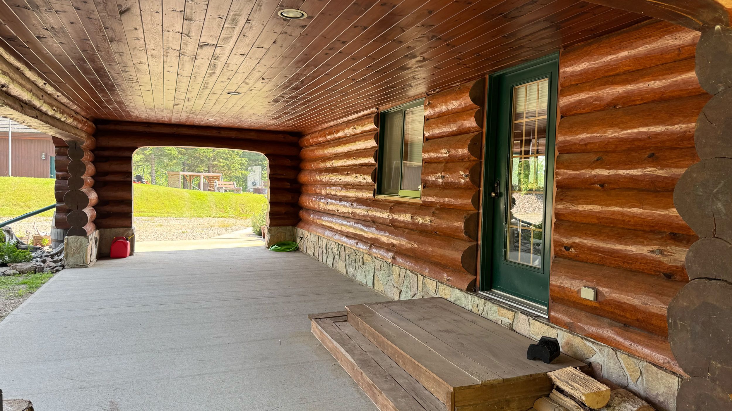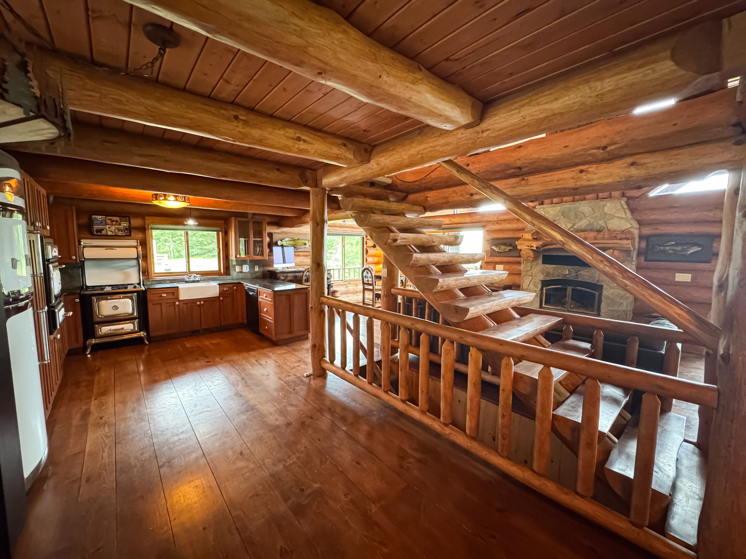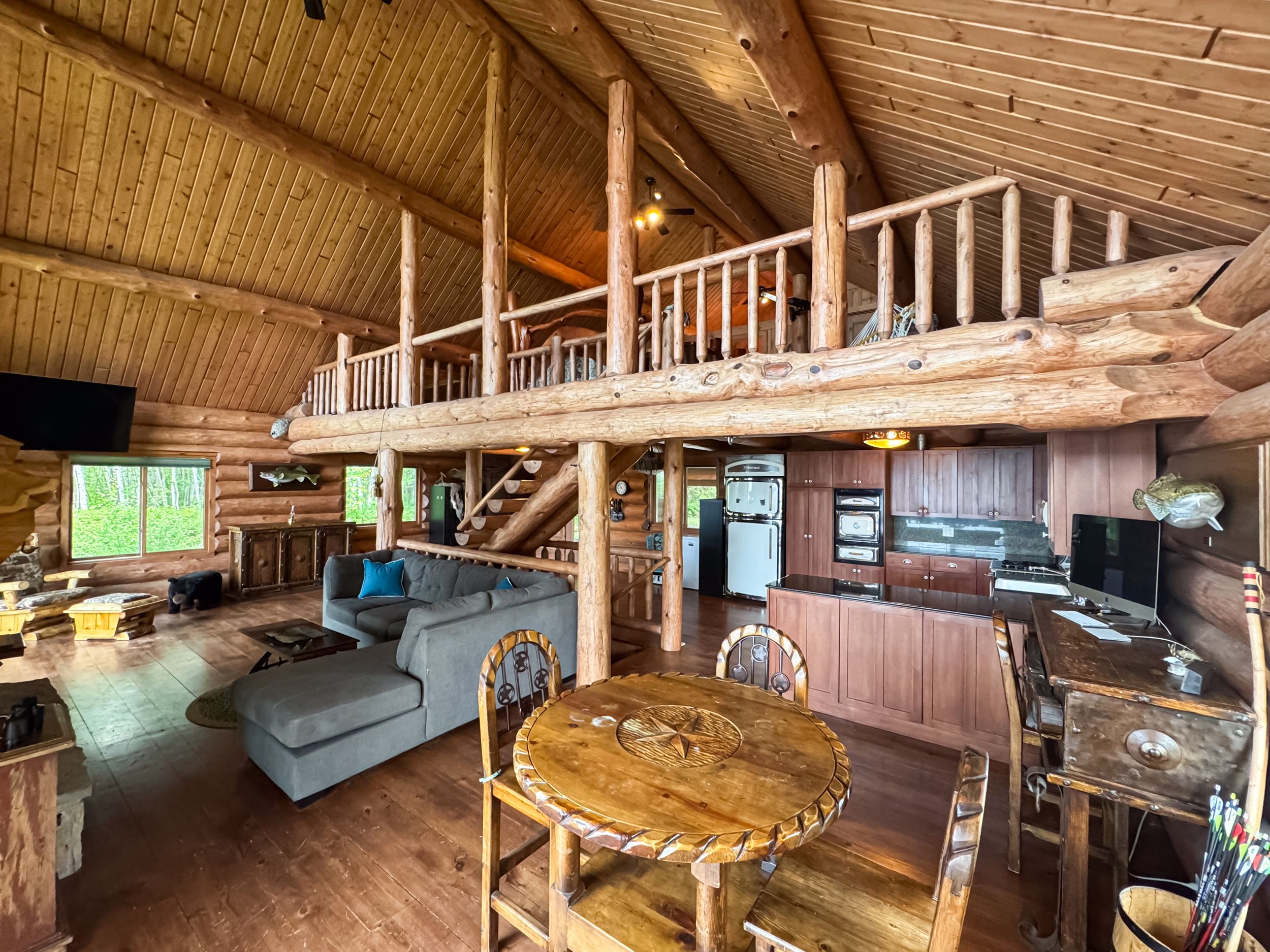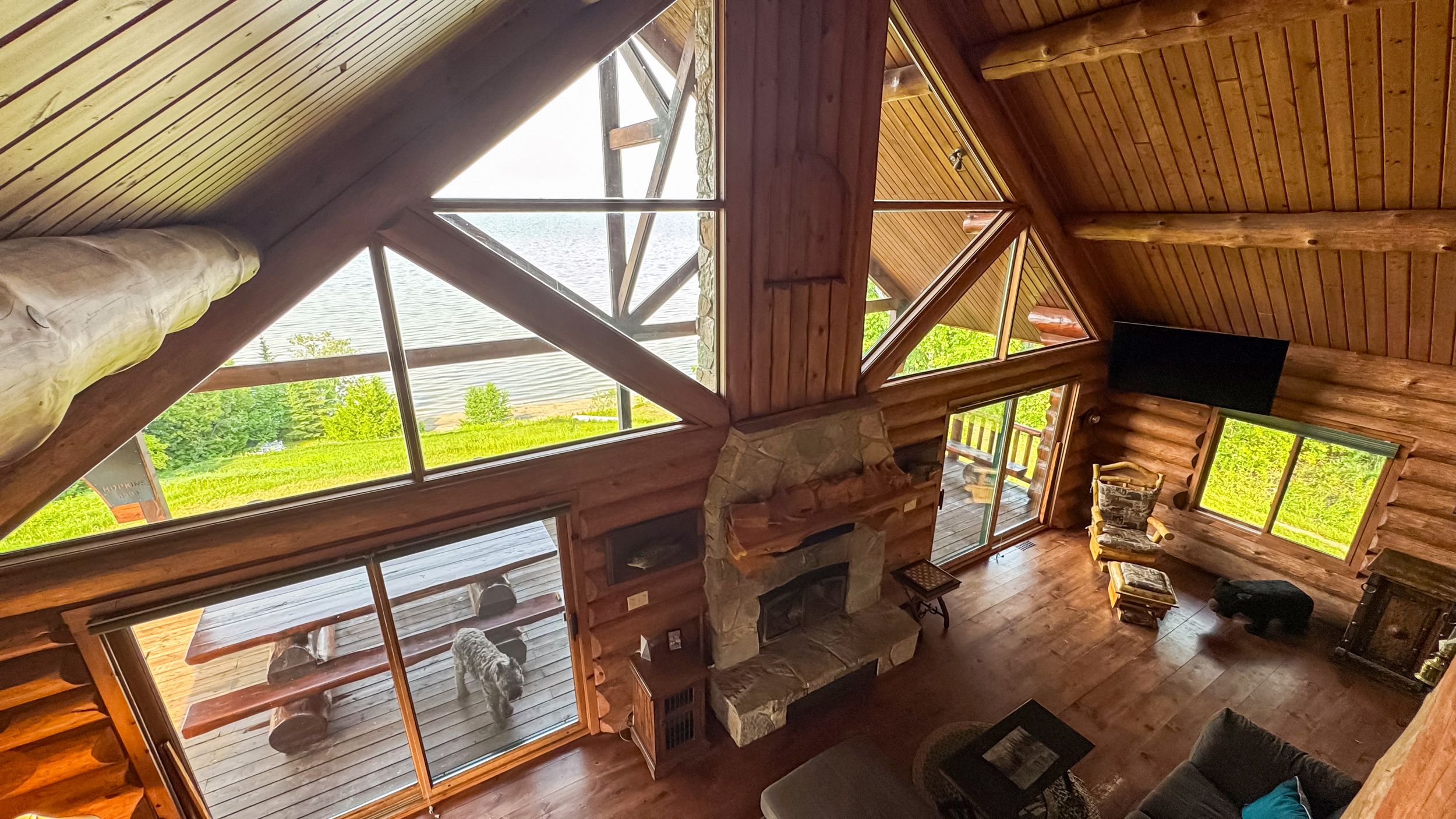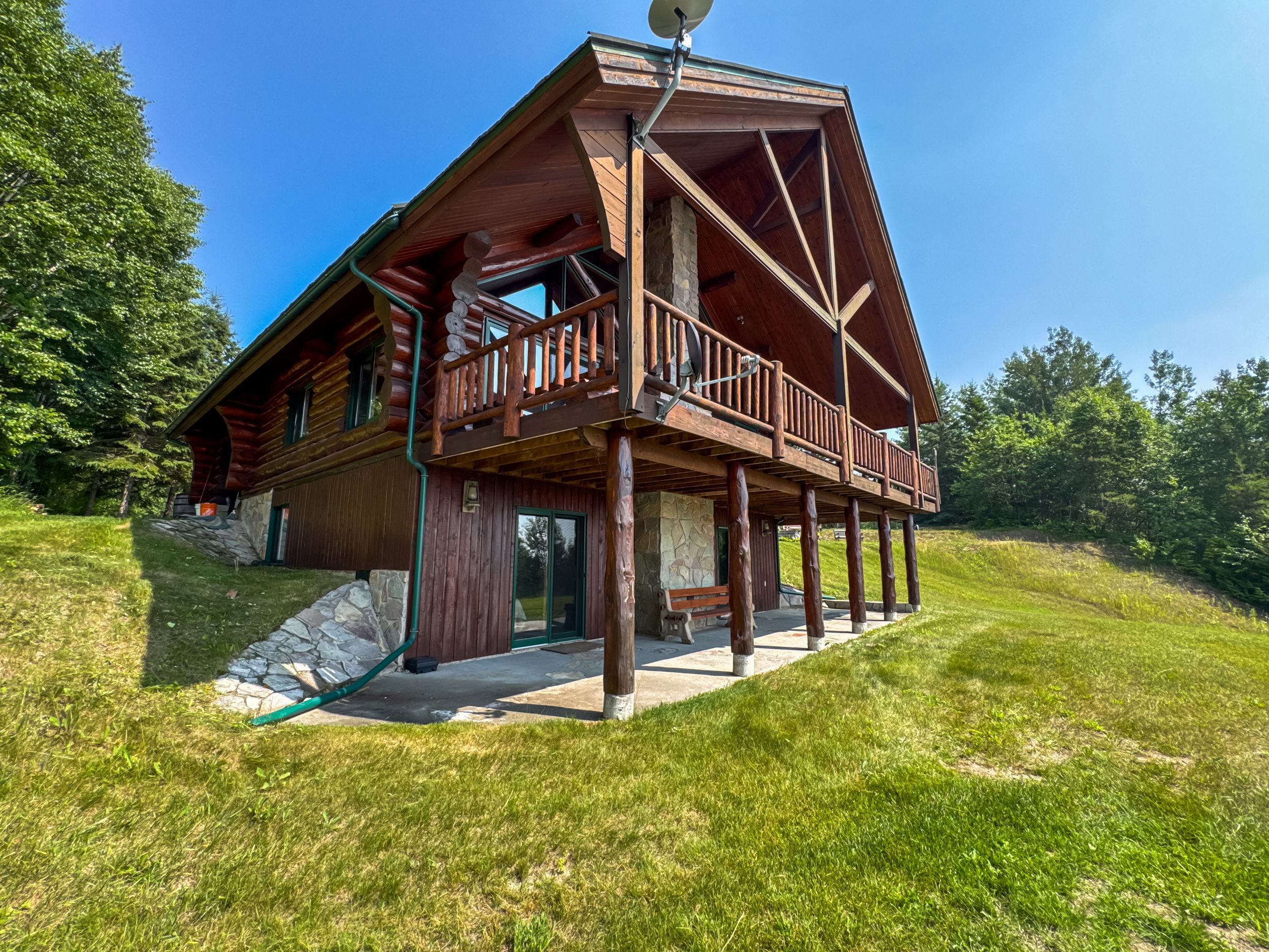 • Luxury off-grid log home on 1.4 acres with sandy beachfront access.