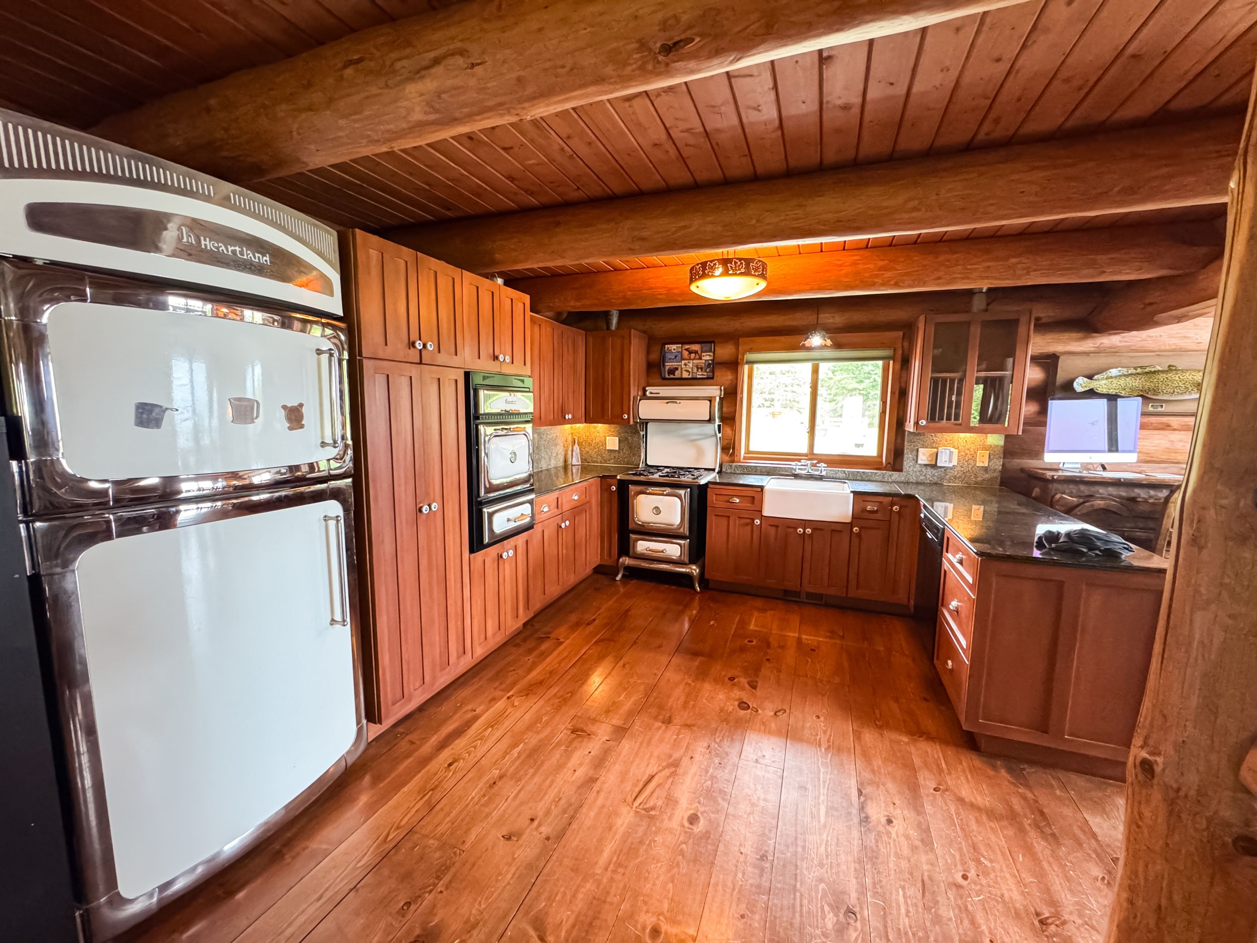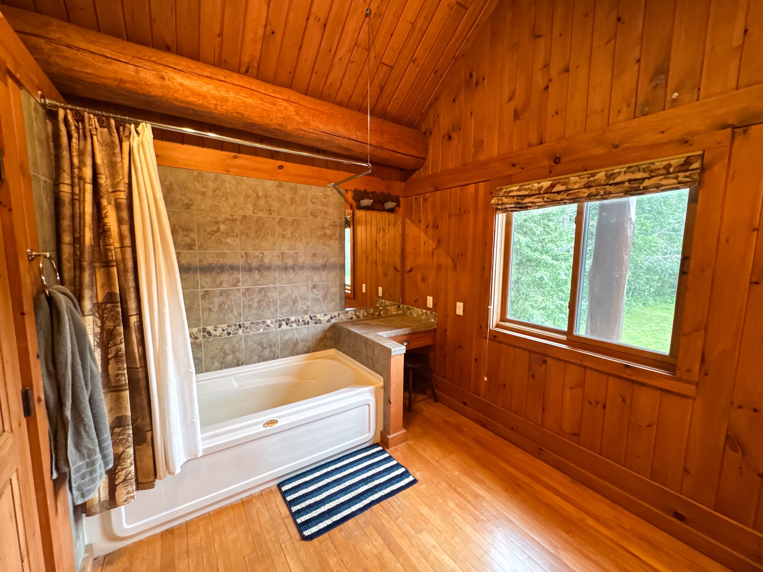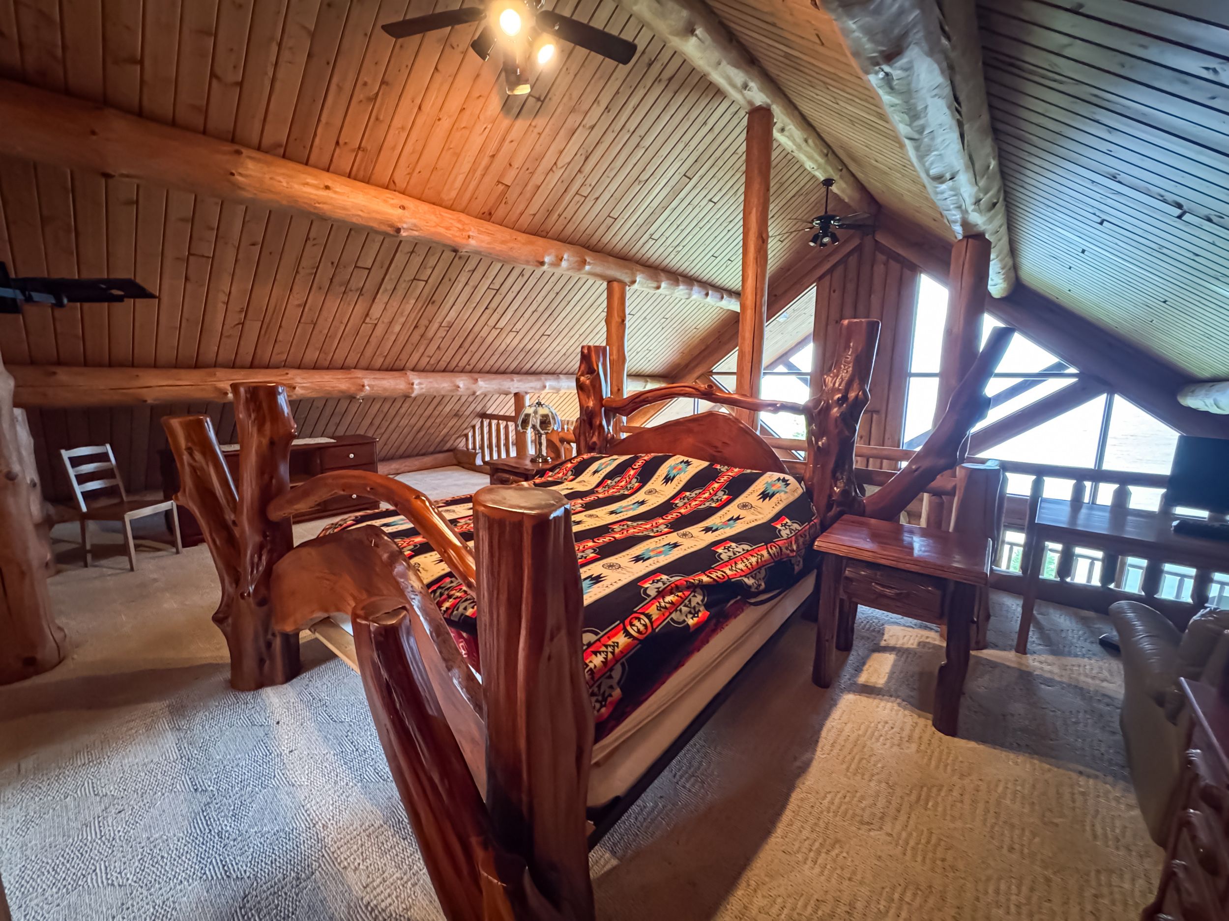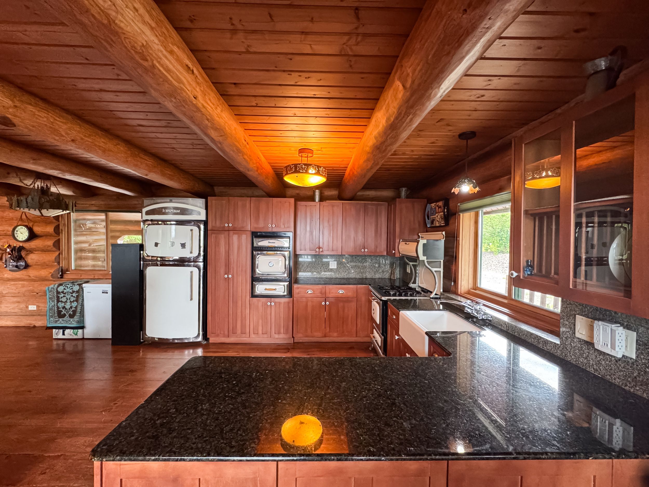 • Luxury off-grid log home on 1.4 acres with sandy beachfront access.