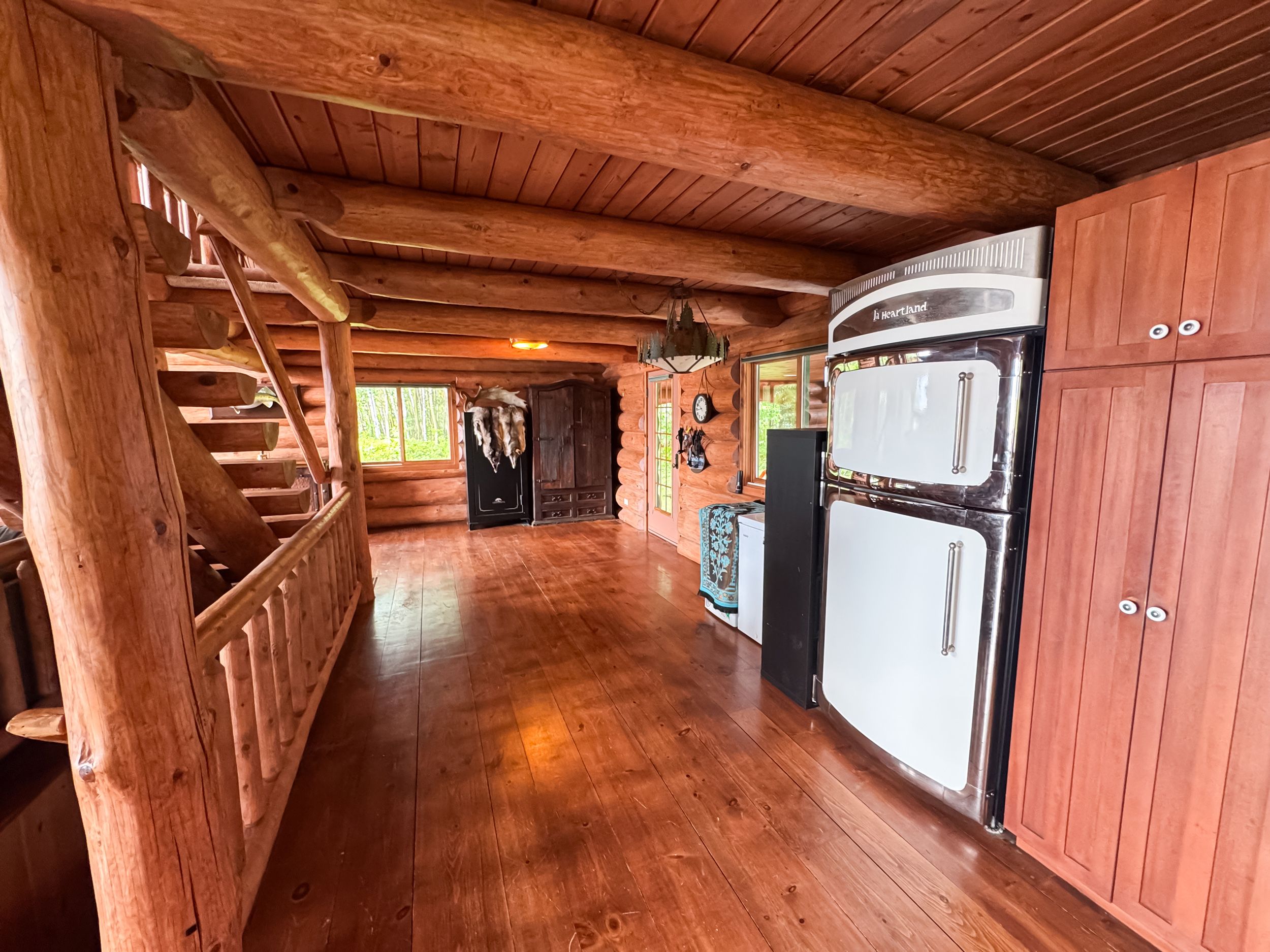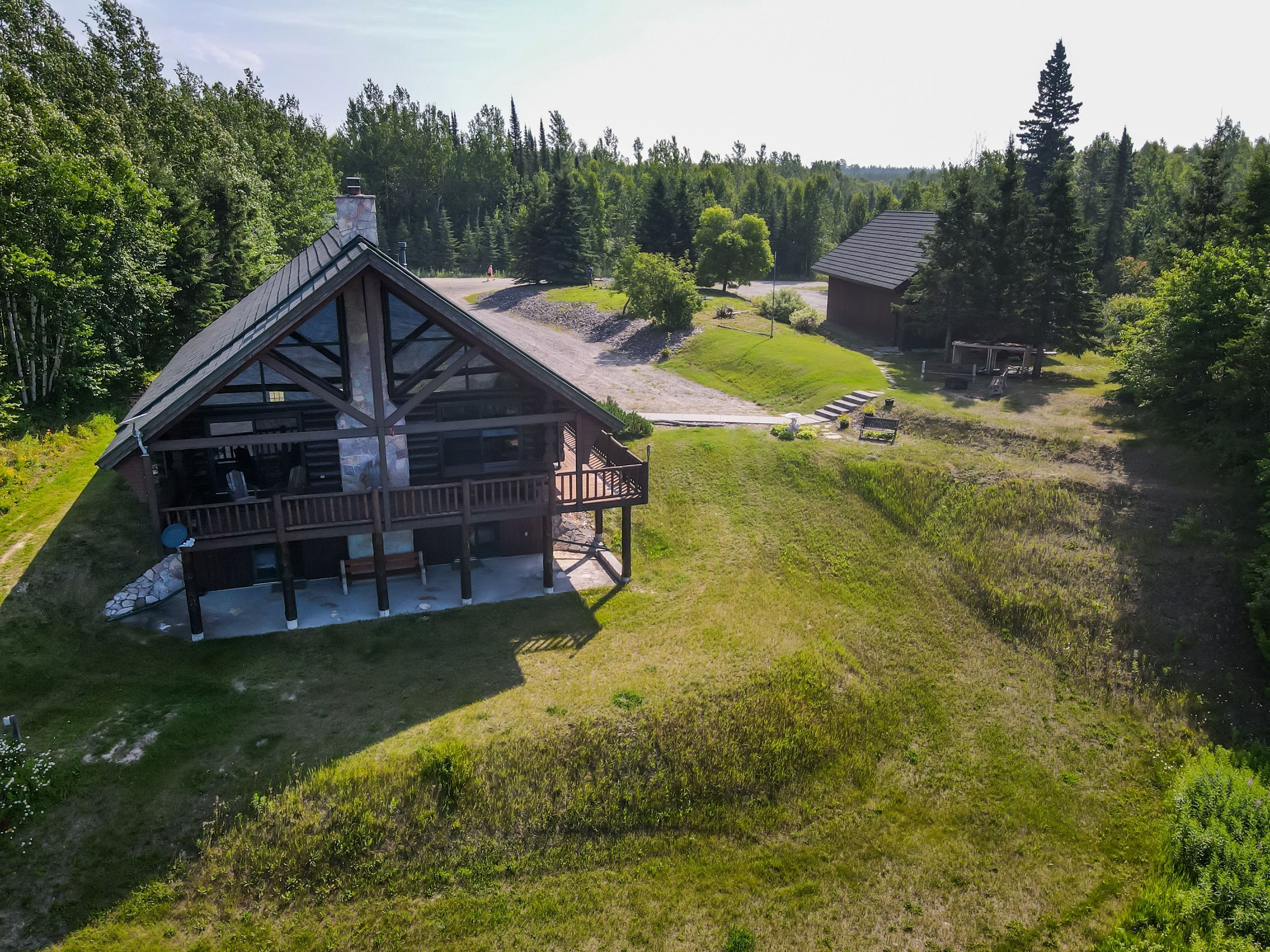 Seize the exceptional quality of life that comes with a luxury, off-grid lifestyle surrounded by natures embrace. This 4-bedroom, 3-bath custom crafted log-home exemplifies true northern ontario livingset on a 1. 4 acre clearing with nearly 150 of deeded sandy beachfront & sweeping, unobstructed views of lake nipigon. Bordering thousands of acres of crown land, its where pristine waters meet towering pines, and world-class freshwater fishing meets premier hunting, endless trails, & rugged shorelines to explore. Welcome to 21 peter drive, a one-of-a-kind estate built for year-round living, powered by a brand-new solar system (2025) with 2x 14kwh lithium batteries, & a 3. 0l perkins generator for backup (no utility bills!). The striking log & stone façade is topped with a lifetime metal roof that dramatically overhangs the jaw dropping covered porch. Inside, open-concept living space w/ soaring great room ceilings & floor-to-ceiling lake-facing windows command your attention. The maple kitchen boasts granite counters & premium heartland appliances. A stone fireplace with a handcrafted mantel anchors the living space, flanked by sliding glass doors to the porch. The loft-style primary suite overlooks the lake, featuring a hand-made log bed frame, dual walk-in closets, & a 4pc ensuite with jacuzzi tub & stone tile. The lower level is the gold mine! Housing 3 additional bedrooms, 2 of which feature walkout patios - perfect for savouring every wave & sunset. The 3rd bedroom has an ensuite bathroom, while an additional full bathroom w/ laundry completes the basement living space. A utility room houses the forced-air furnace, water filtration, & hot water tank. Outside, a uniform detached 26x48 shop w/ in-floor radiant heating, a 12 bay door & loft storage. Between them a custom 10 grizzly bear statue stands guard - a symbol of the home's craftsmanship & harmony with the wilderness. This custom-built lakefront estate truly is where luxury, nature, and sustainability meet !