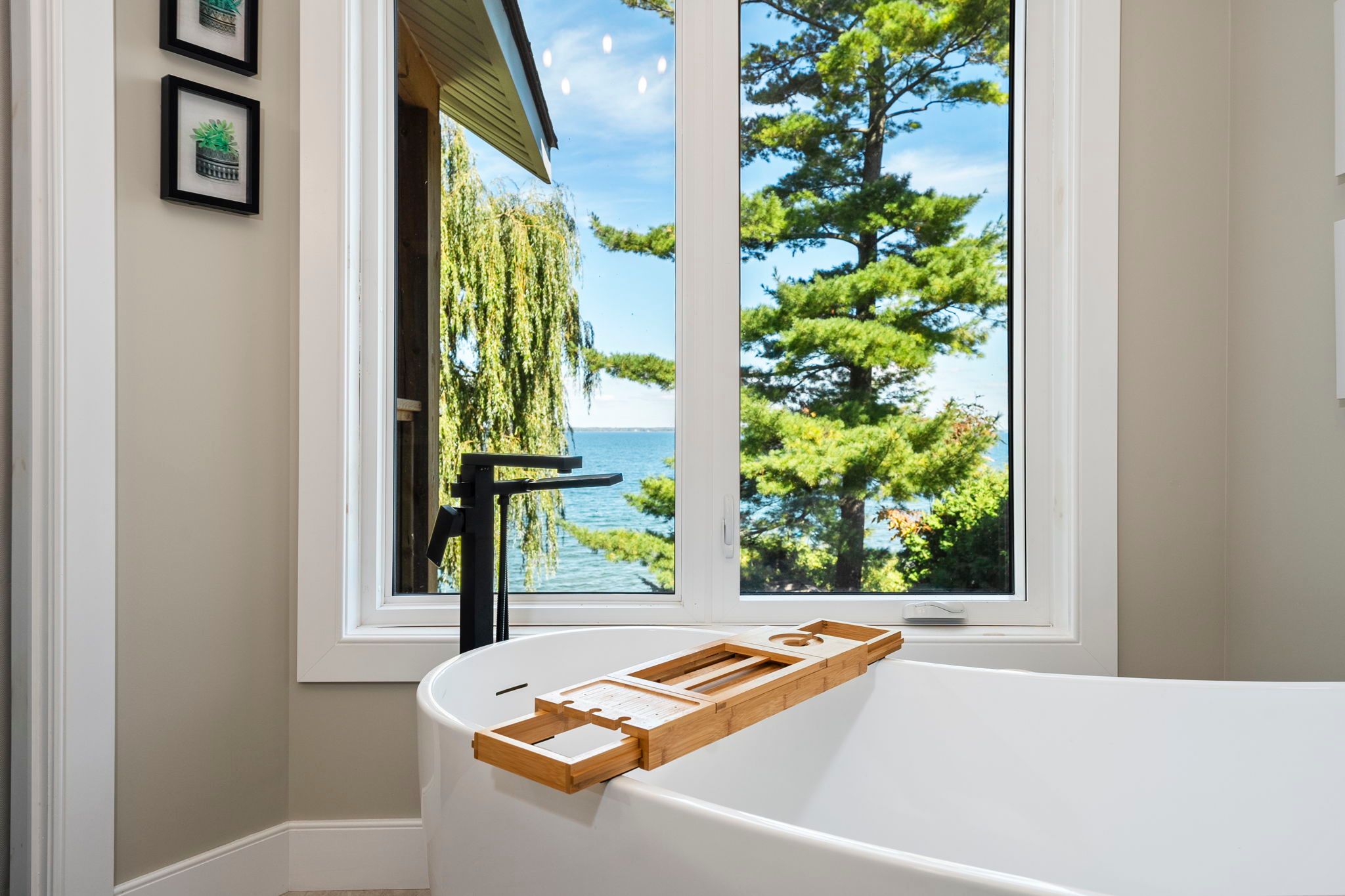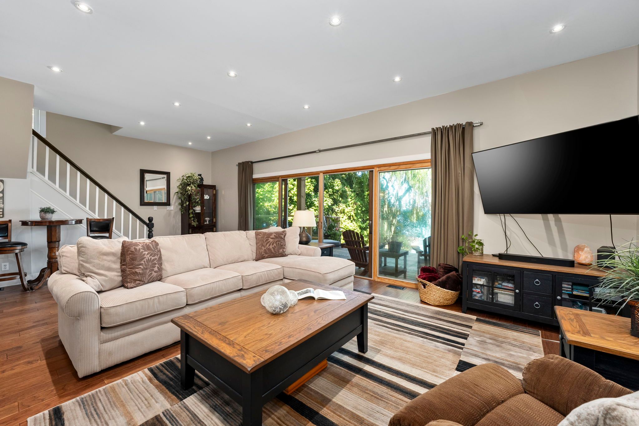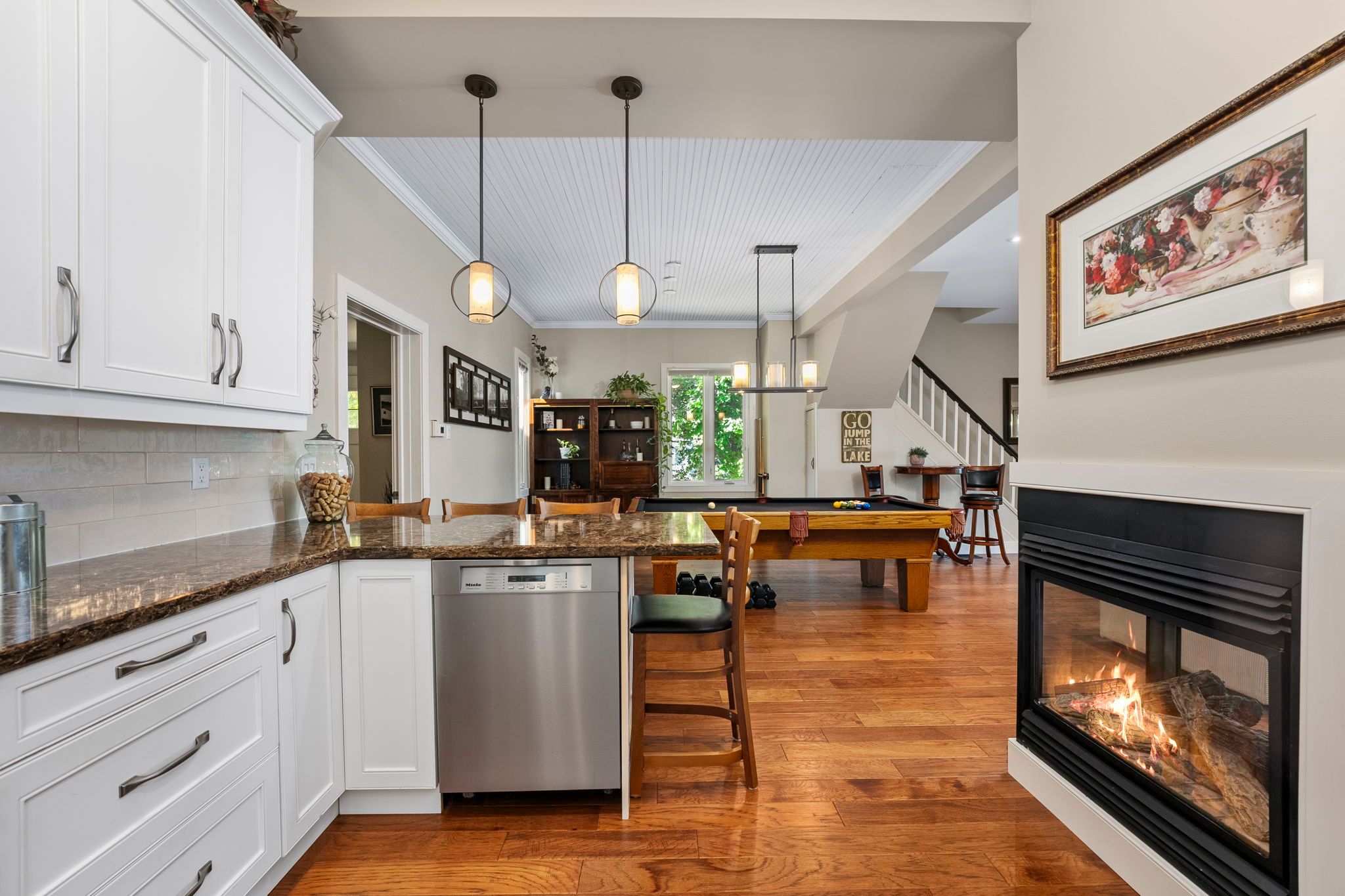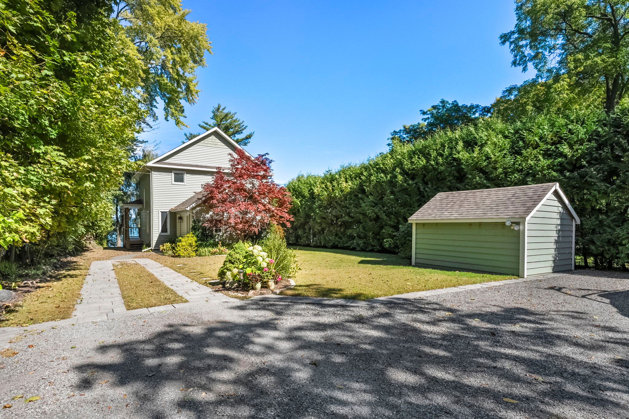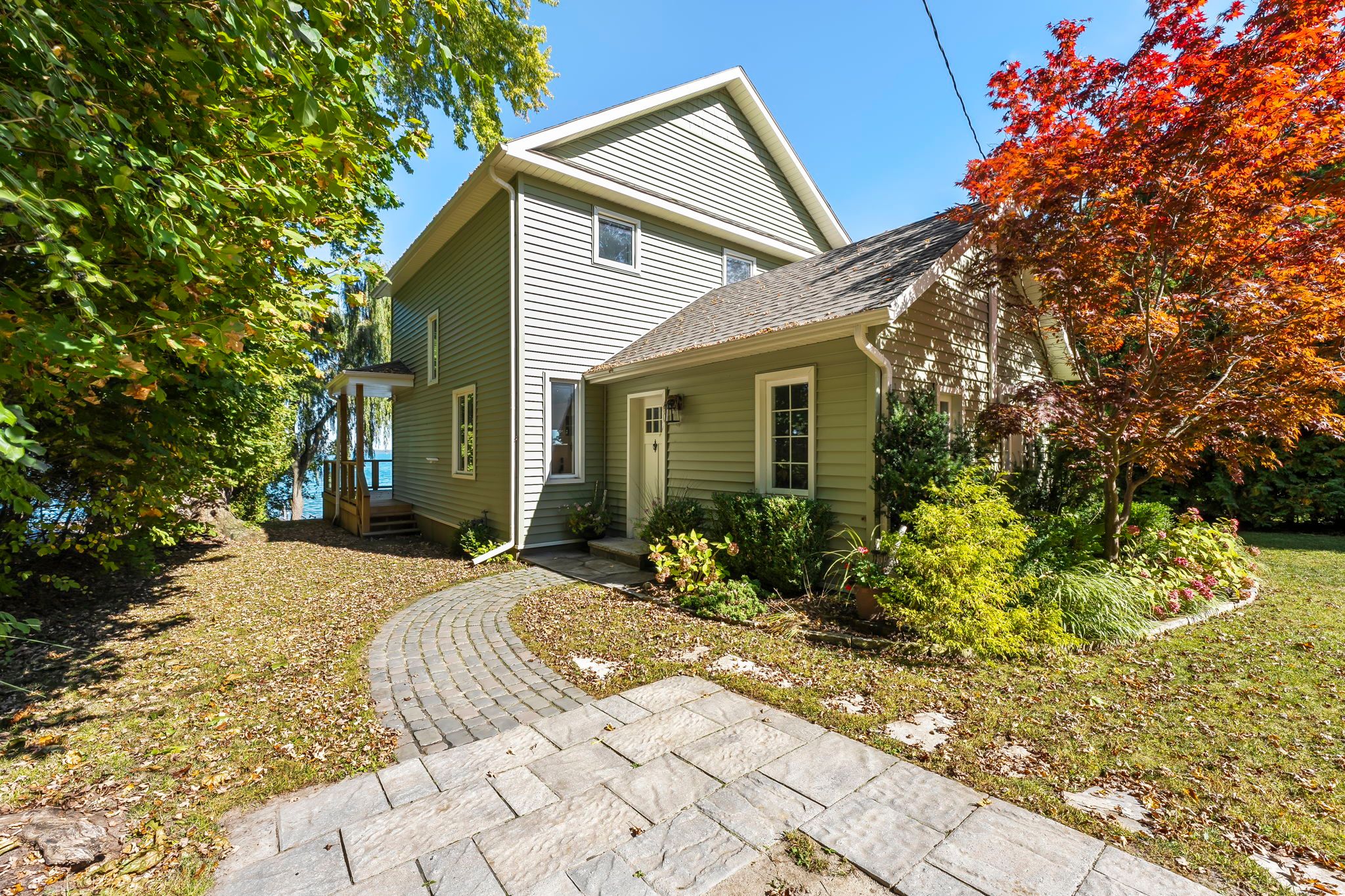 Welcome to your haven of tranquility, where 60 feet of pristine shoreline meets the calm, crystal-clear waters of lake simcoe. From the moment you step inside, you'll be captivated by the expansive windows and glass sliding doors that frame breathtaking, panoramic lake views, seamlessly connecting indoor and outdoor living. The main floor dazzles with an open-concept great room featuring a peninsula gas fireplace, engineered hand-scraped hardwood flooring, and pot lights, creating an inviting and warm atmosphere. The chef's kitchen is a true showstopper, boasting cambria quartz countertops, a breakfast bar, pass-through, gas range, and sleek stainless-steel appliances-perfect for entertaining. A main-floor office with convenient yard access and a three-piece bathroom enhances functionality, complemented by a separate utility room/pantry. Step outside and unwind on the new deck with glass railings or seek comfort under the covered porch, where you can relax and take in the soothing lake views and sounds of nature. Gather with friends and family around the stone fire pit for cozy evenings under the stars. The complete second-storey renovation, finished in 2023, offers a luxurious retreat with a primary suite featuring a floor-to-ceiling, stone-faced gas fireplace, vaulted ceilings, & a large private balcony overlooking the serene lake-an idyllic spot for morning coffee. The spa-like semi-ensuite bath pampers you with a deep soaker tub with water views, heated floors, and elegant five-piece fixtures. The convenience of second-floor laundry, along with a spacious dressing room or flex space, adds to the thoughtful layout. Two additional sun-filled bedrooms complete the upper level, offering ample space for family or guests. With parking for twelve vehicles and ample room for a future garage, this exquisite waterfront property is fully equipped to host family, friends, and all your year-round adventures. Don't miss your chance to own this exceptional lakeside retreat!