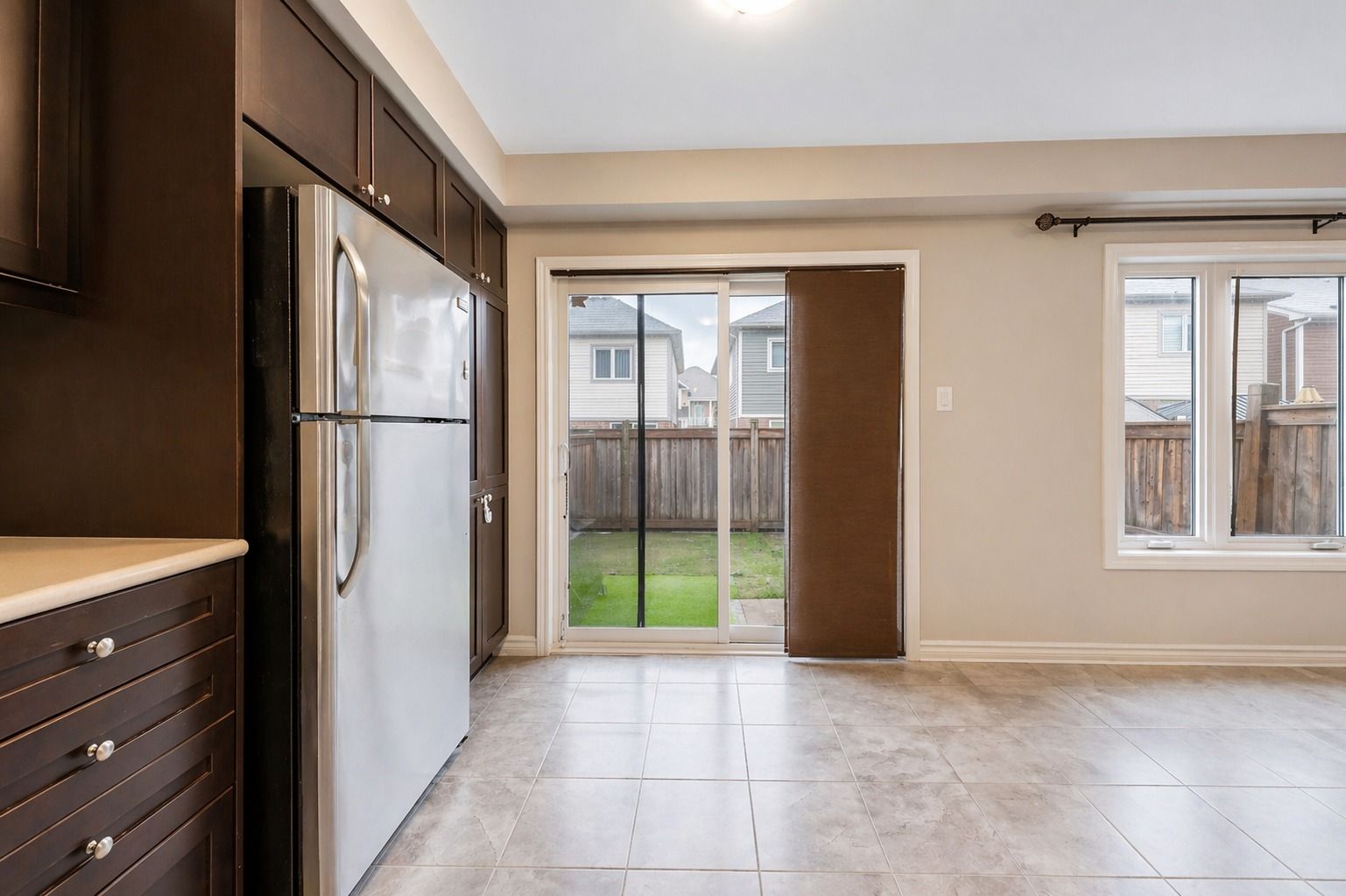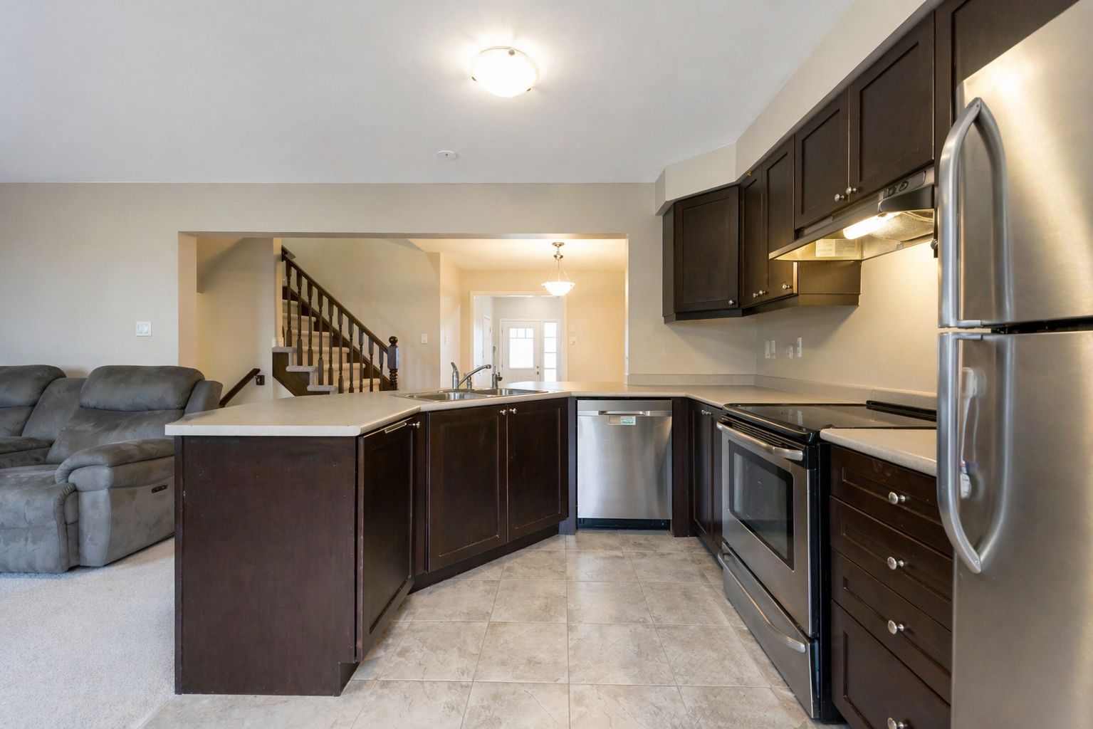 Welcome to 21 postmaster drive, kitchener, located in the highly desirable west wildflowers subdivision, one of the city's most sought-after family-friendly communities. This beautifully built mattamy townhouse with no condo fees featuring 3 spacious bedrooms, 2. 5 bathrooms and single-car garage, ideal for families, first-time buyers or investors. The charming curb appeal highlighted by an oversized covered front porch is the perfect spot to enjoy your morning coffee or unwind in the evening. Step inside to a welcoming foyer that leads into the thoughtfully designed open-concept main floor, complete with impressive interior layout and stylish tile finishes. The spacious living area offers a warm setting for everyday relaxation or entertaining guests, while large windows allow natural light to pour in. Adjacent to the living space is the beautifully designed eat-in kitchen, featuring an abundance of cabinetry, generous countertop space and stainless steel appliances. Whether hosting family dinners or casual gatherings, the adjoining dining area provides the perfect setting. A convenient 2-piece powder room completes the main level. Upstairs, the second floor offers 3 generously sized bedrooms. The expansive primary suite serves as a private retreat, complete with its own ensuite bathroom and large walk-in closets. Two additional bright and spacious bedrooms are complemented by a well-appointed 4-piece main bathroom. The unfinished basement presents endless possibilities and awaits your personal touch. Outside is the fenced backyard with space for gardening or kids to play, host gatherings, bbqs or simply enjoy the outdoors. Located ideally, this exceptional home is within walking distance to the janet metcalfe public school and just minutes from parks, trails, shopping centres, public transit, everyday amenities and quick access to major highways. Offering one complete package, this is an outstanding opportunity that you don't want to miss. Book your showing today!