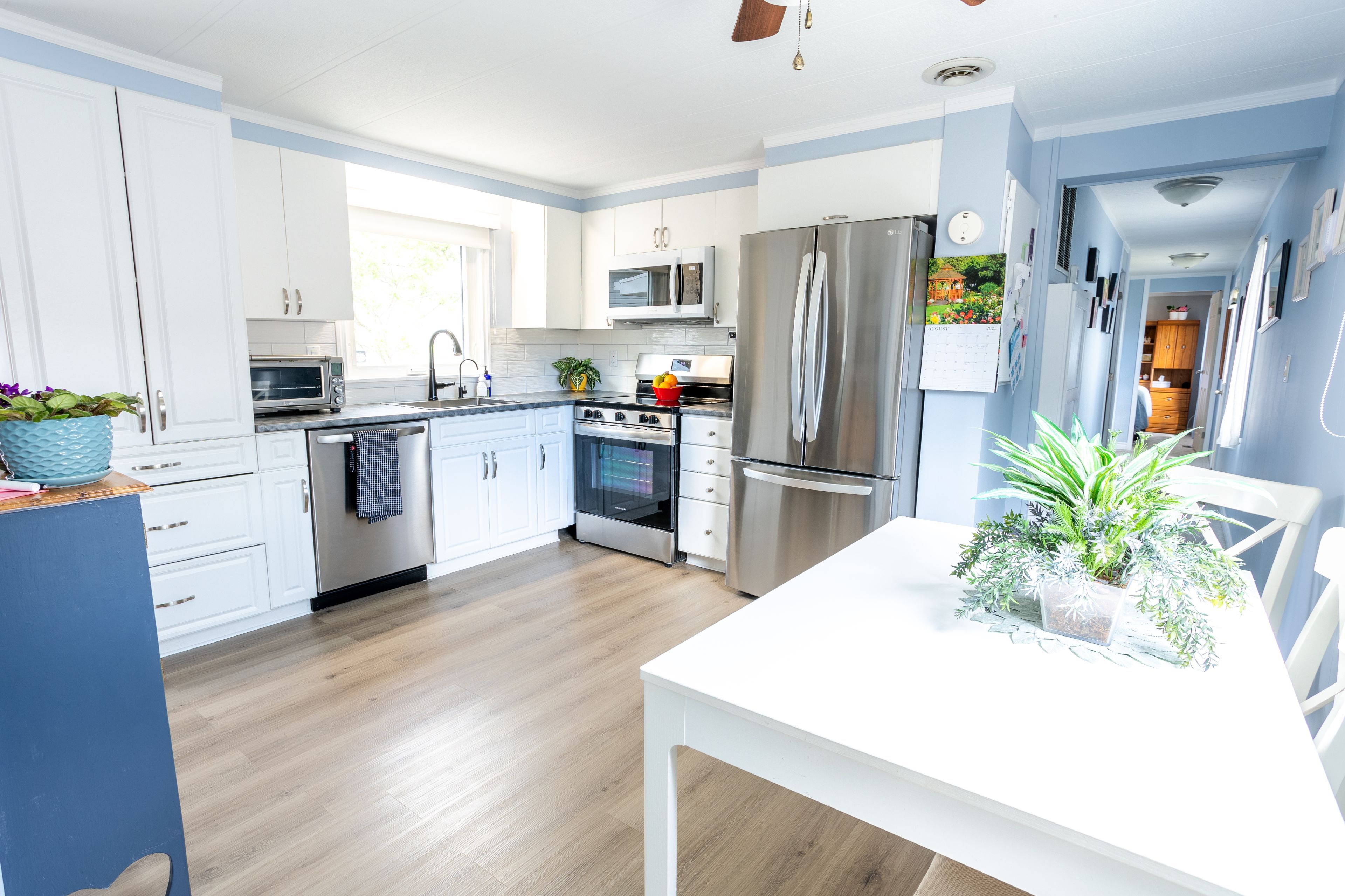 Welcome to this beautifully updated 2-bedroom mobile home in the desirable worthington park community. Completely refreshed and move-in ready, this home features new flooring, fresh paint, and a brand-new kitchen equipped with a stove, fridge, dishwasher, microwave, washer, dryer, and even a mini freezer. The updated bathroom offers a stunning tiled stand-up shower for a modern, spa-like feel. The spacious primary bedroom includes an additional sitting area with patio doors leading to a large private deck - the perfect place to relax outdoors. The exterior is just as impressive, featuring a paved driveway, concrete patio and walkway, and a large shed with a concrete floor for storage or workspace. An additional outbuilding provides extra room for garden tools and garbage/recycling. The private backyard, with fencing along the rear and attractive stone front step, adds great curb appeal and comfort. If you're looking for a low-maintenance, stylish, and move-in-ready home in a friendly community, 21 powley garden drive is the one to see.
