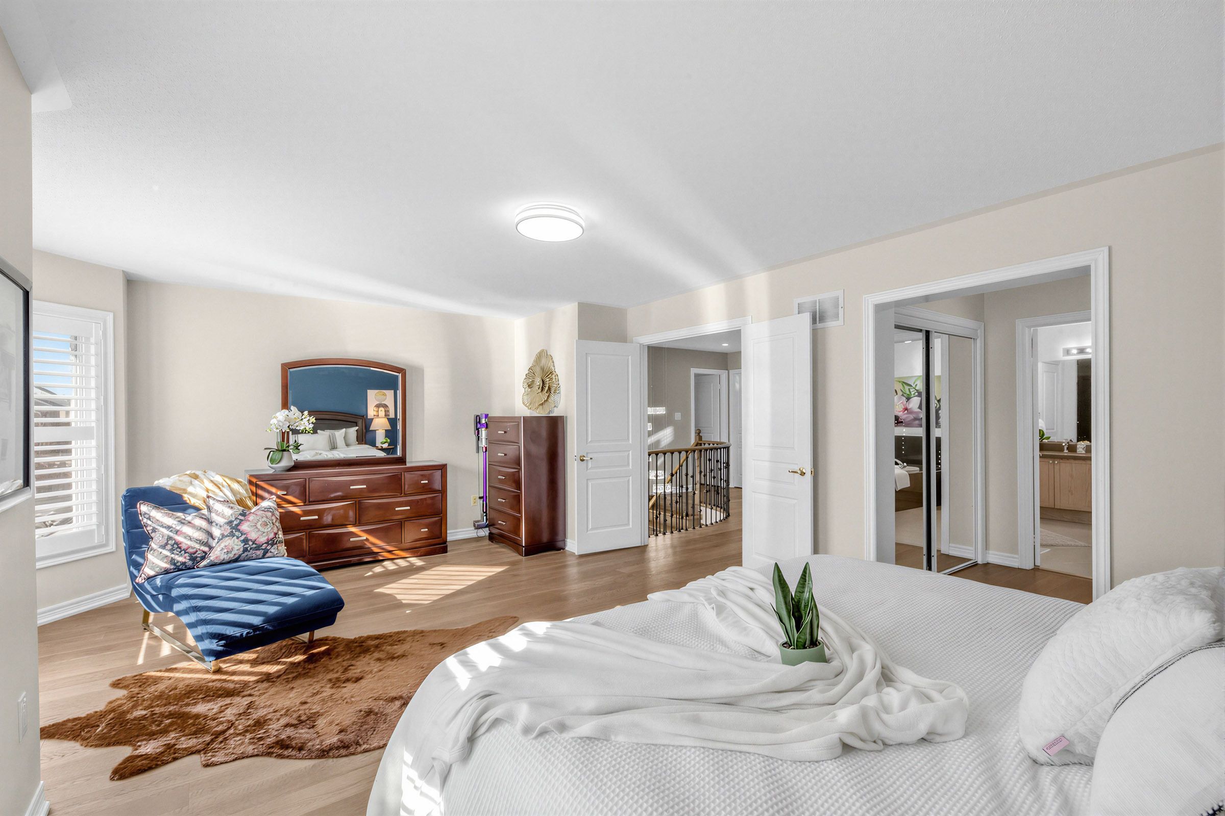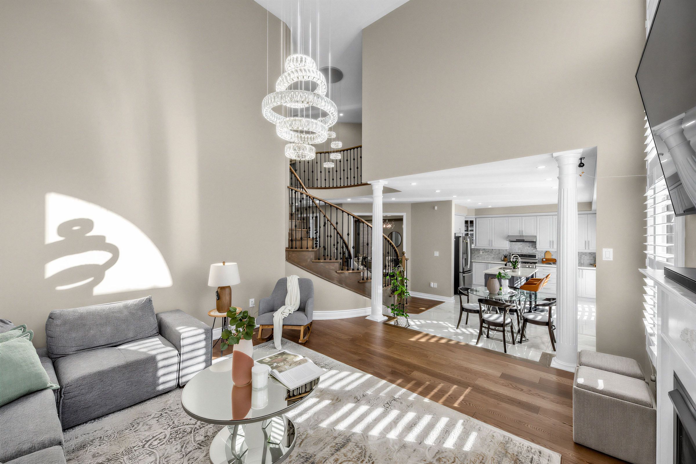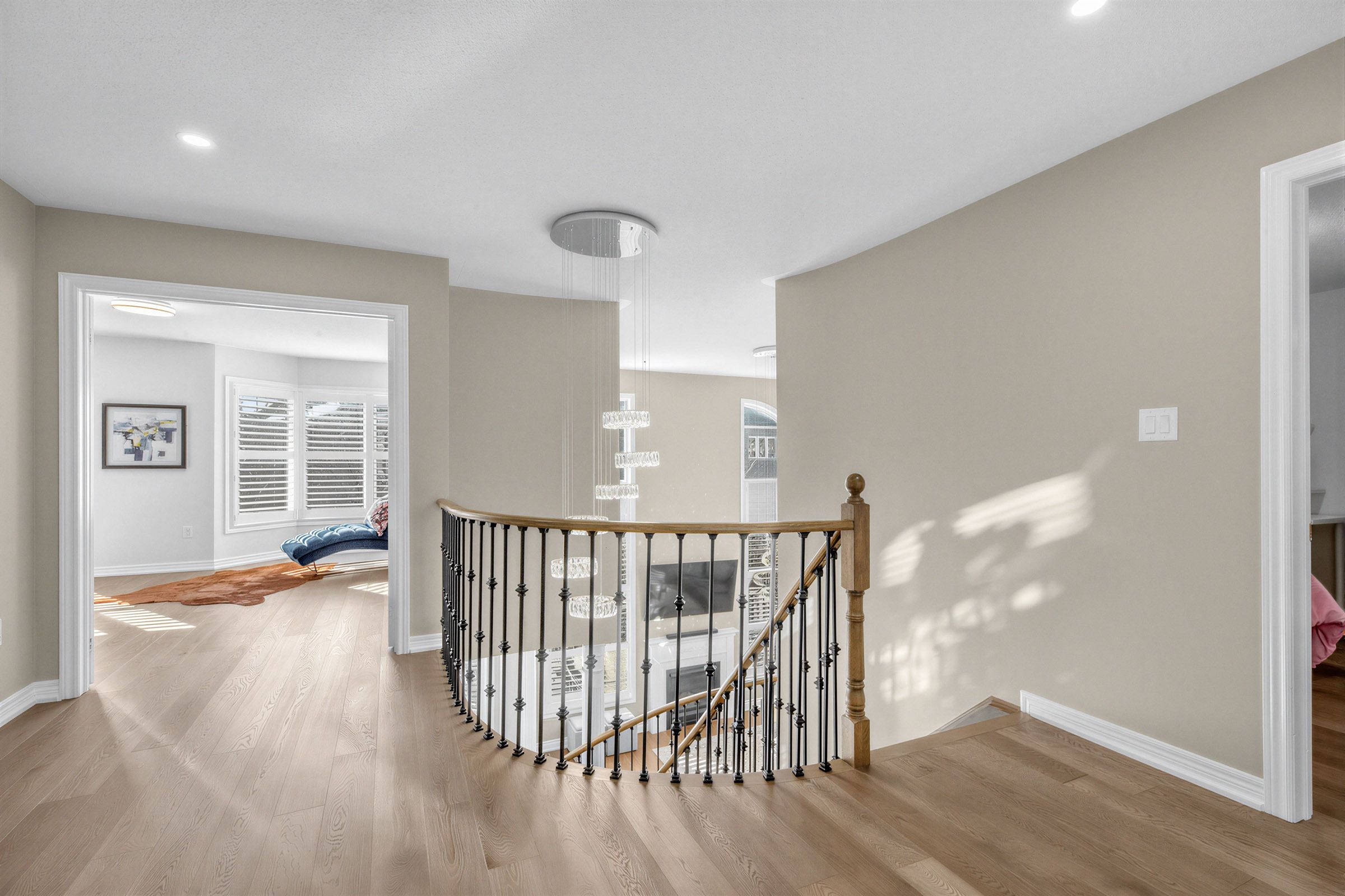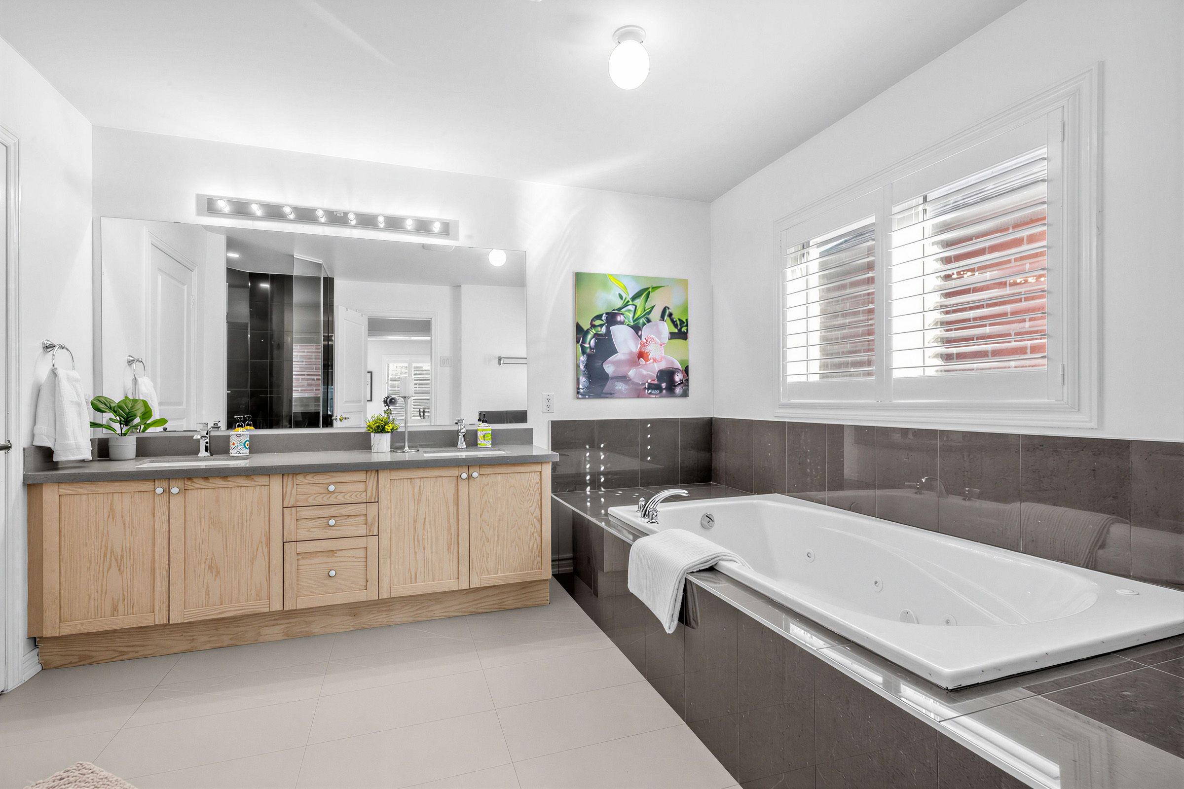 4 large bedrooms, finished basement + hardwood flooring throughout + stained staircase with ironand metal pickets + pot lights throughout + updated light fixtures + interlocking all around(2022) + reverse osmosis system (2019) + water softener + tesla charger (46 amps)welcome to this stunning 4+2 bedroom home with a finished basement, designed with space,elegance, and functionality in mind. Featuring a double door entry and 9-foot ceilings, this home offers a sunken library that can easily be converted into a fifth bedroom - perfect for growing families or a home office. The grand 18-foot soaring ceiling in the family room creates an impressive open-to-above space filled with natural light. The renovated kitchen boasts quartz countertops, large tiles, ample cabinetry, and a spacious breakfast area ideal for everyday living and entertaining. Upstairs offers four generously sized bedrooms with three full bathrooms, including a luxurious primary retreat with double sinks, a large glass standing shower, and walk-in closets with built-in shelving. Near top york region schools . Minutes to hwy 407, walking distance to walmart, longos , majorbanks , restaurants, rexall pharmacy