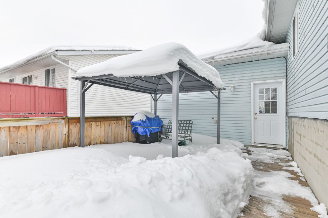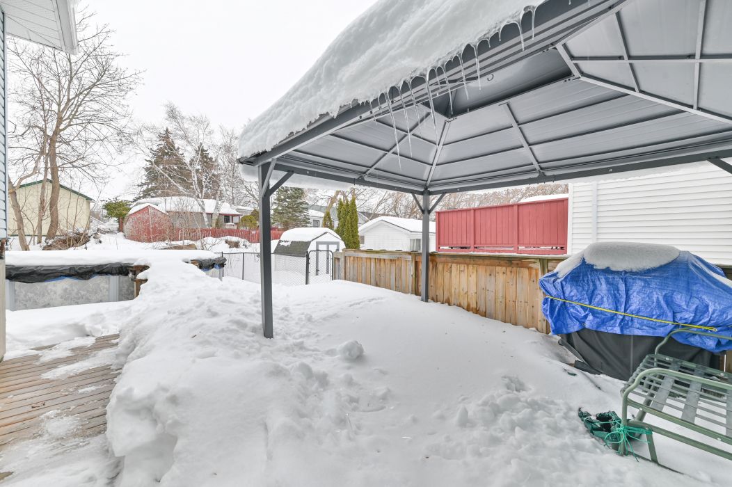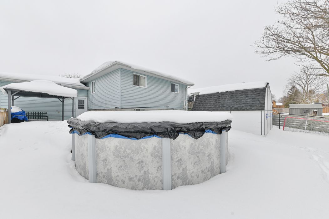 • Fully fenced backyard featuring an above ground pool and shed for storage.