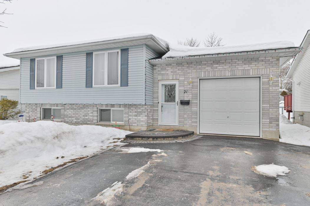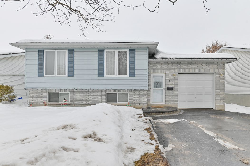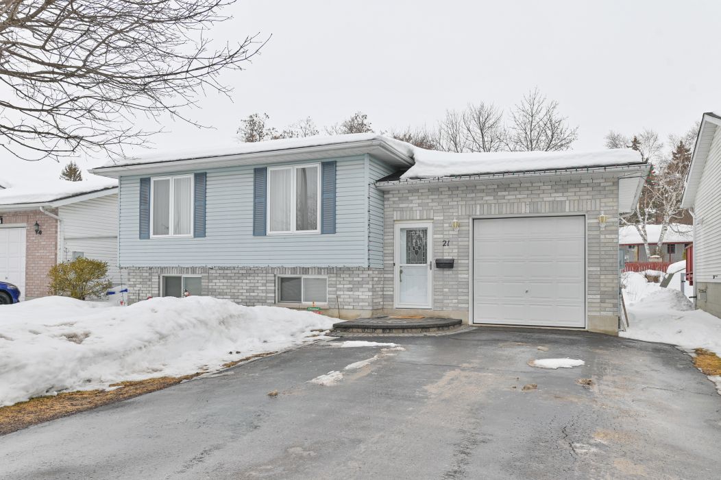 Welcome to 21 robert drive in quinte west. This well maintained raised bungalow offers a functional layout with 3 bedrooms on the main level and 1 additional bedroom downstairs, making it perfect for families of all sizes. Lets start in the foyer-a welcoming space with a generous coat closet provides convenient access to the single-car garage, the backyard and all levels of the house. The main floor features a bright, open concept kitchen and dining area complete with a breakfast bar, laminate flooring, double oven and thoughtful updates including new countertop, sink, backsplash, and lighting. Hardwood floors run throughout the living room, hallways, and bedrooms, adding warmth and continuity to the space. The updated 4-piece main bath showcases new tile, vanity counter and backsplash for a fresh, modern feel. Downstairs, you'll find a spacious rec room, dedicated office space, a fourth bedroom, and a 3-piece bathroom - ideal for guests, teens or extended family. The backyard is fully fenced featuring an above ground pool and a 12 x 12 shed - perfect for summer entertaining and extra storage space. Roof was redone in 2022. Don't miss out on a fantastic opportunity to make this home yours in a lovely neighbourhood. This home is move in ready and waiting for its next owners.
