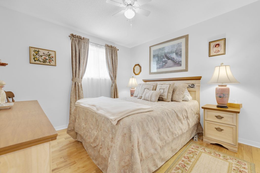 • Hardwood floors throughout living areas and bedrooms for added warmth.