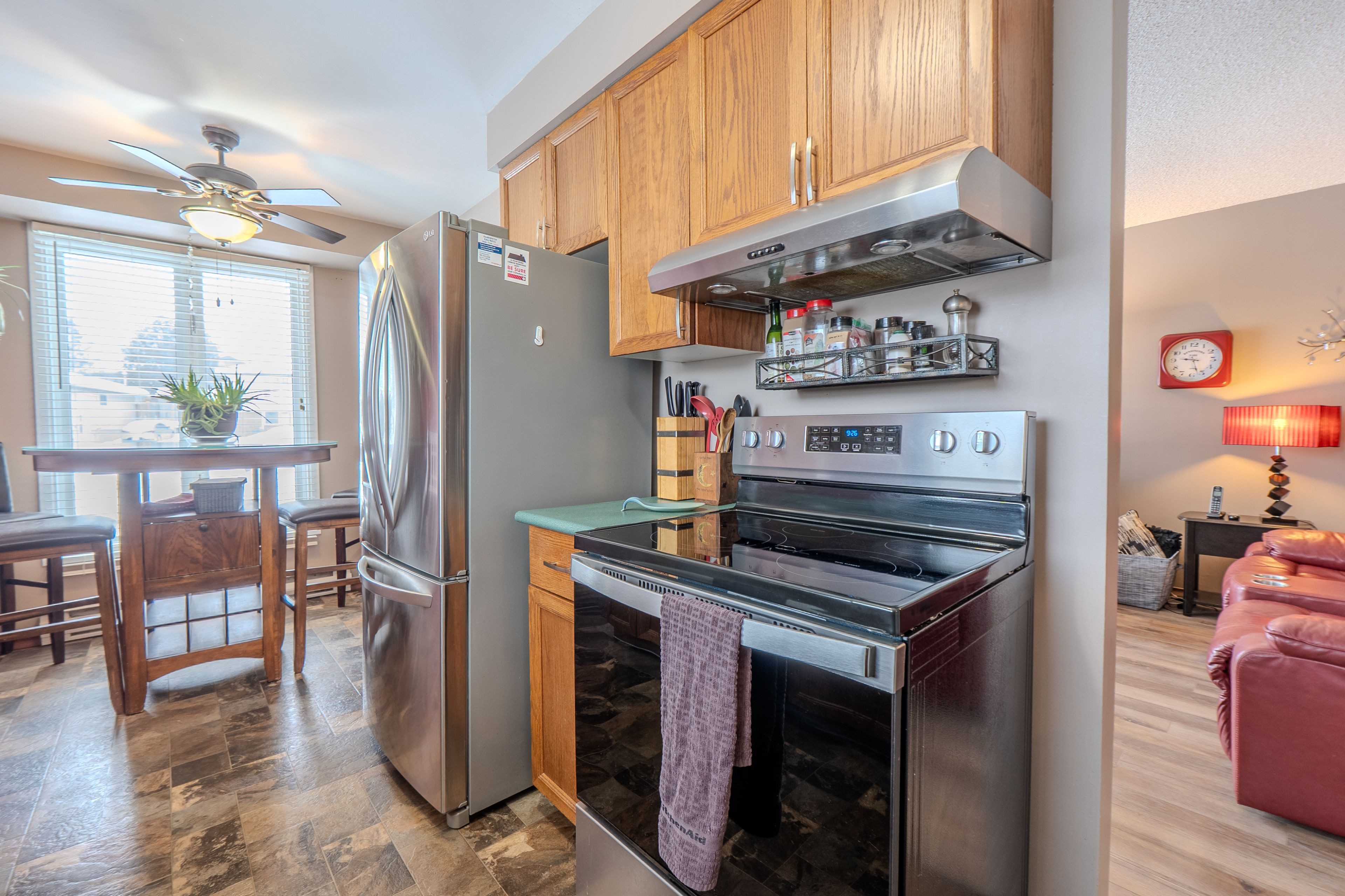 • Spacious main floor with dining, living rooms, and modern kitchen.