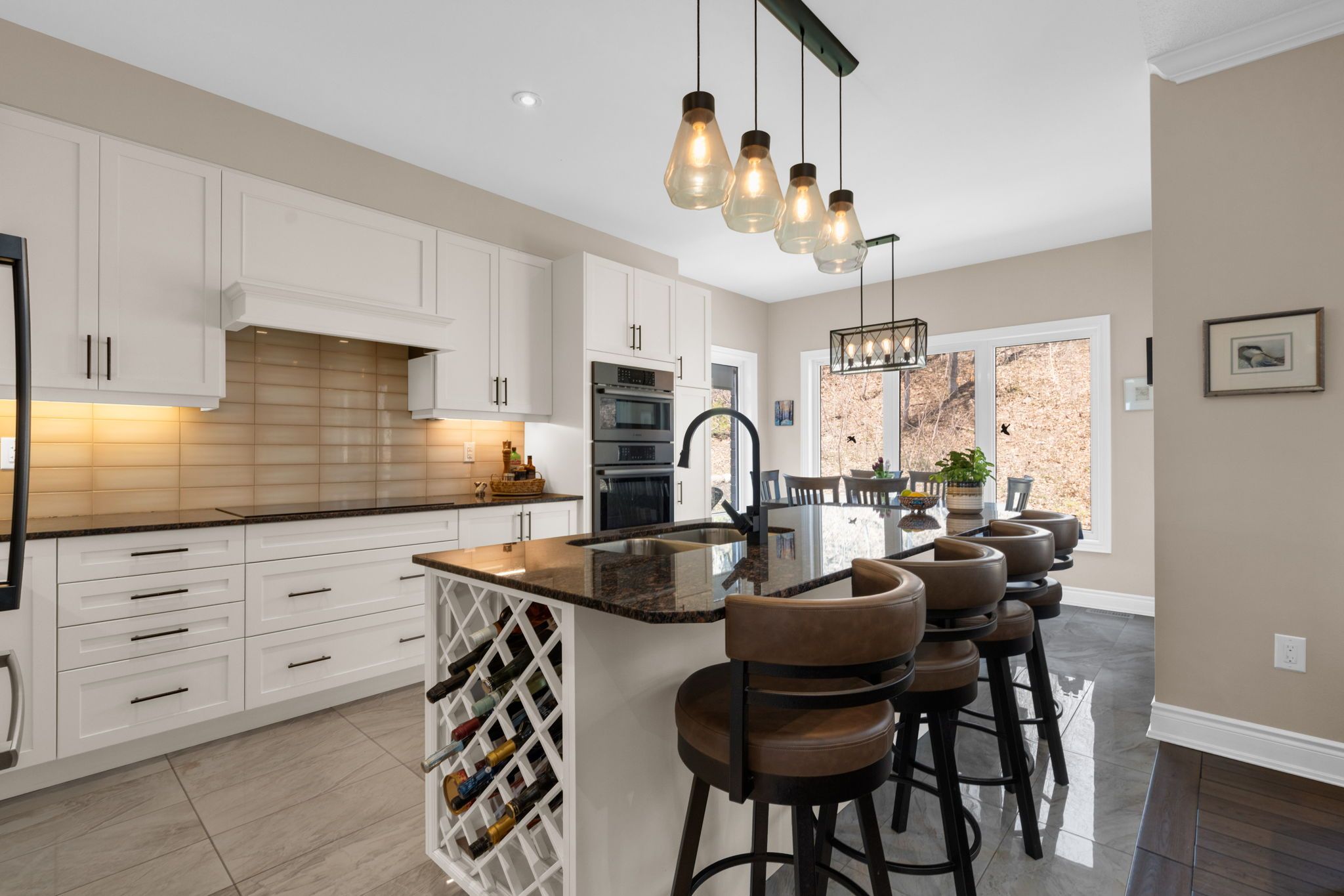 Pride of ownership in this immaculate newer raised bungalow with walk out. Oversized lot on 3/4 acres with no back neighbour and extended side yard with firepit area. Two way gas fireplace in the front living/dining room and back family room. Family room open concept with gourmet kitchen. Kitchen boasts granite counter tops and higher end black bosch appliances, induction stove top, double wall ovens and double fisher paykel dishwasher drawers. Walkout in kitchen dining area to a private backyard deck with glass railings. Primary suite with walk in closet, spa ensuite with soaker tub and glass shower. Primary suite walks out to a separate deck with a hot tub. Bright lower walk out level is ready for your guests to entertain. Wet bar, games room, recreation room, 4th bedroom and a 3 piece bathroom. Unfinished space workshop and storage room. 3 car garage with inside entry to customized laundry room. This 1837 sq foot upper level with a total of 3480 sq ft. Two bright floors of living space. Located in the sugarbush subdivision and falls in the new horseshoe heights school district.