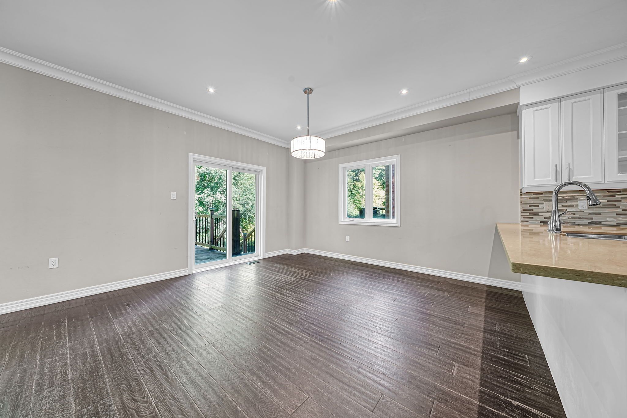 • Upgraded kitchen with modern finishes and elegant light fixtures.