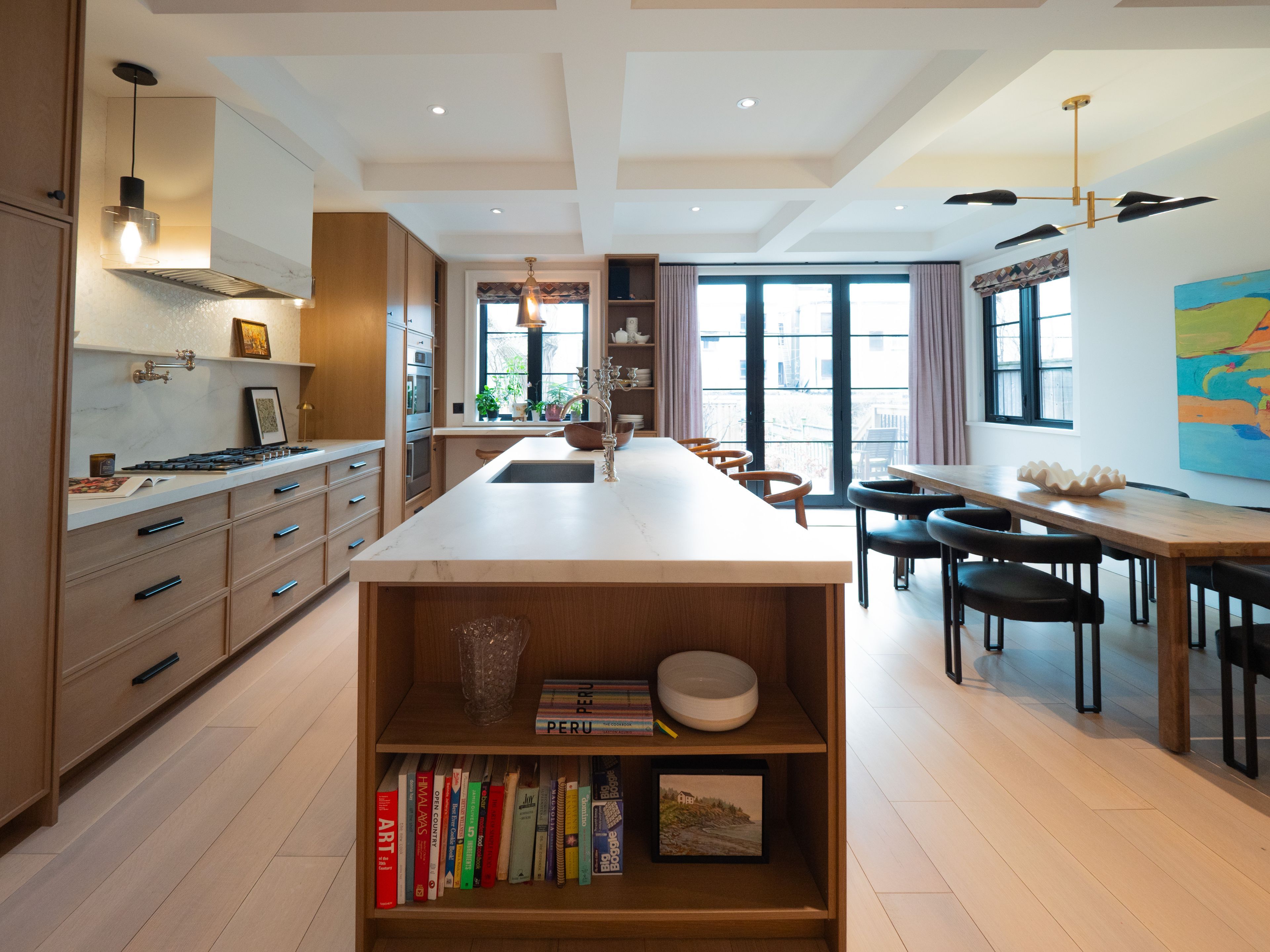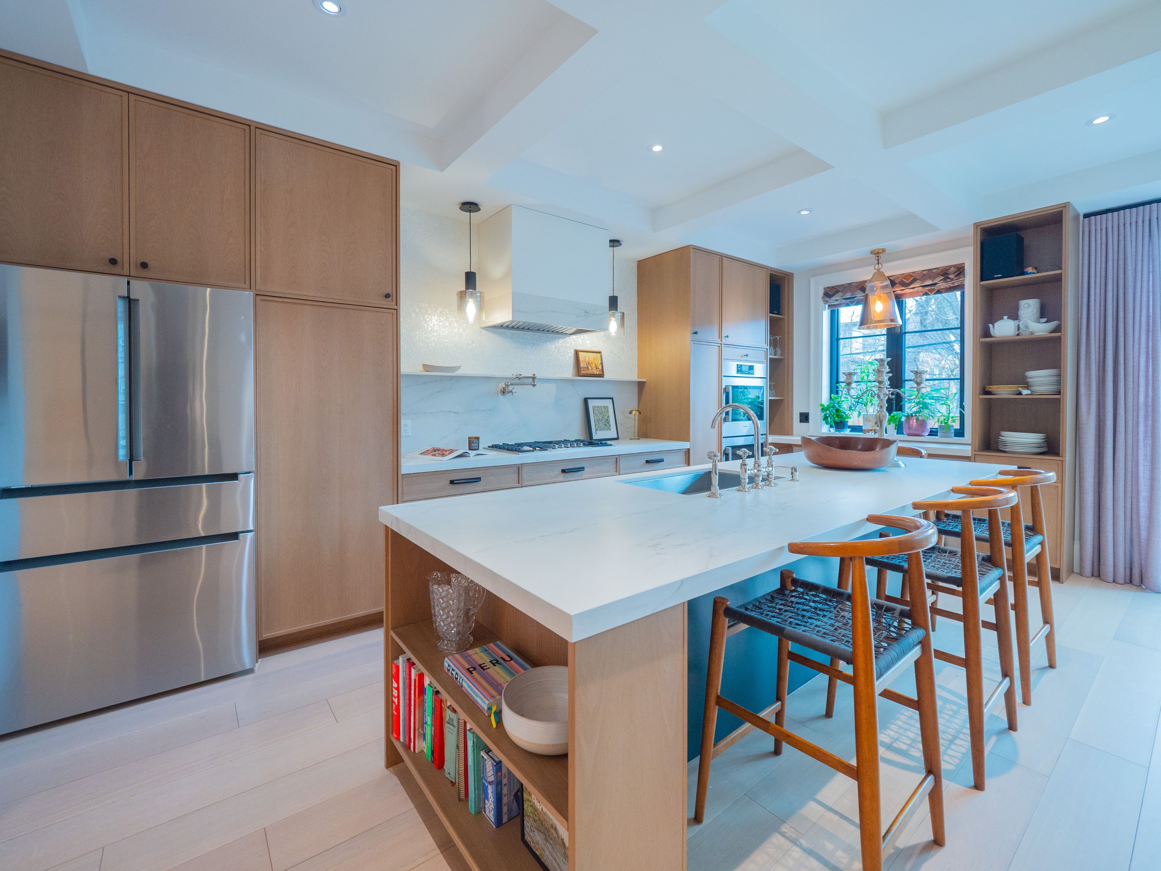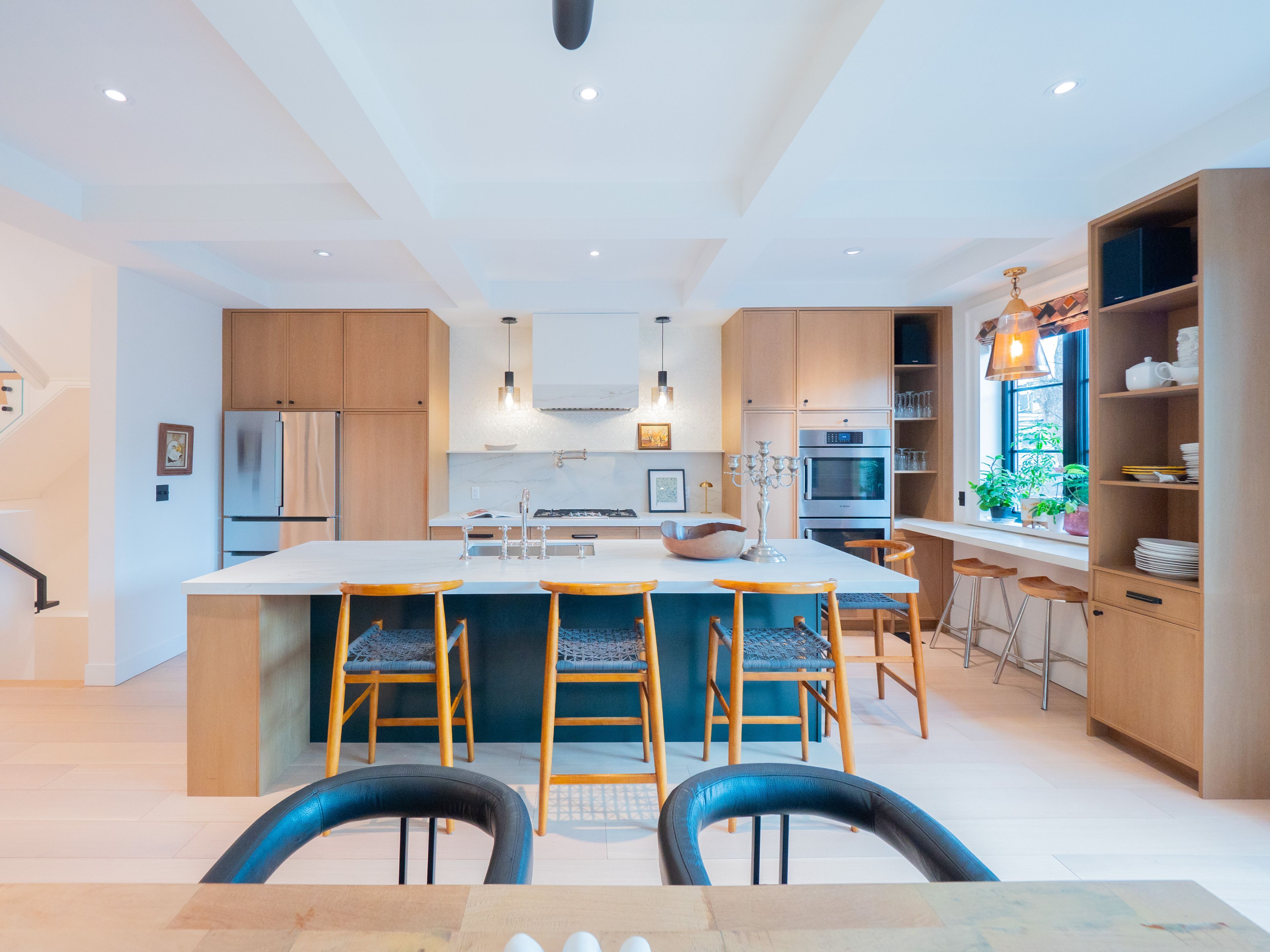 • Custom kitchen with oversized island, top-of-the-line appliances, and ample storage.